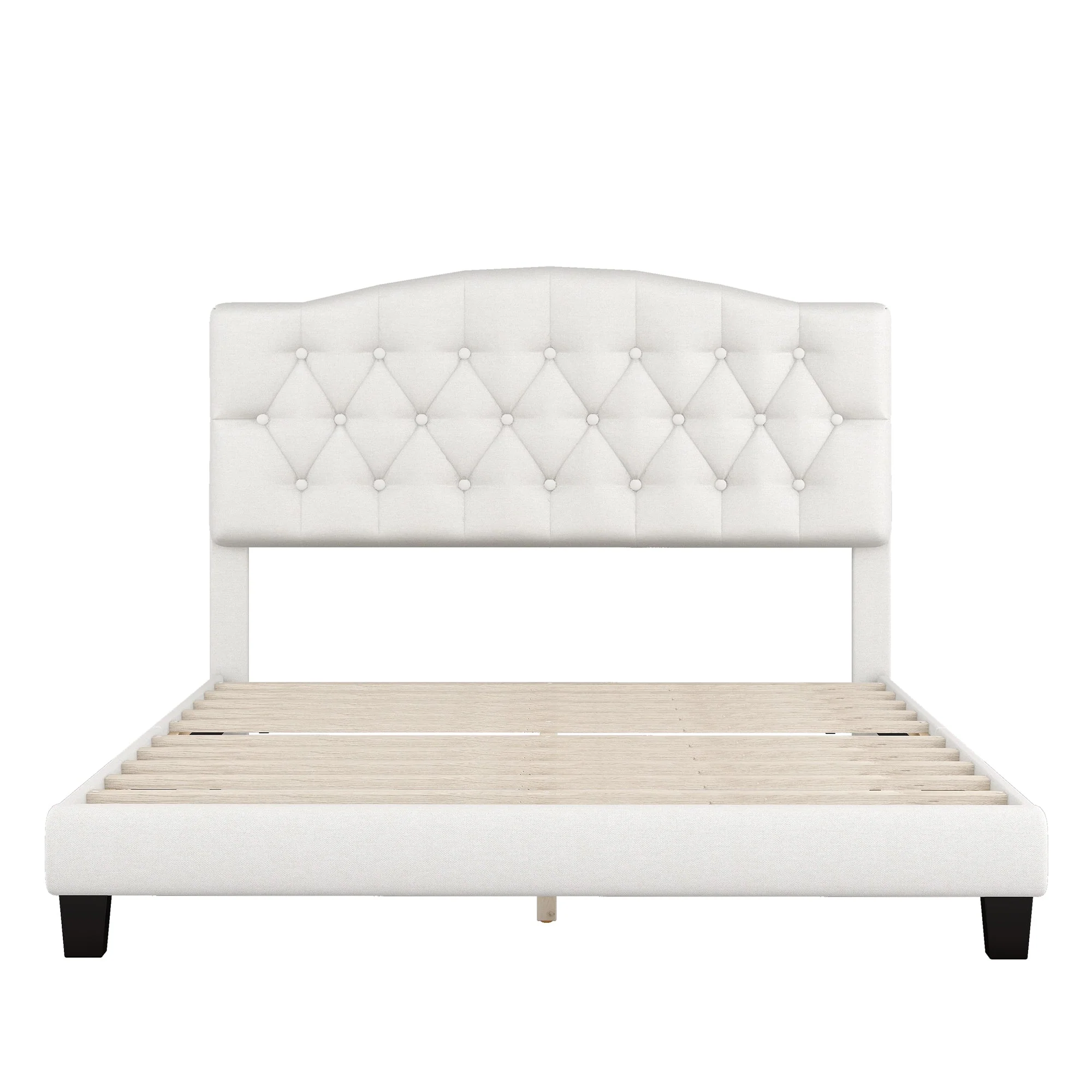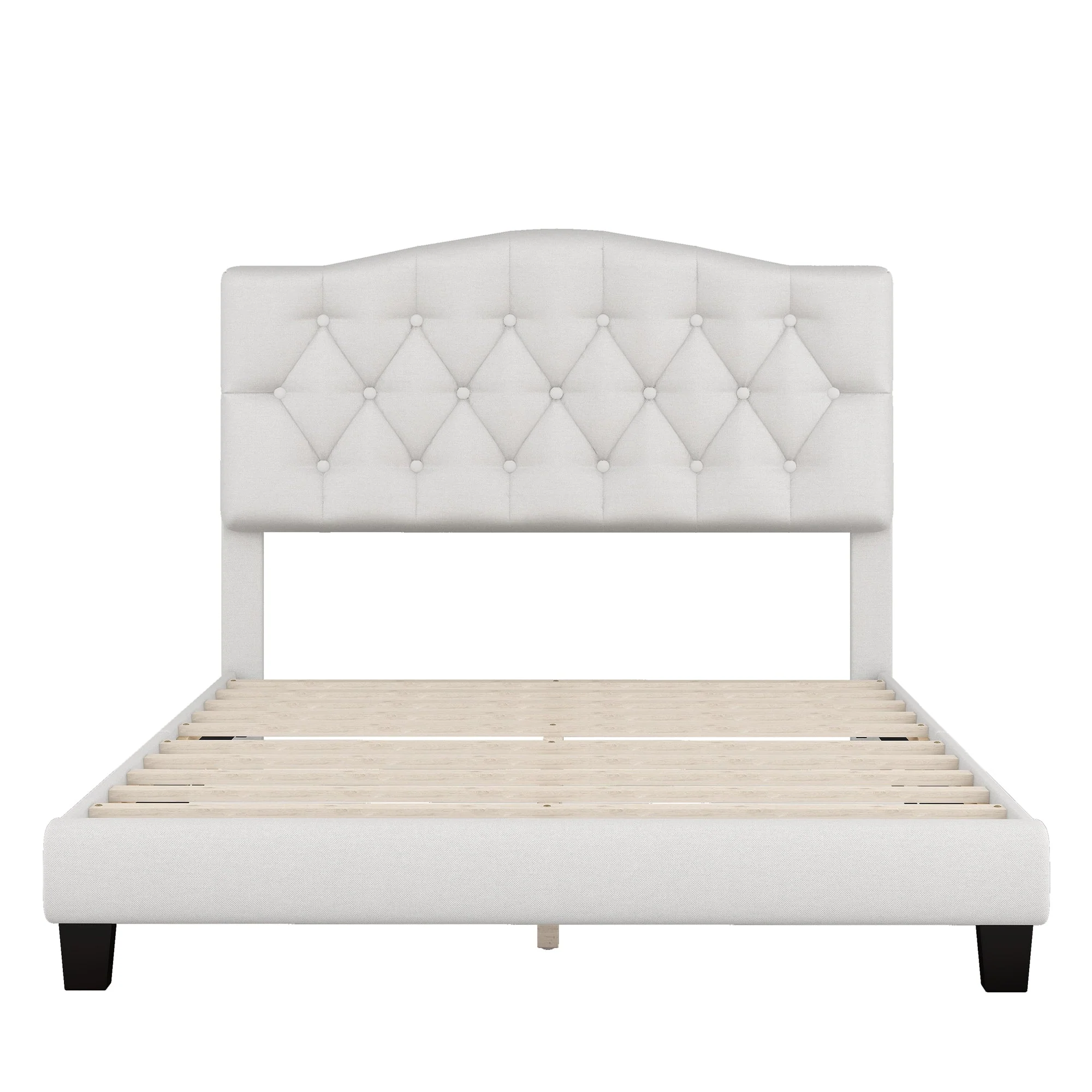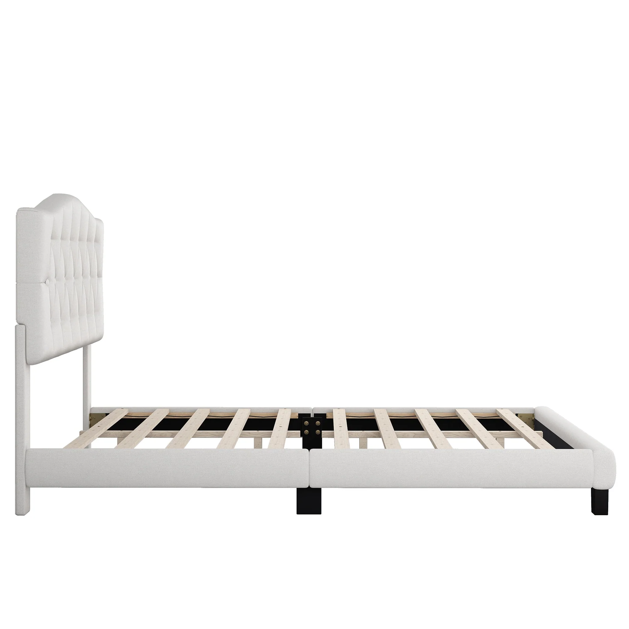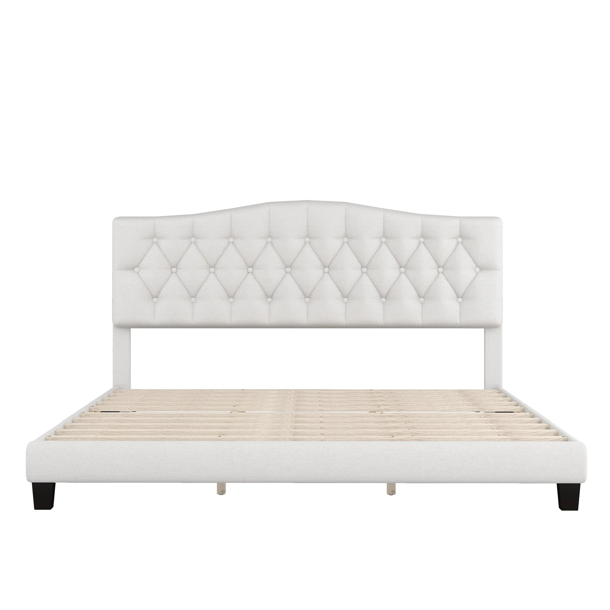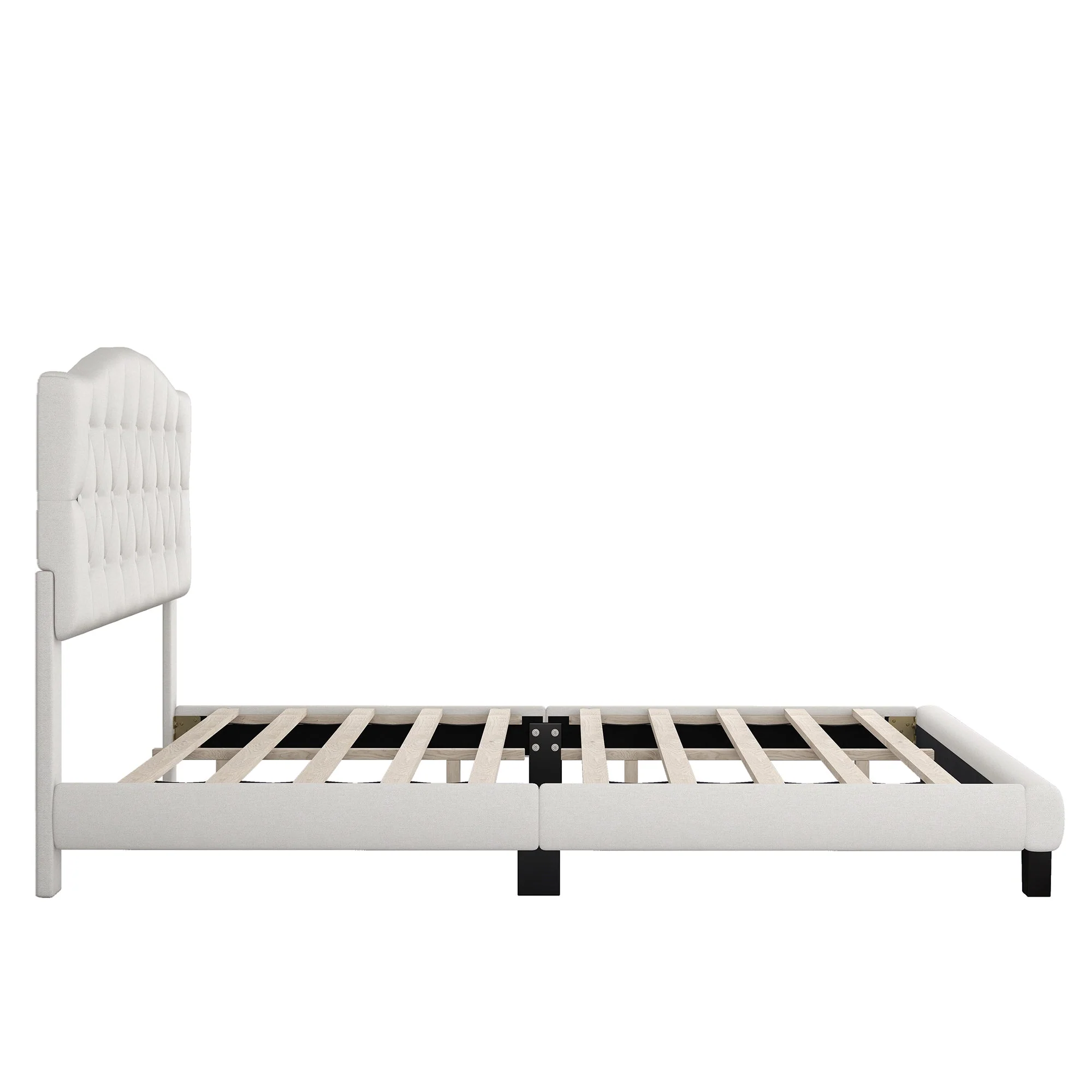 Josephine Upholstered Platform Bed with Saddle Curved Headboard and Diamond Tufted Details-Beige