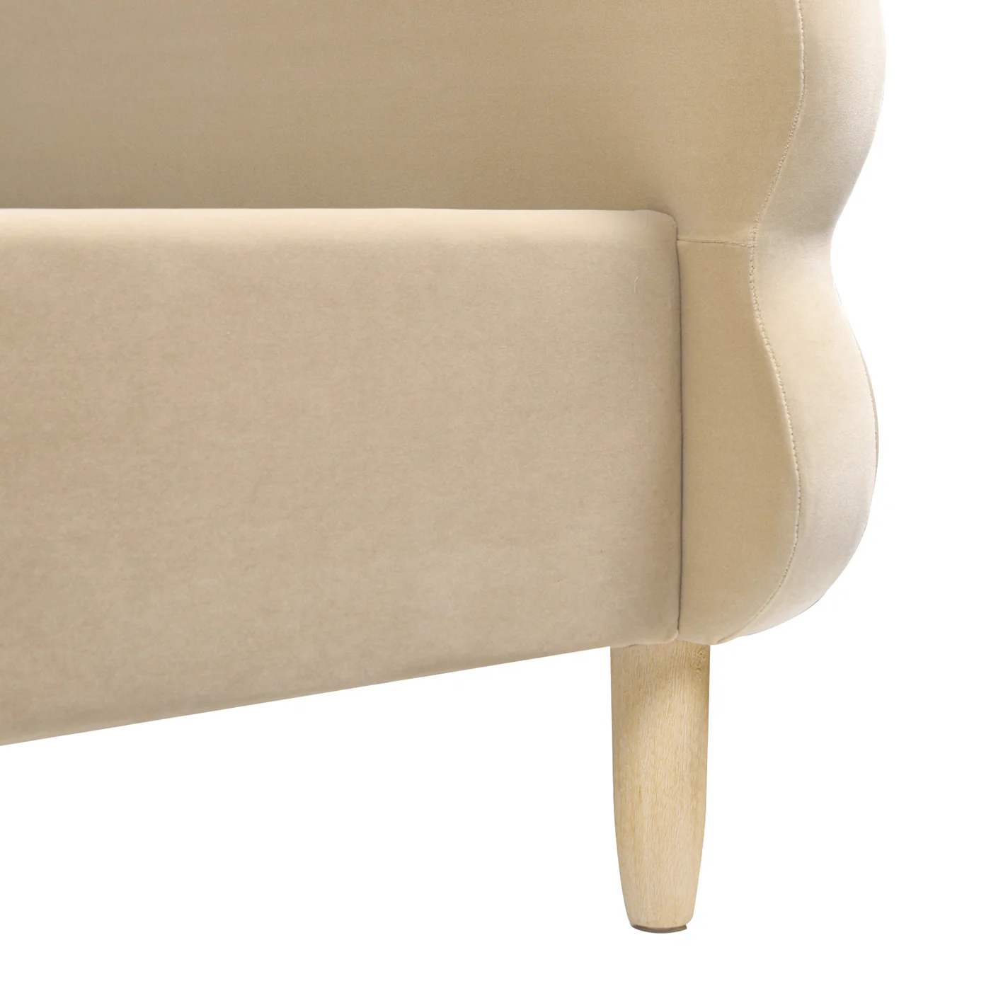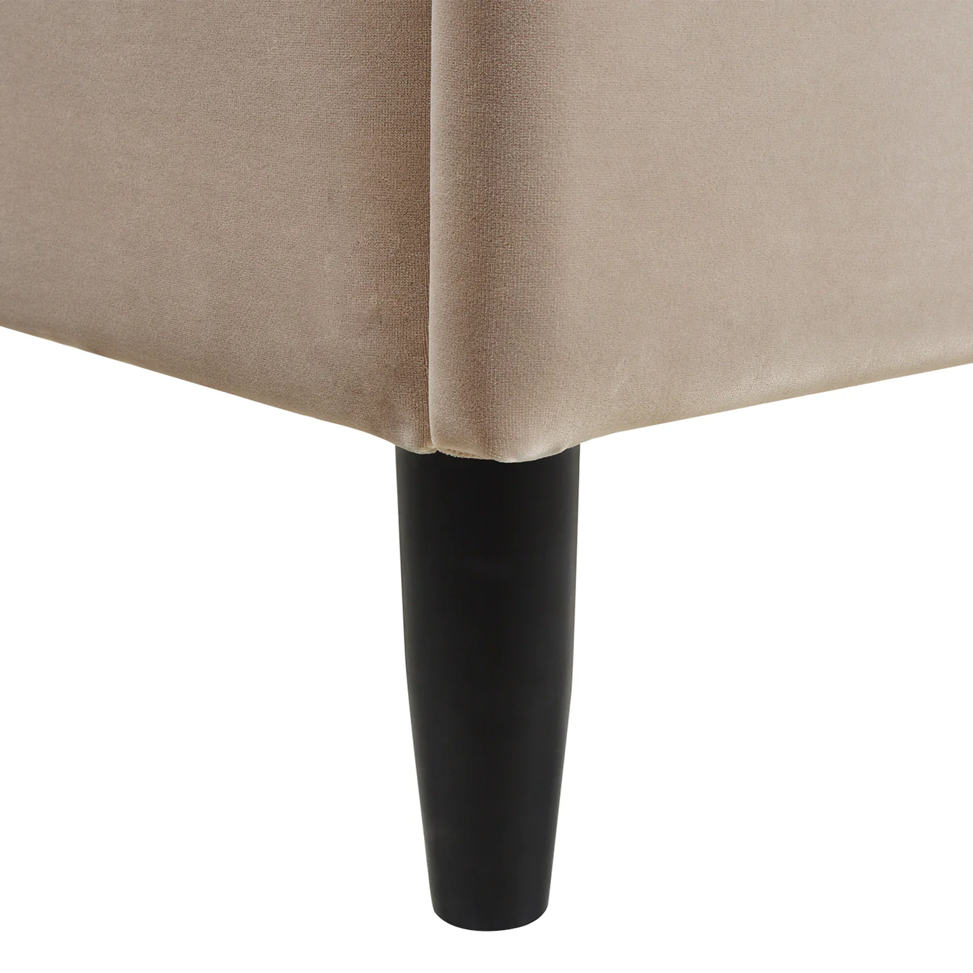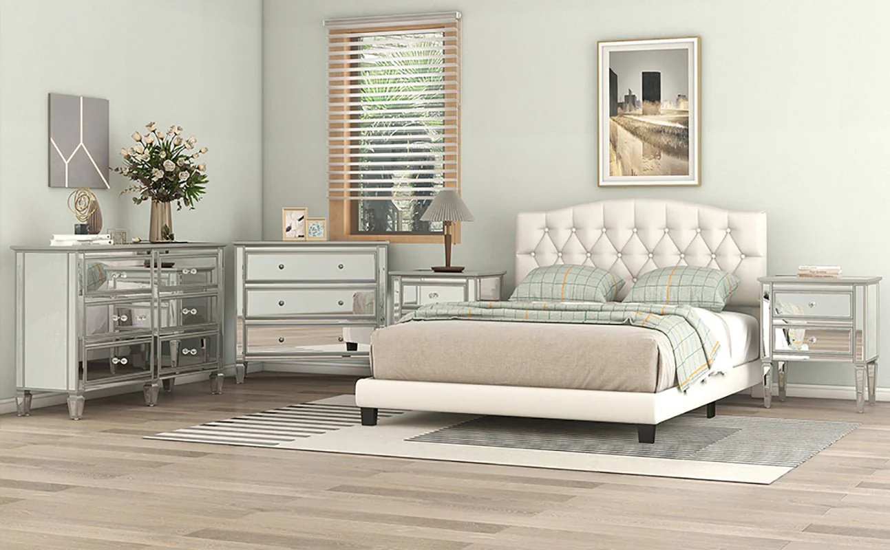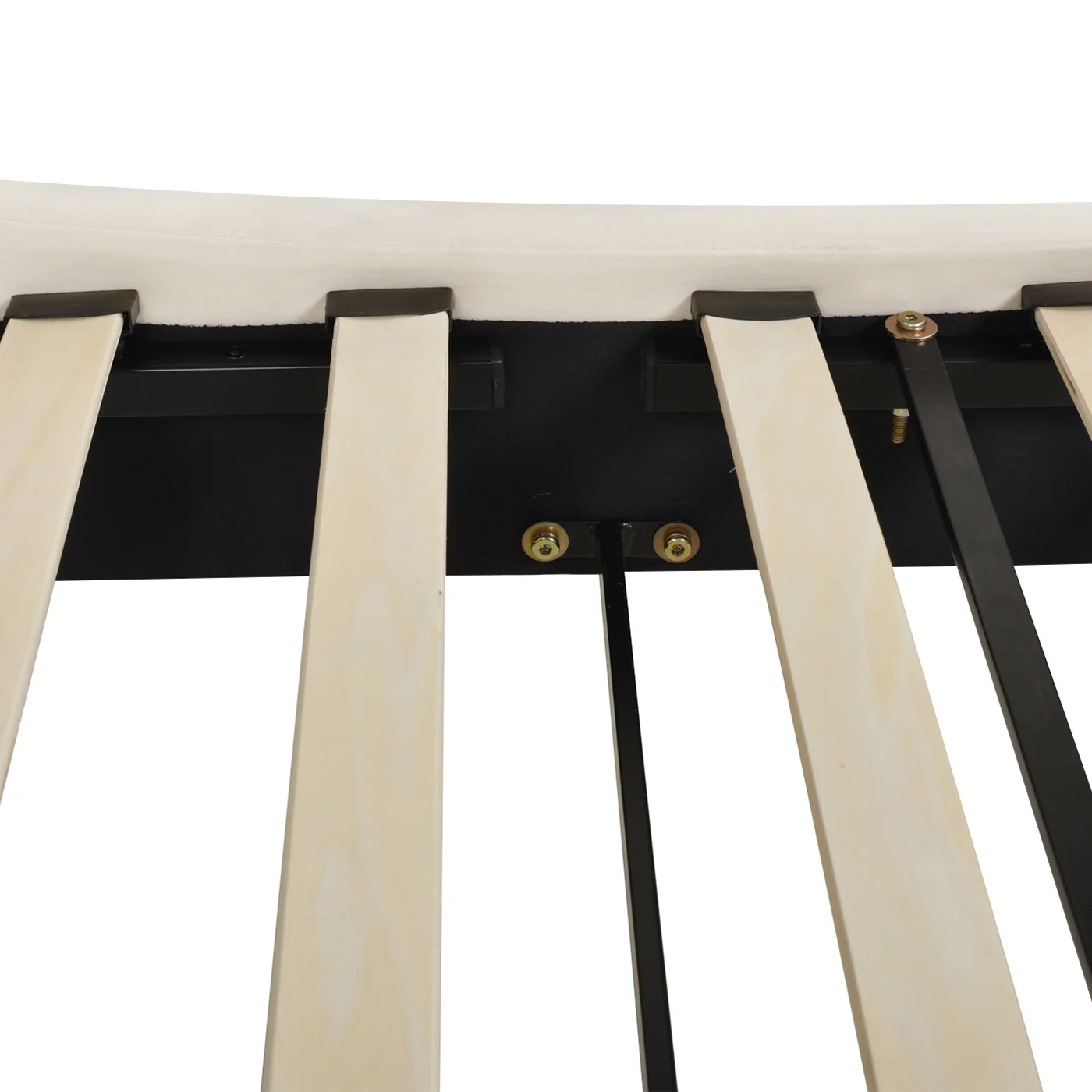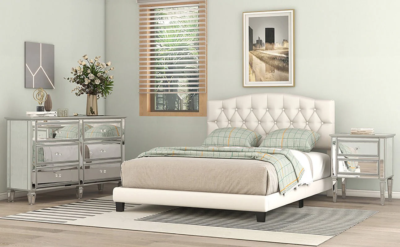 Josephine Upholstered Platform Bed with Saddle Curved Headboard and Diamond Tufted Details-Beige