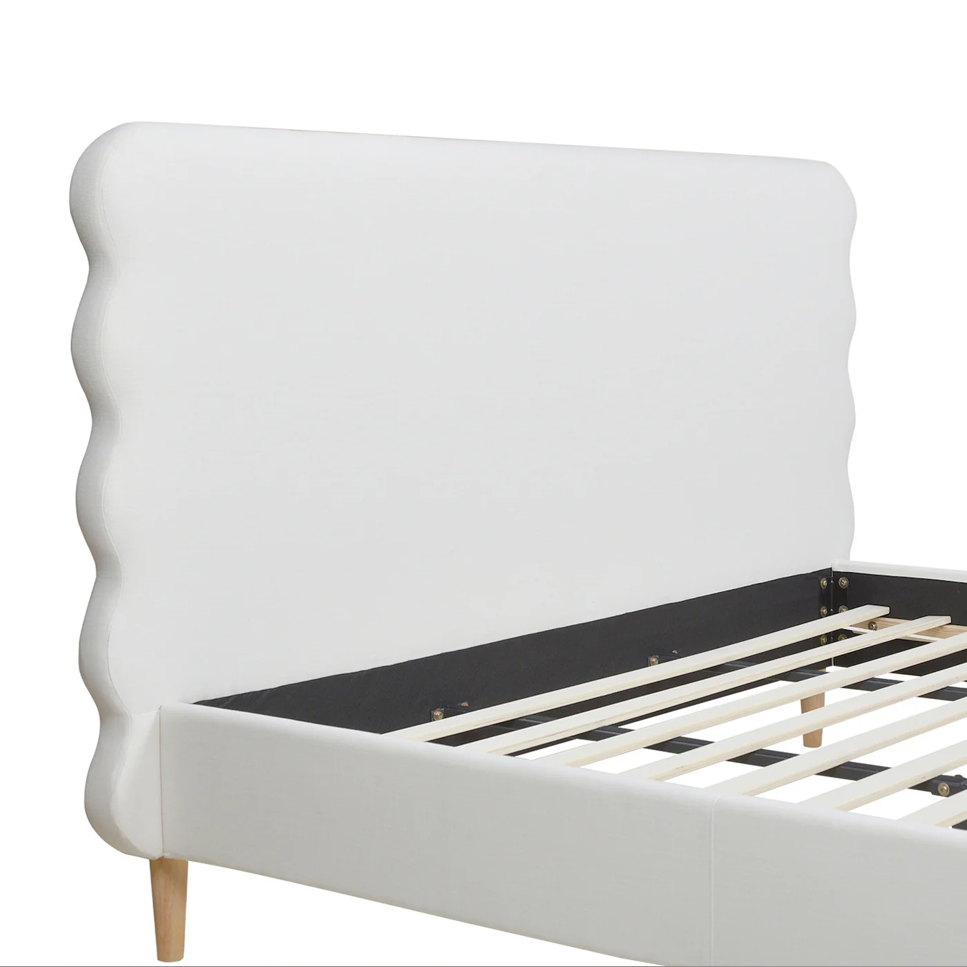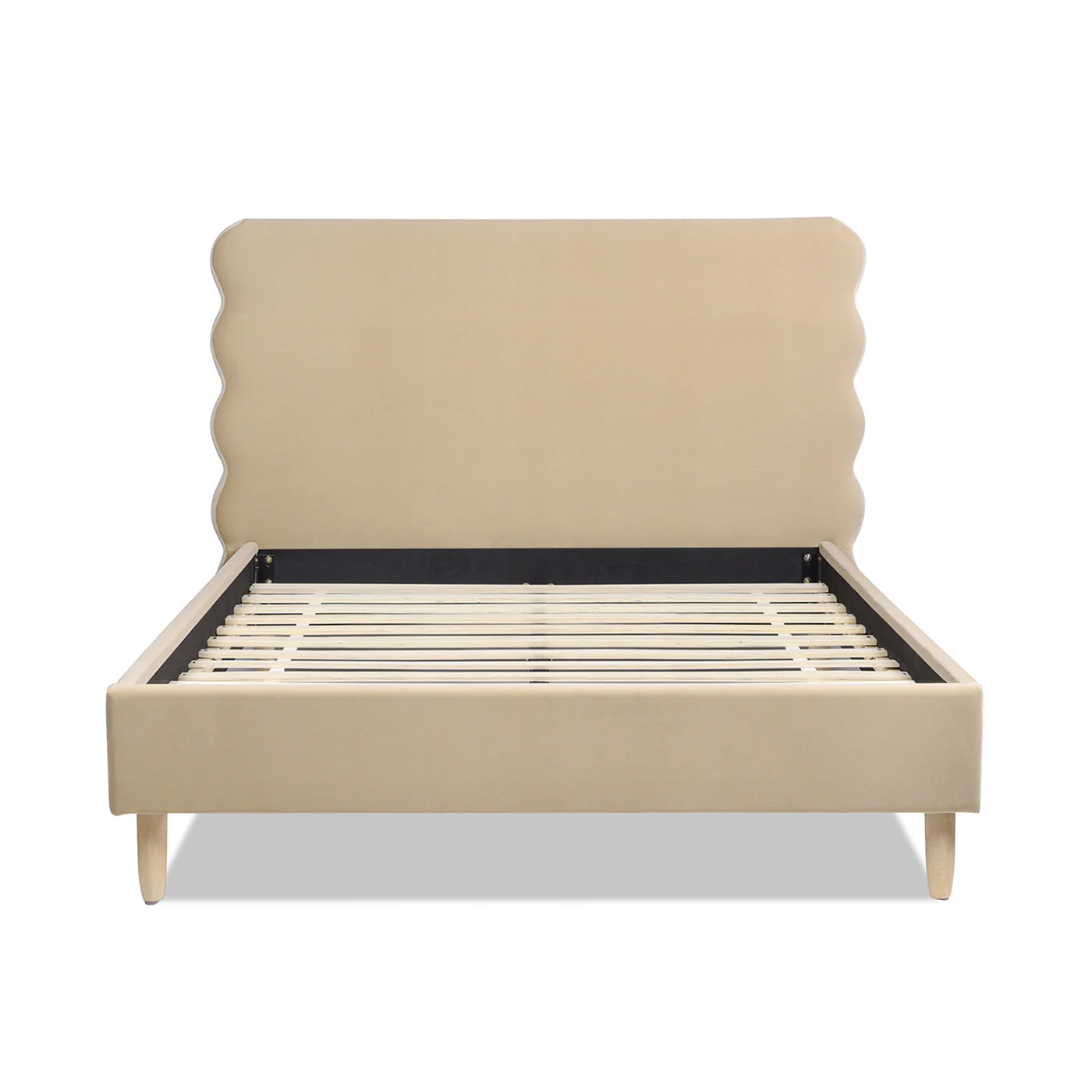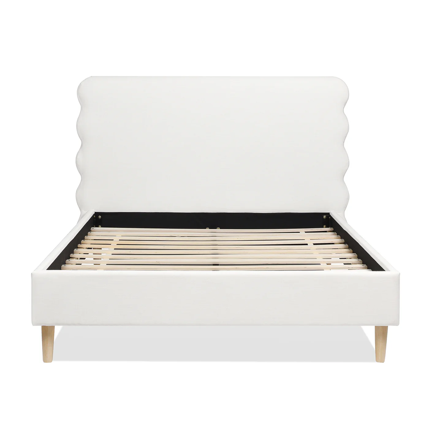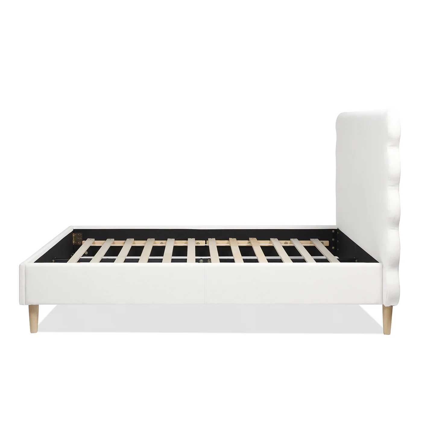 Essencee Upholstered Platform Bed with Wavy Headboard and Wood Legs