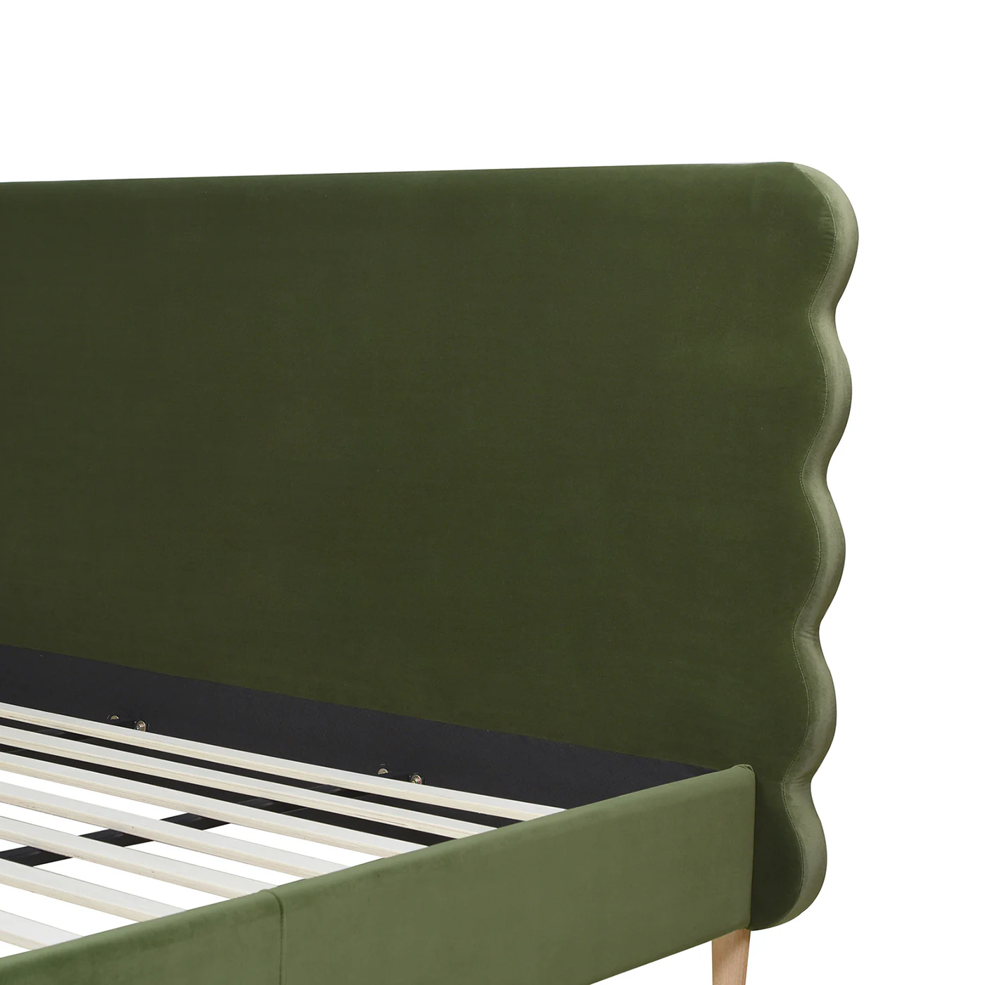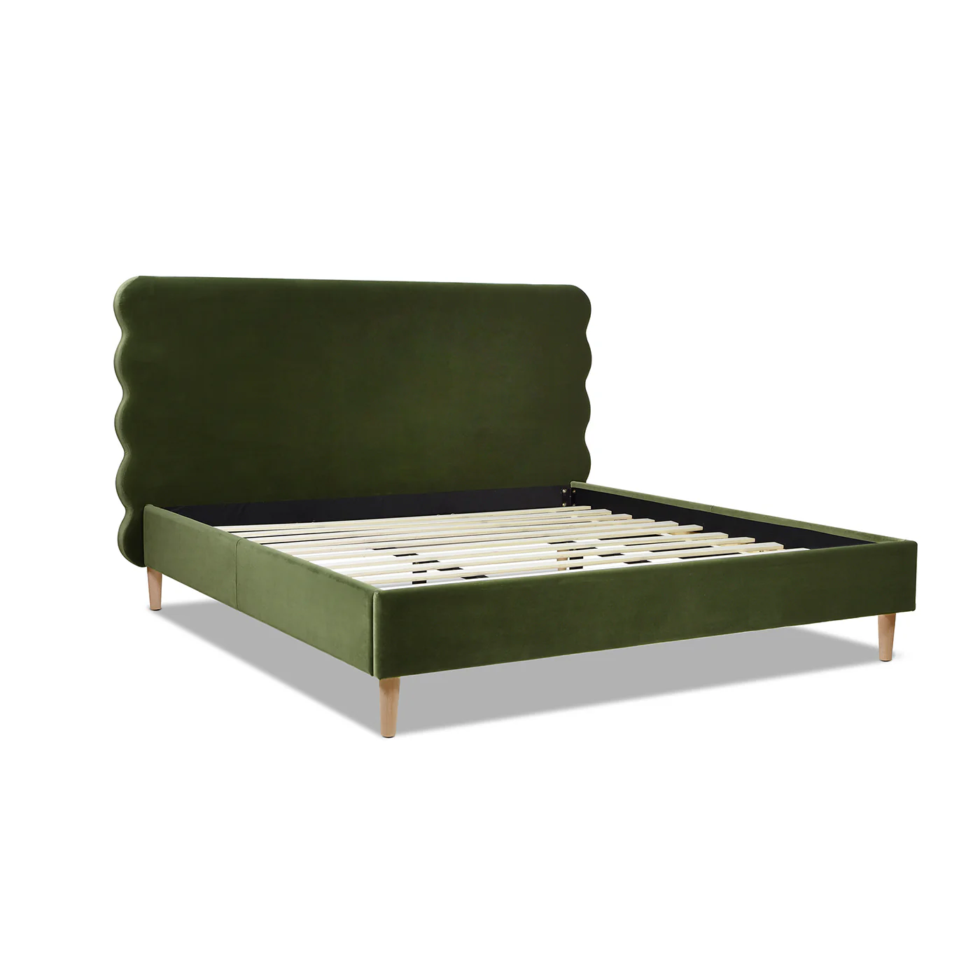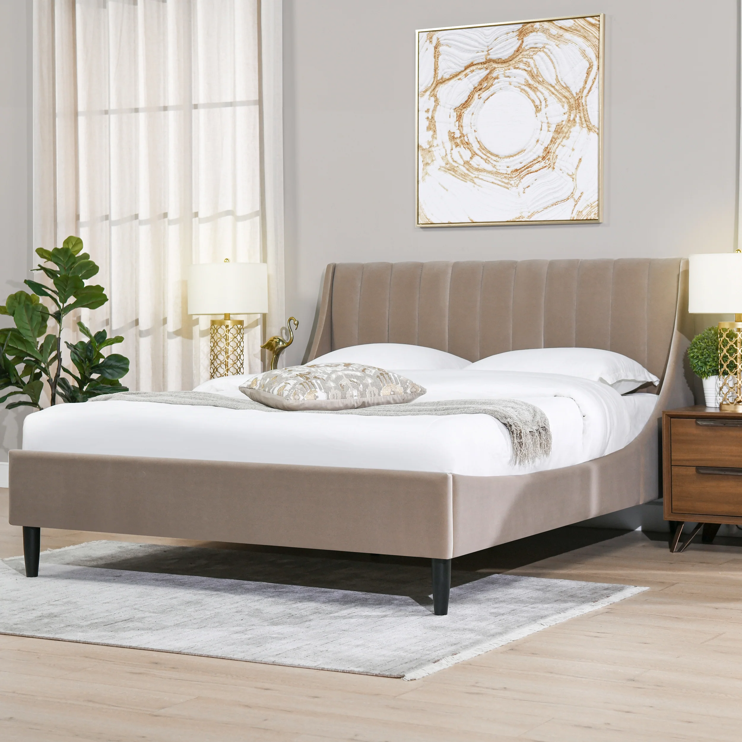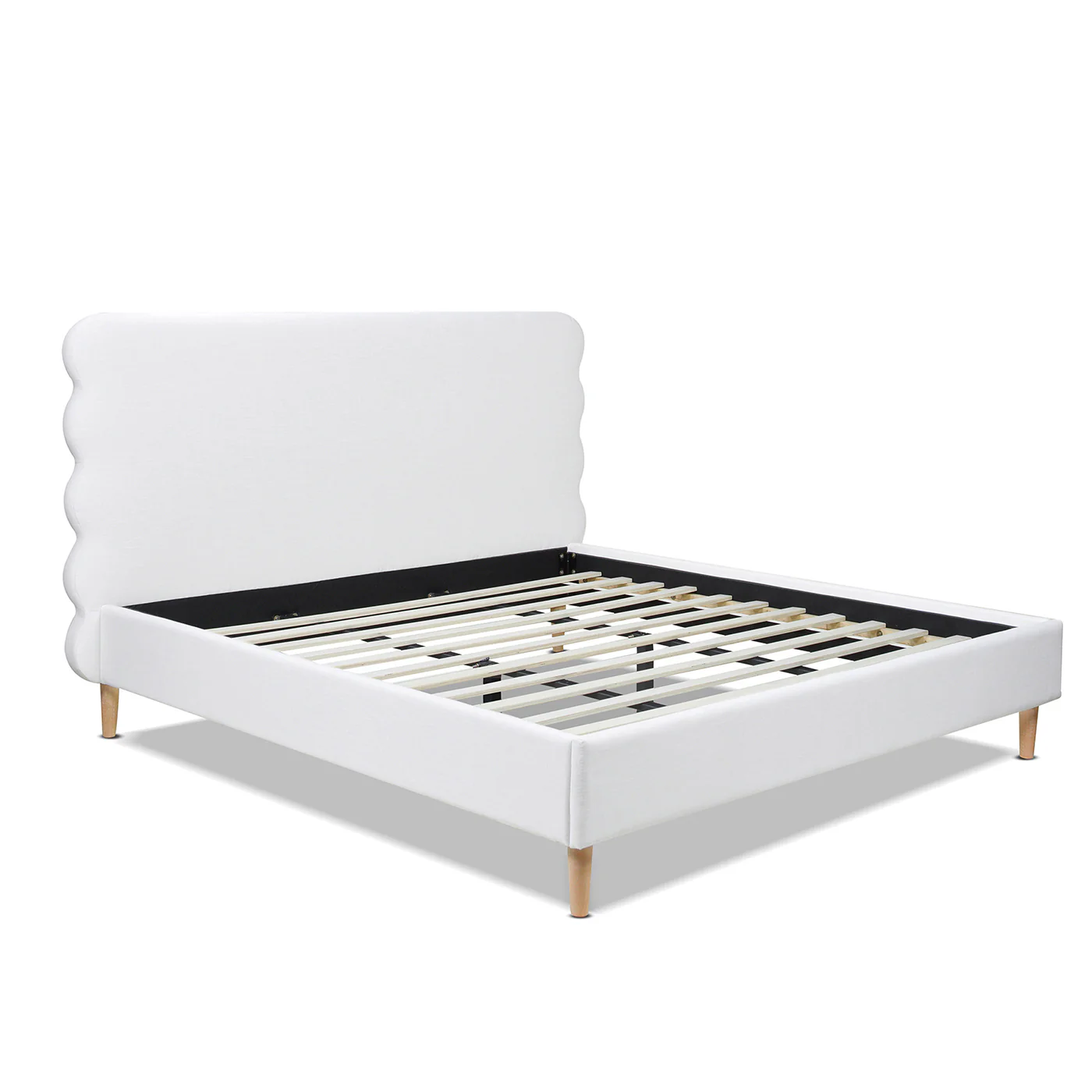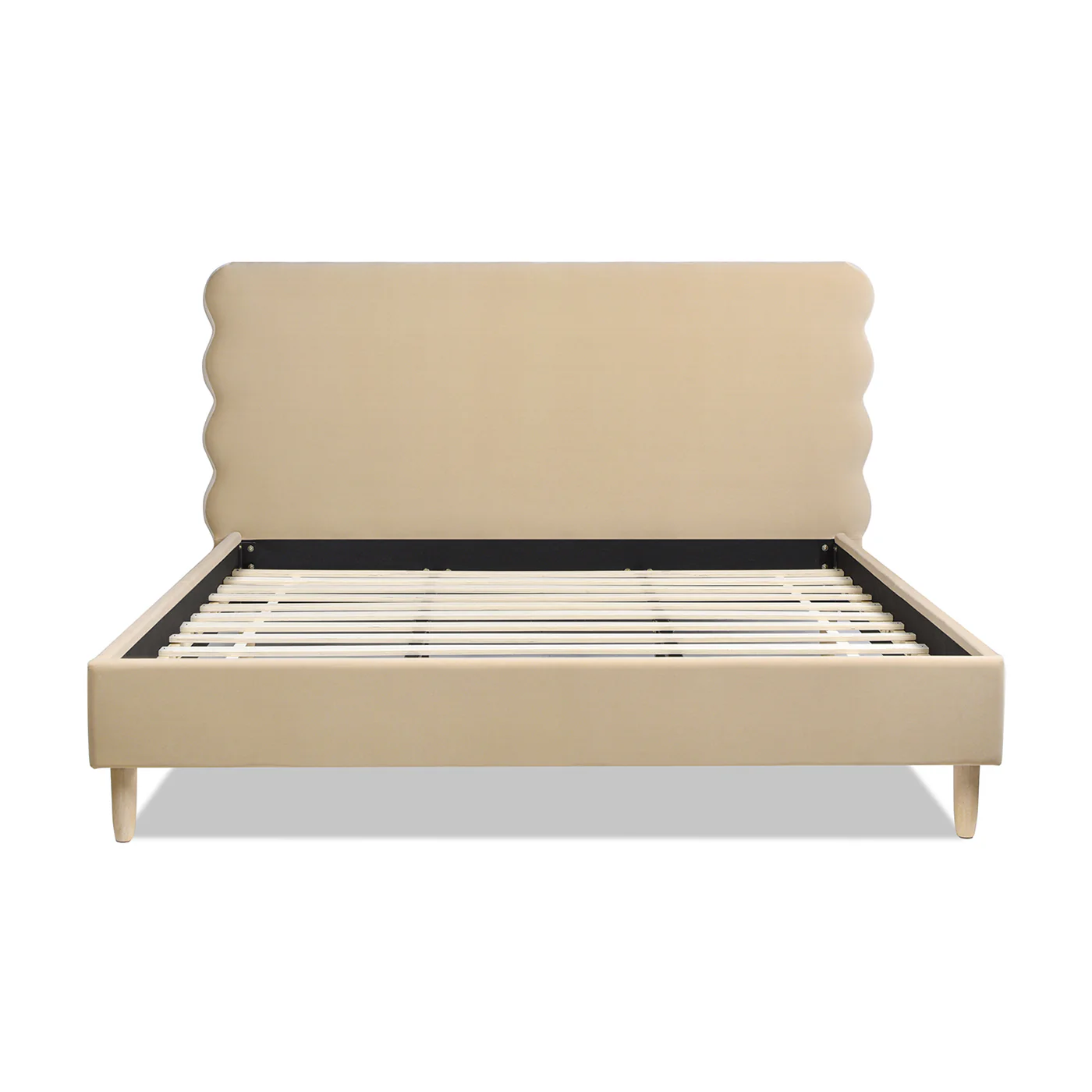 Essencee Upholstered Platform Bed with Wavy Headboard and Wood Legs