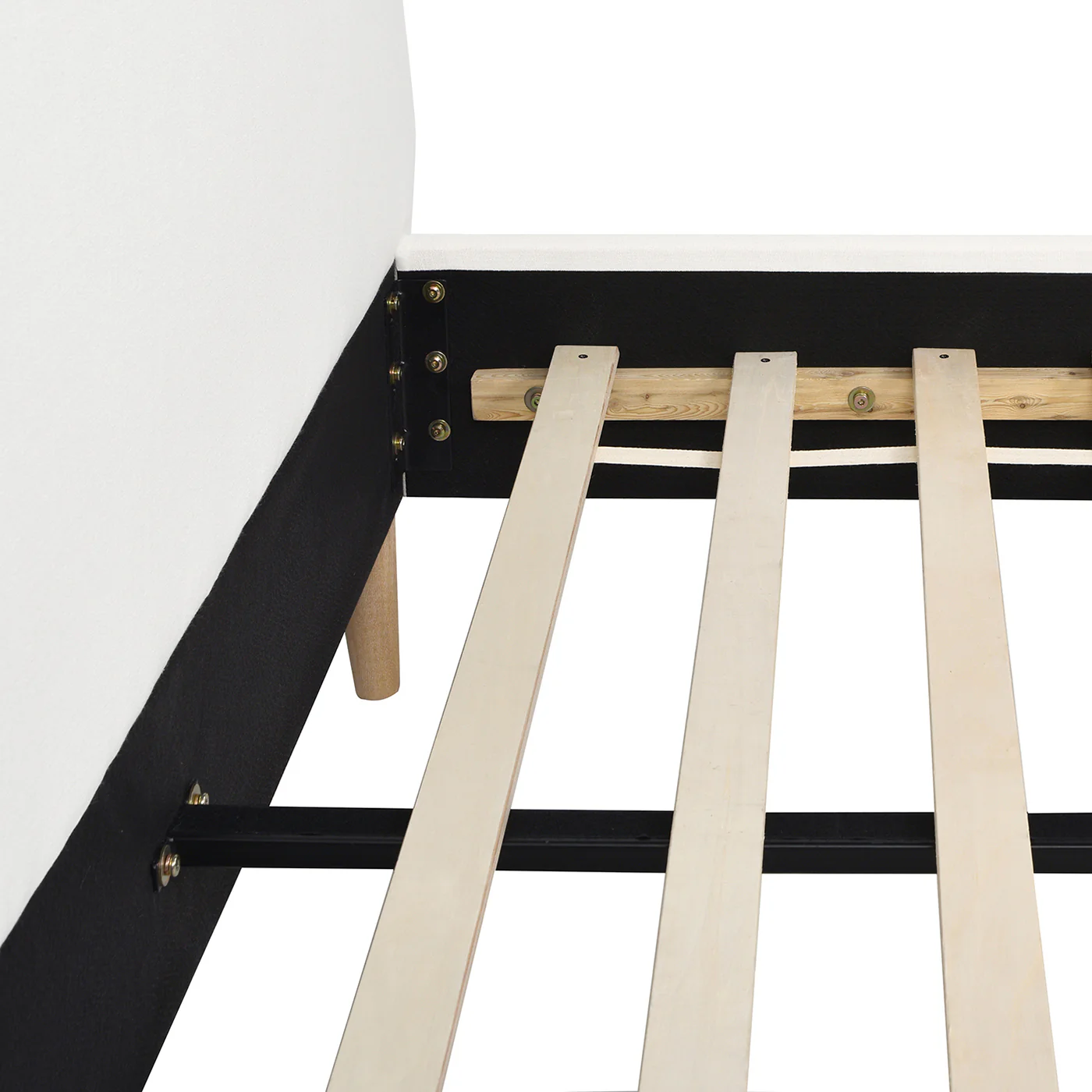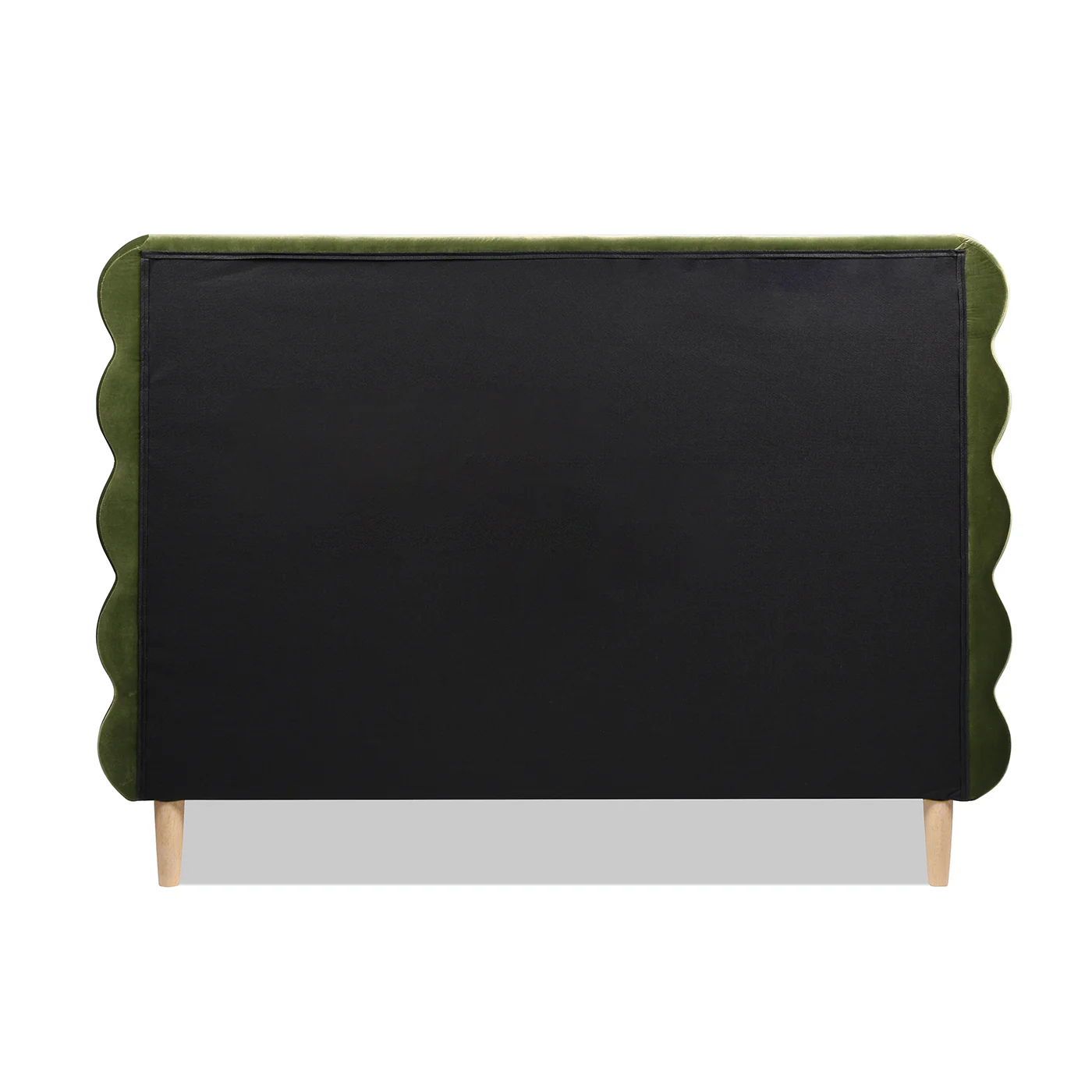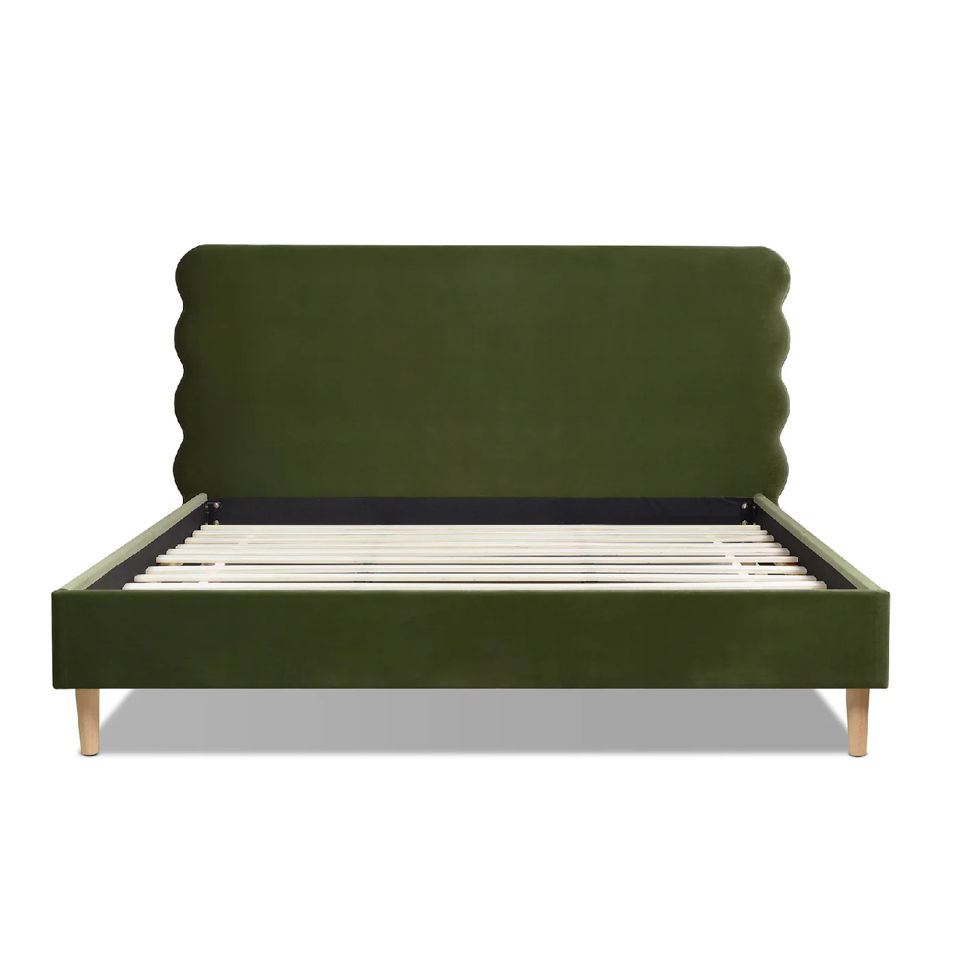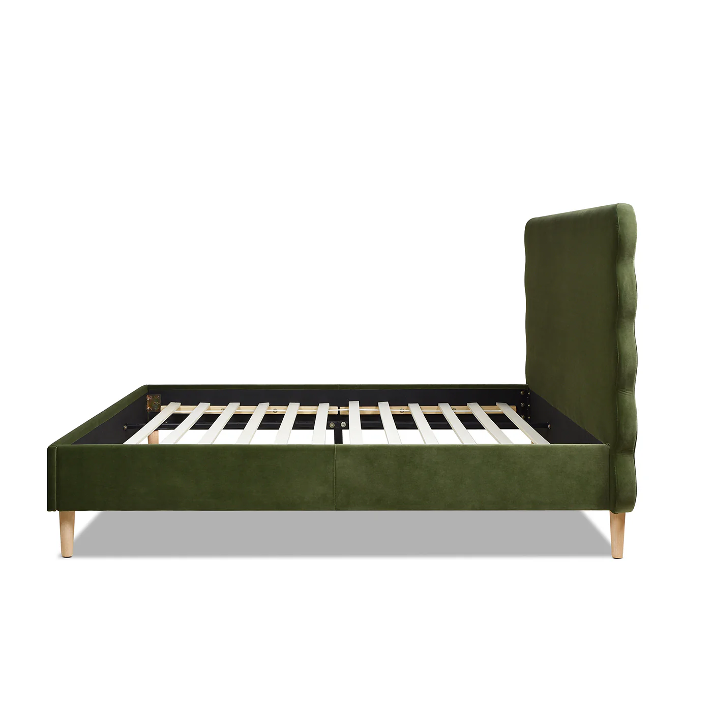Essencee Upholstered Platform Bed with Wavy Headboard and Wood Legs