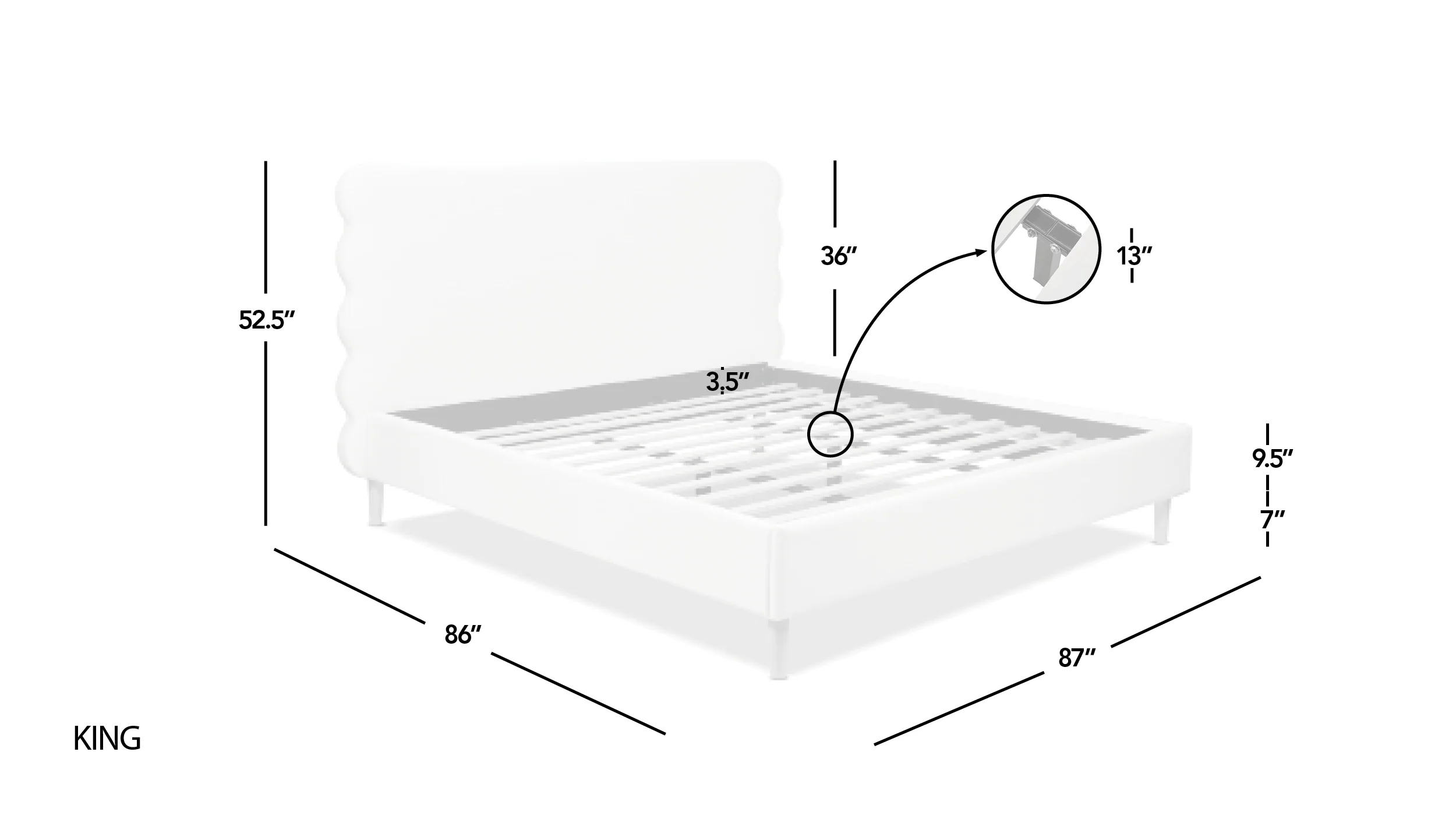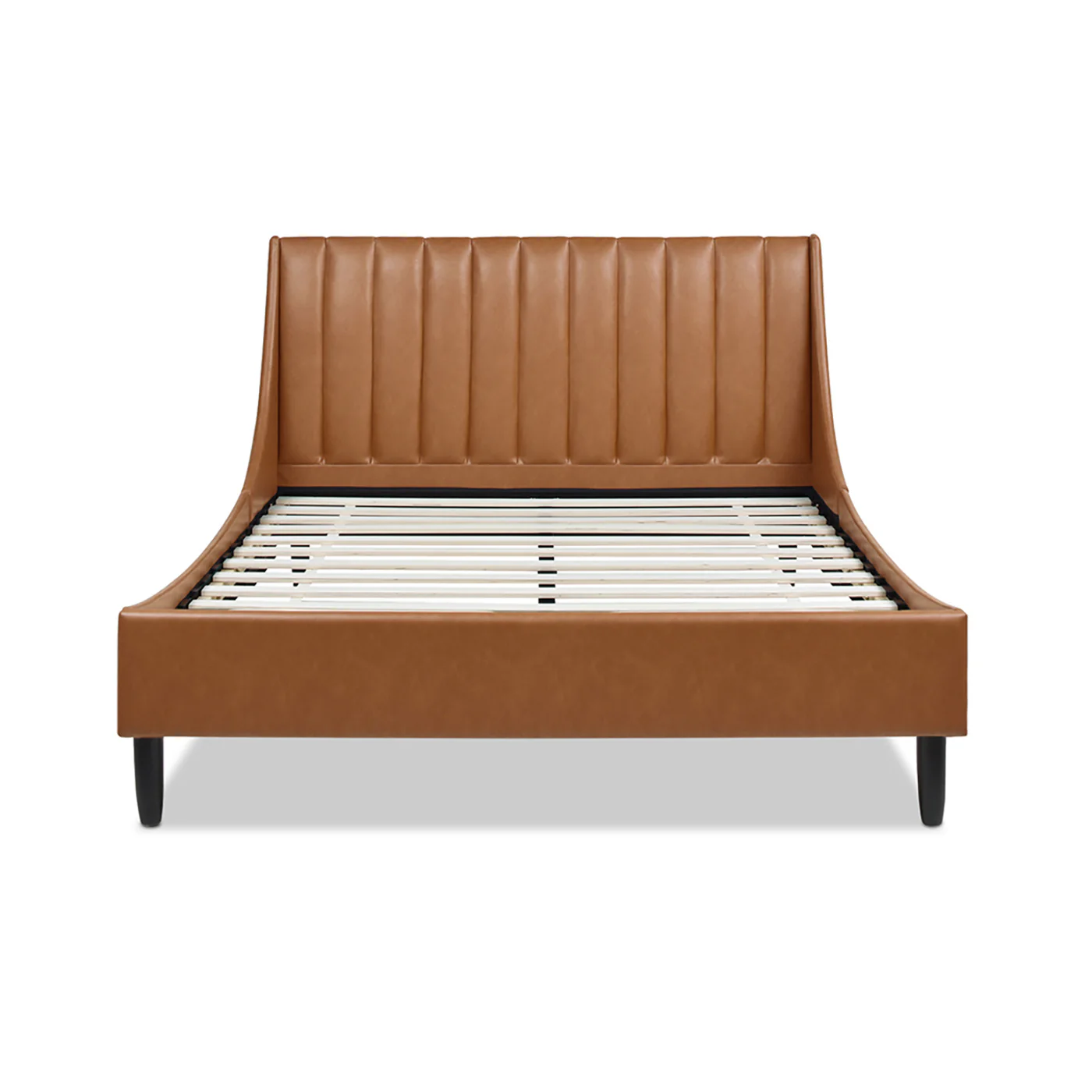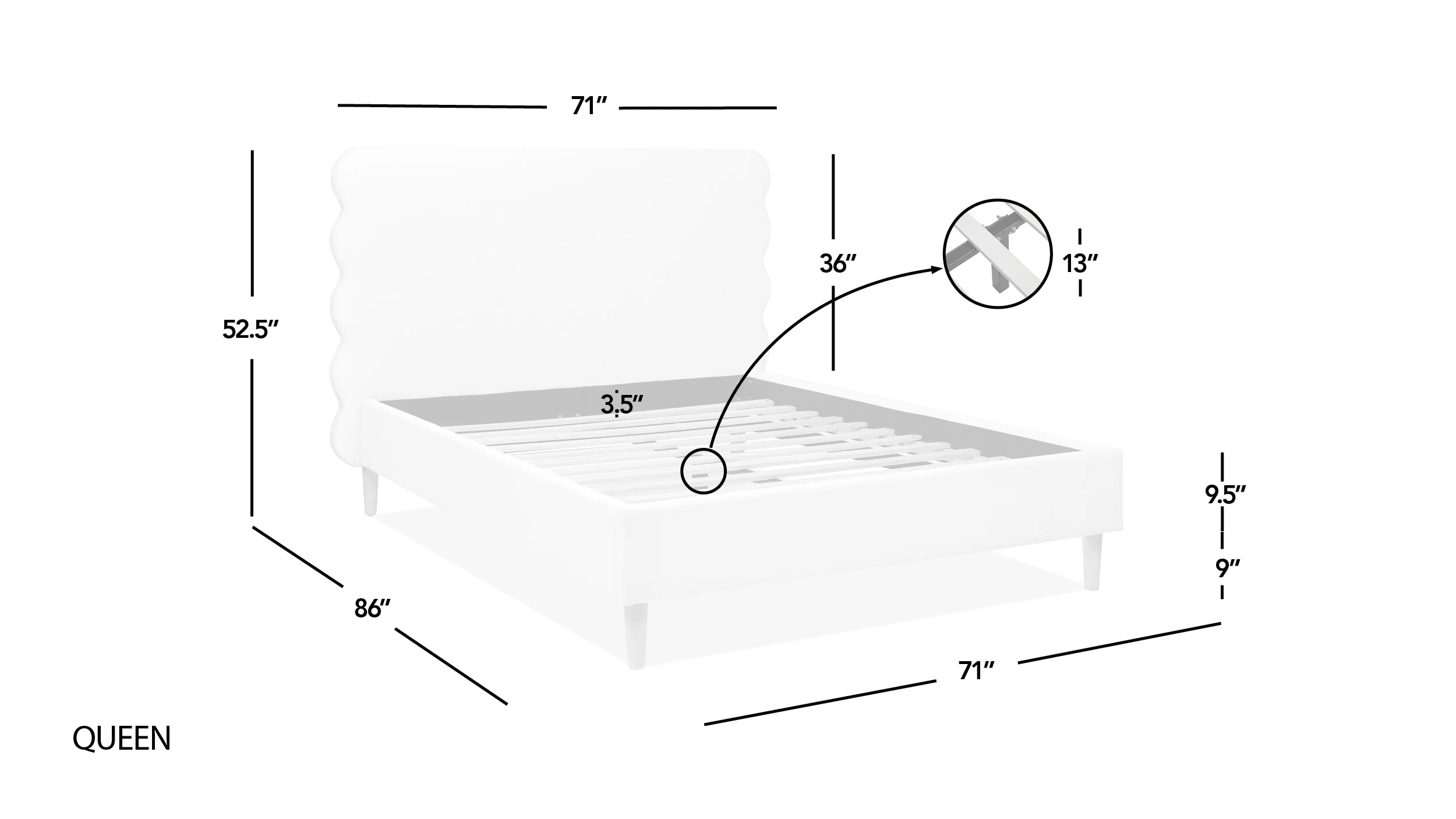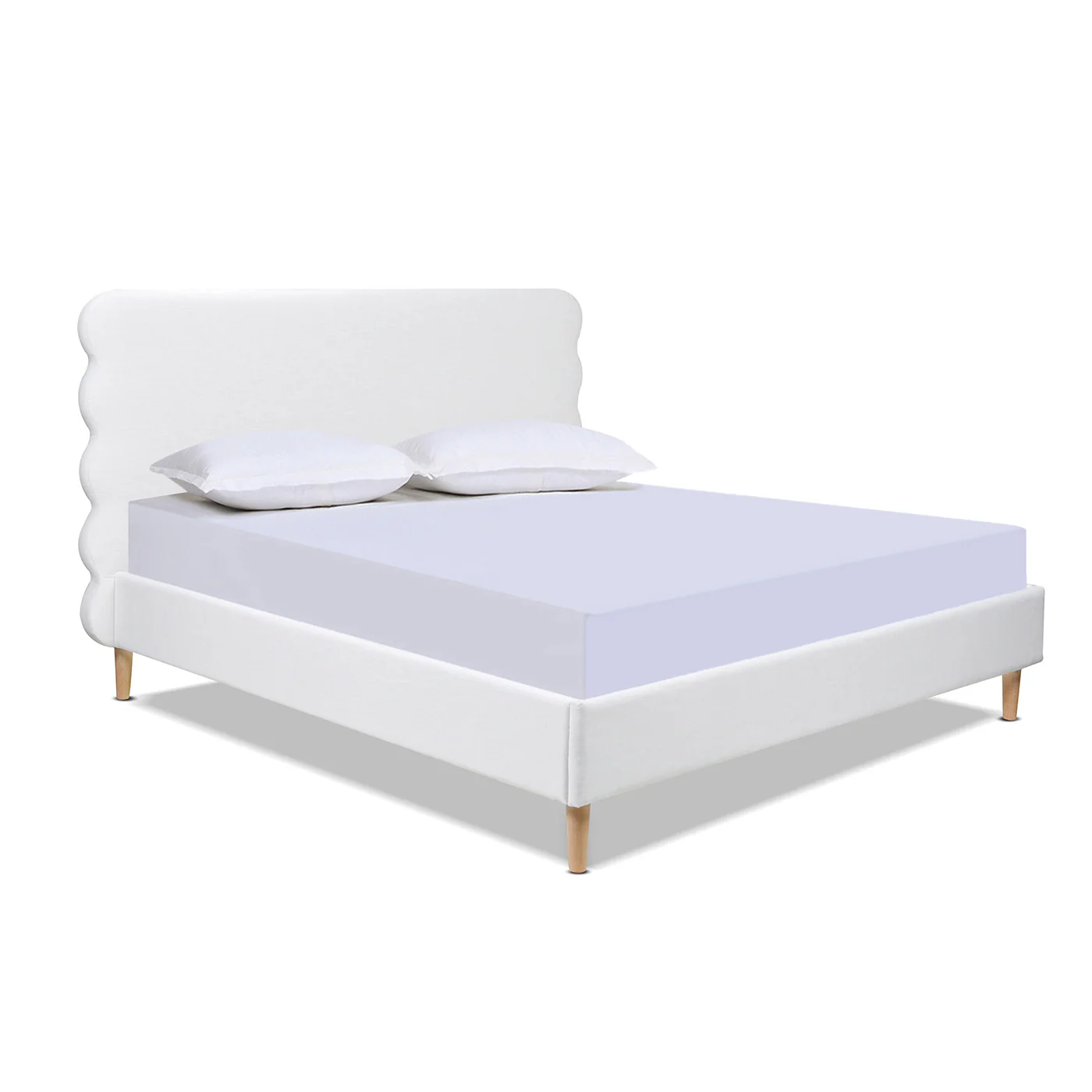 Essencee Upholstered Platform Bed with Wavy Headboard and Wood Legs