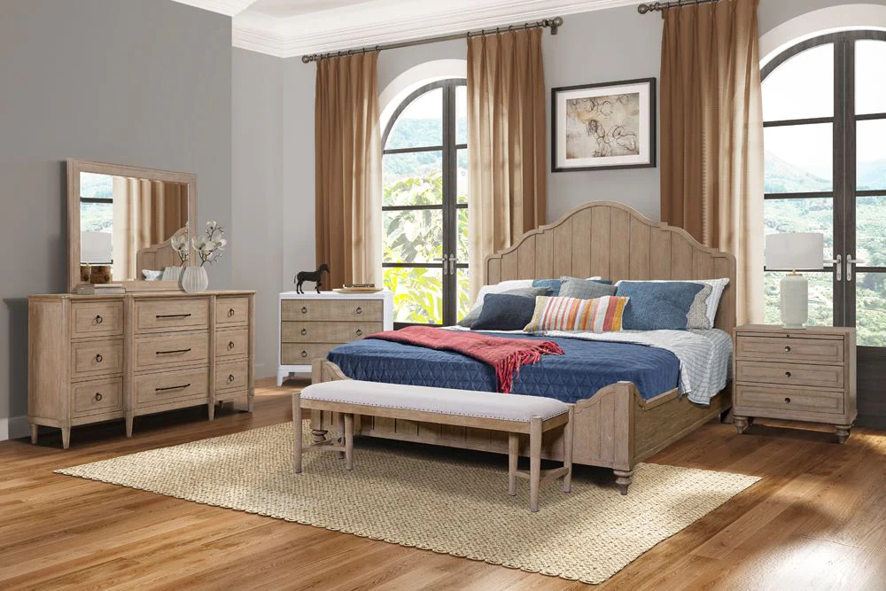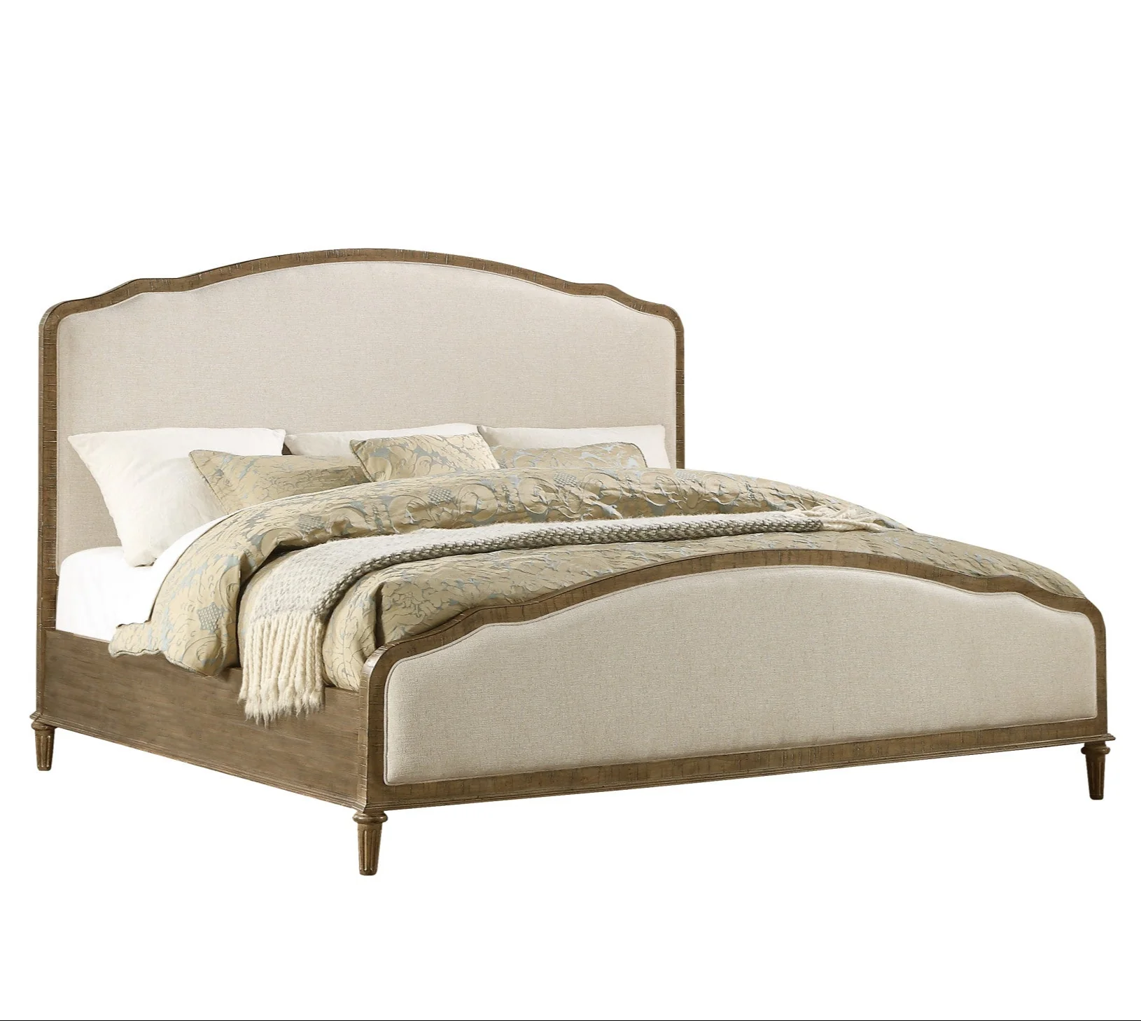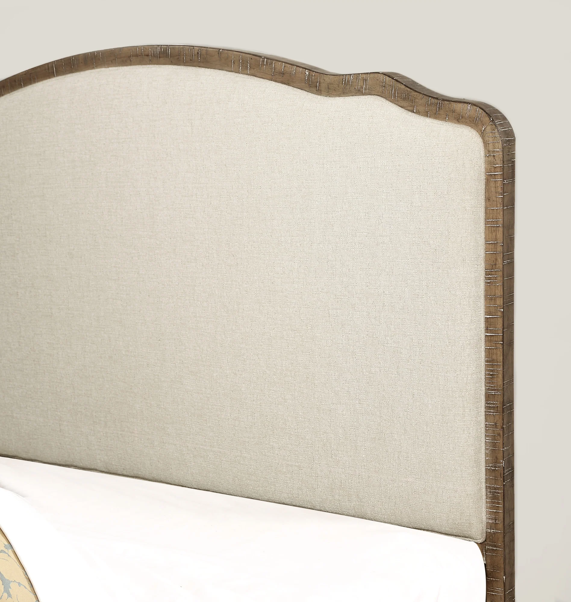 Queen Size Panel Bed with Curved Headboard and Turned Front Legs