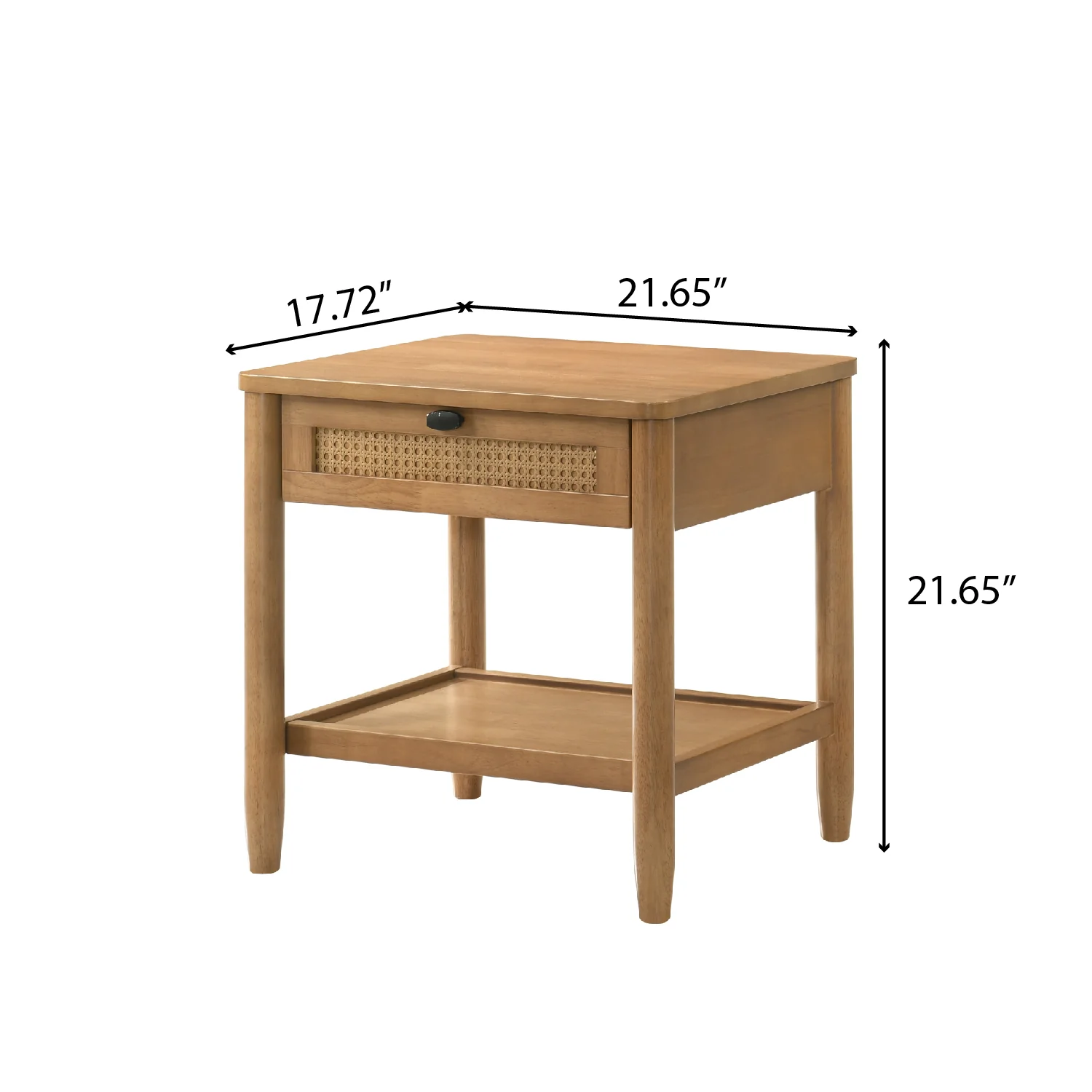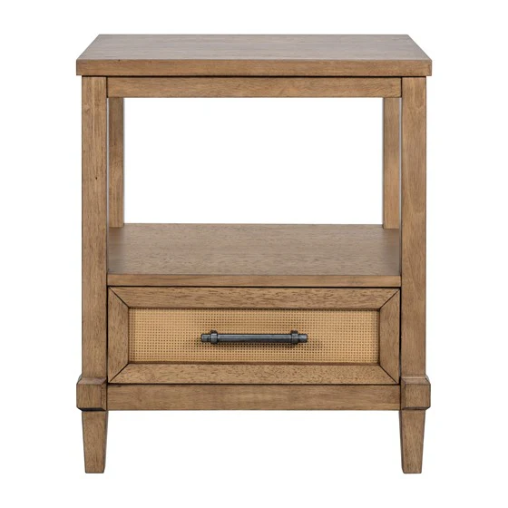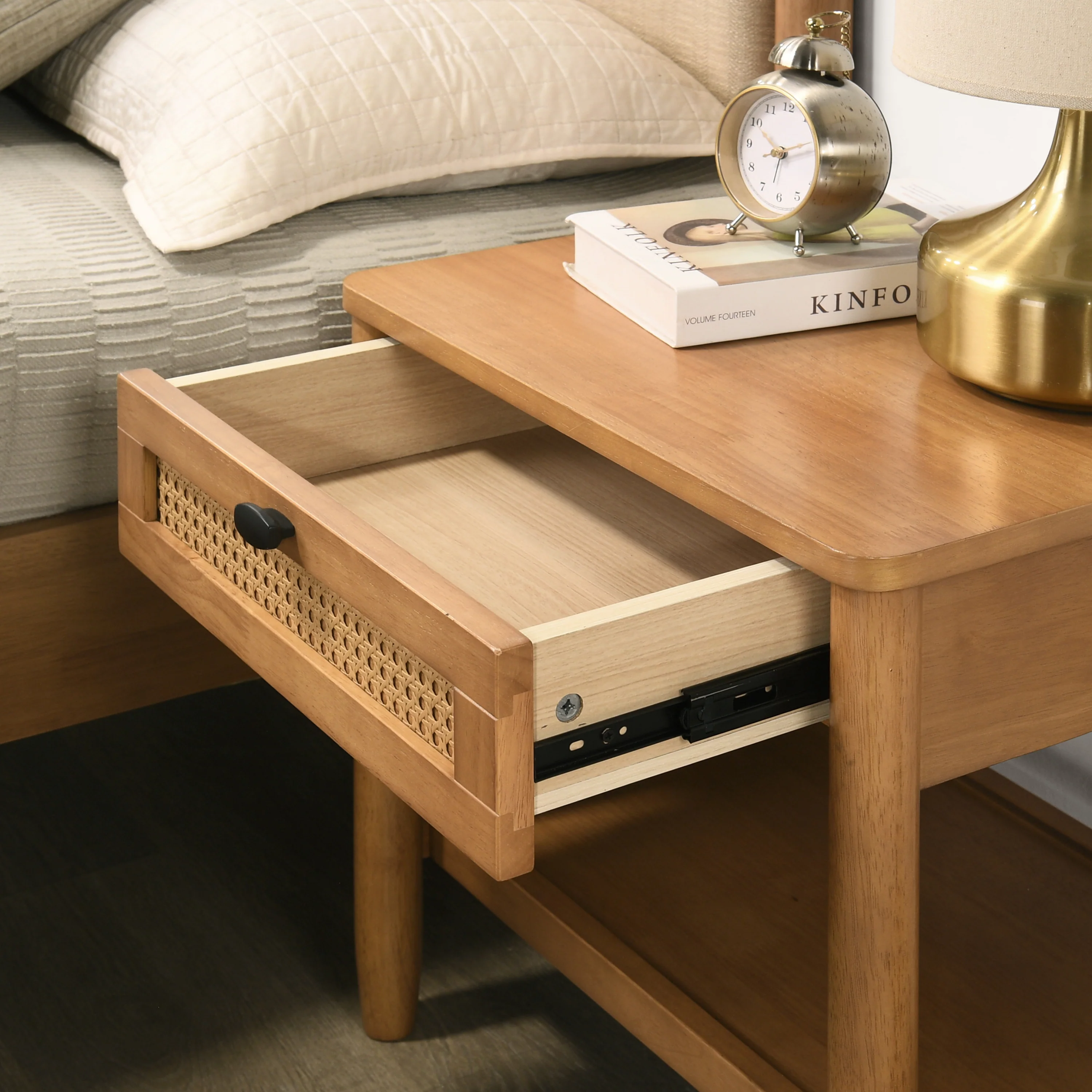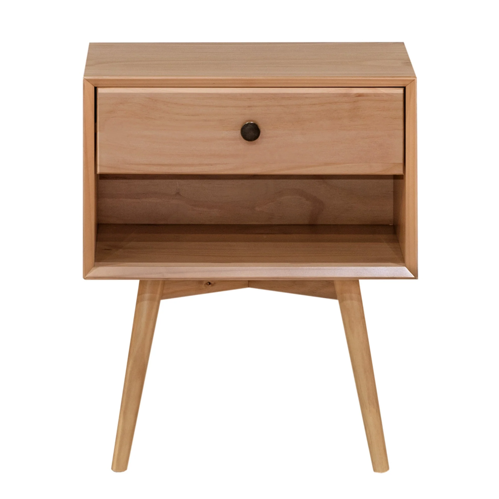 Solid Wood Nightstand with Drawer and Open Bottom Storage