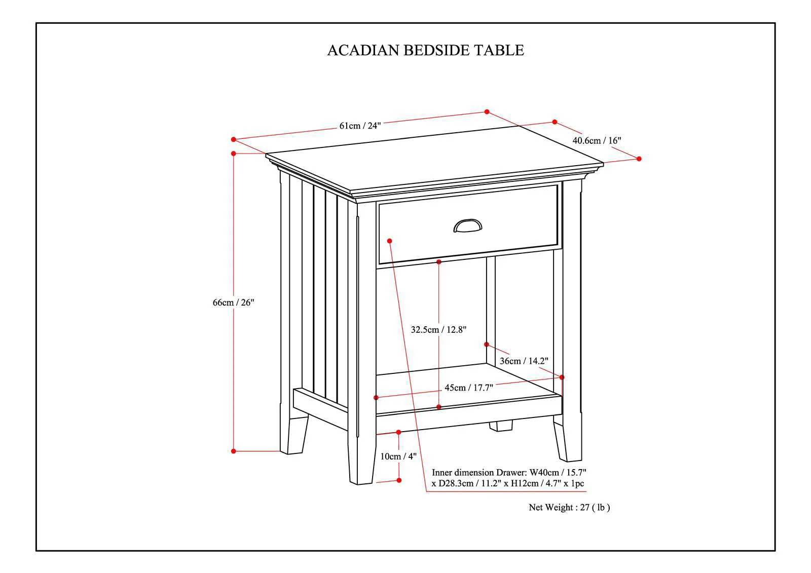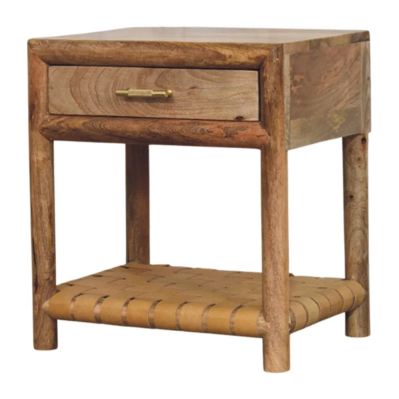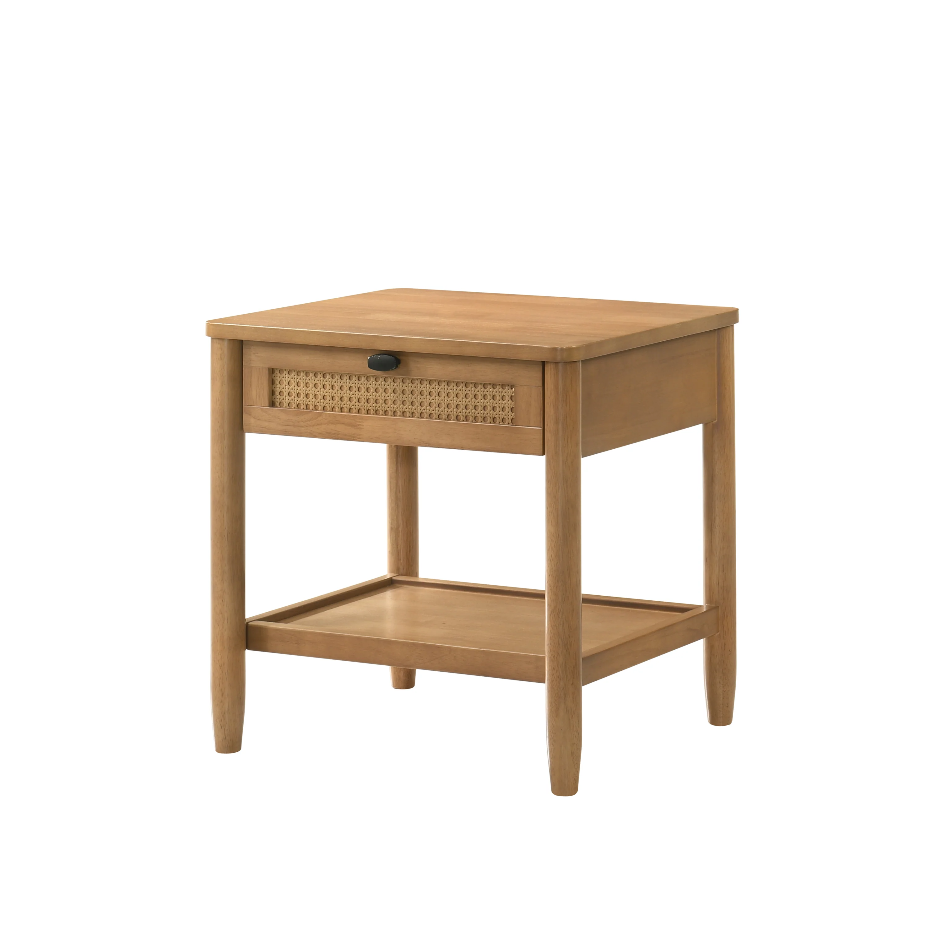 Solid Wood Nightstand with Drawer and Open Bottom Storage