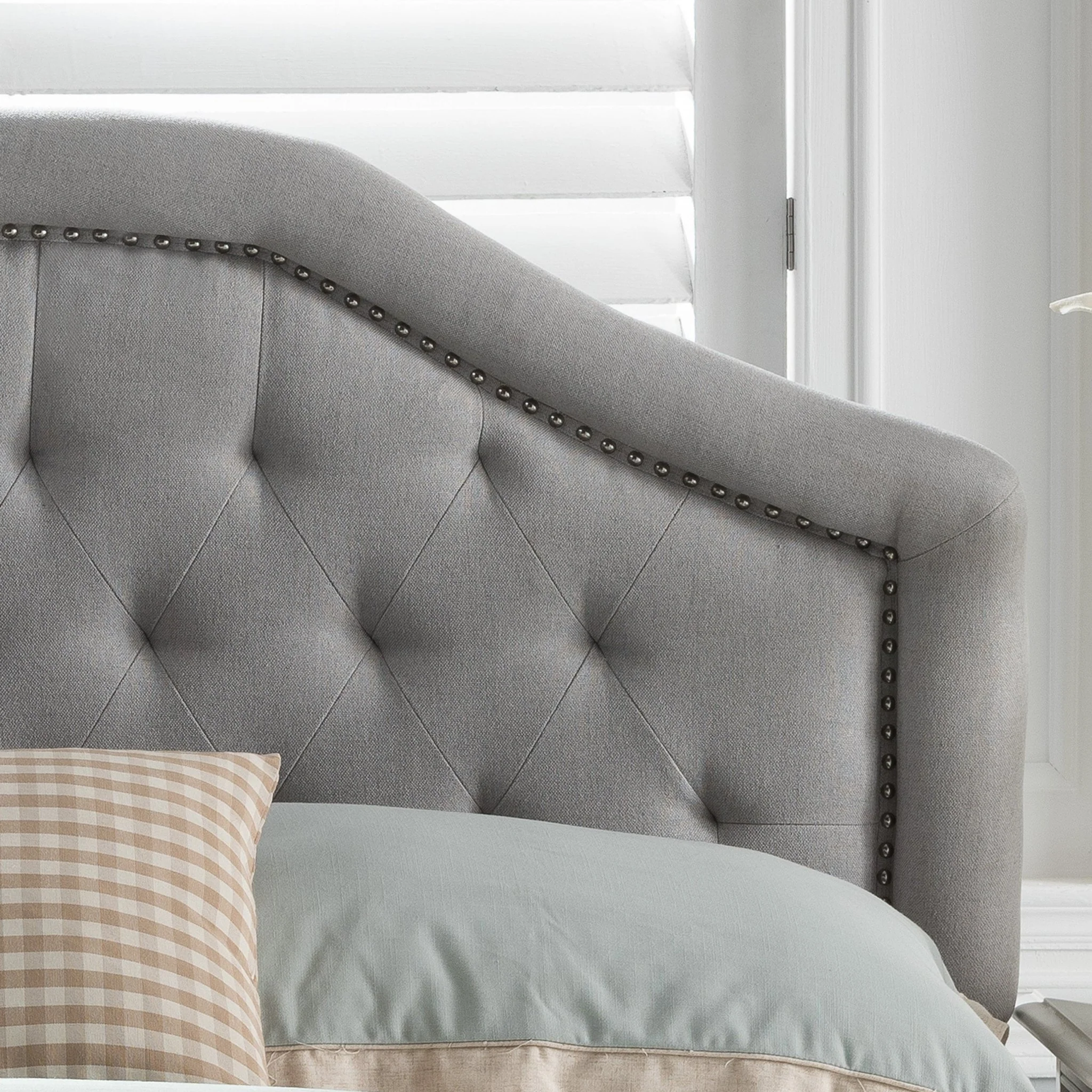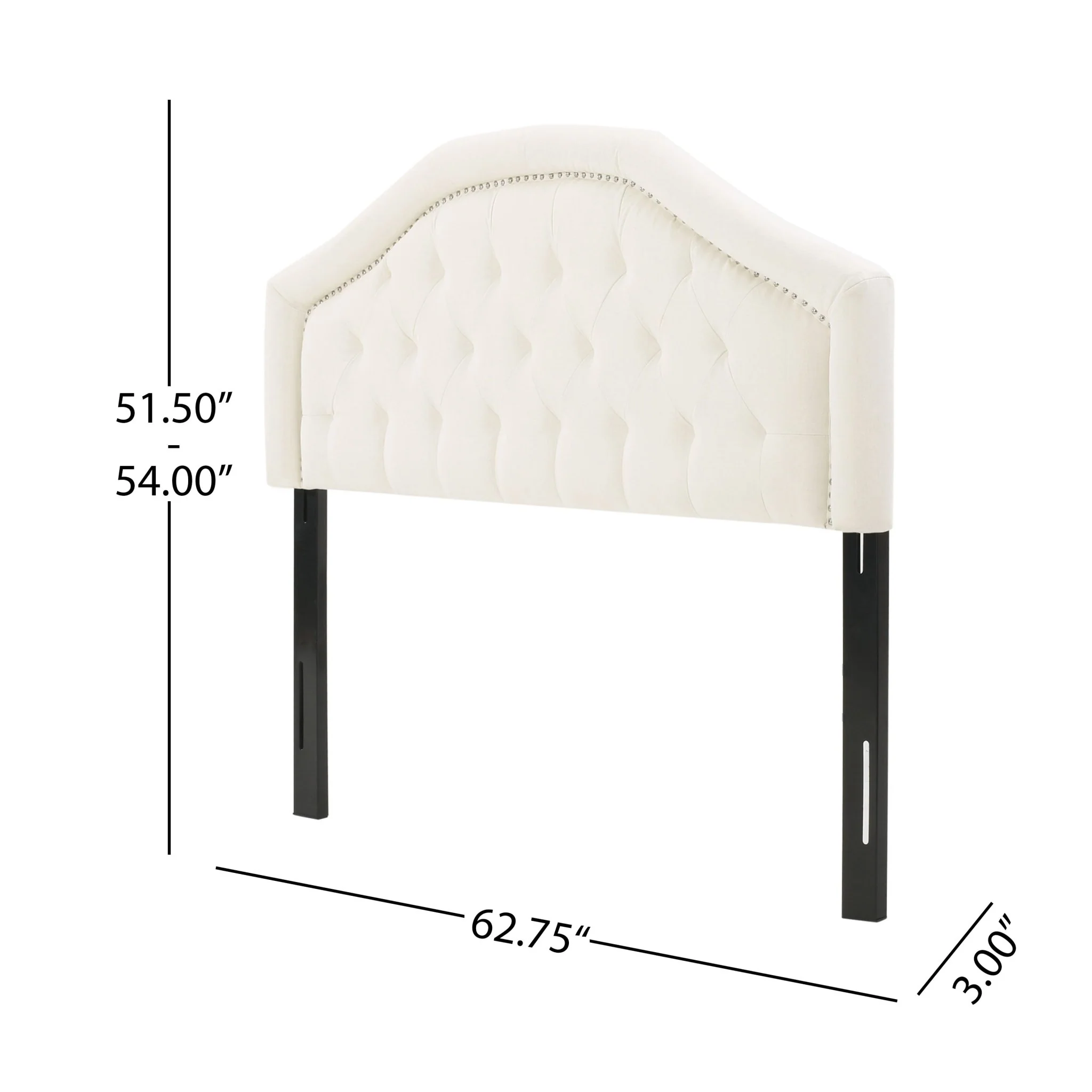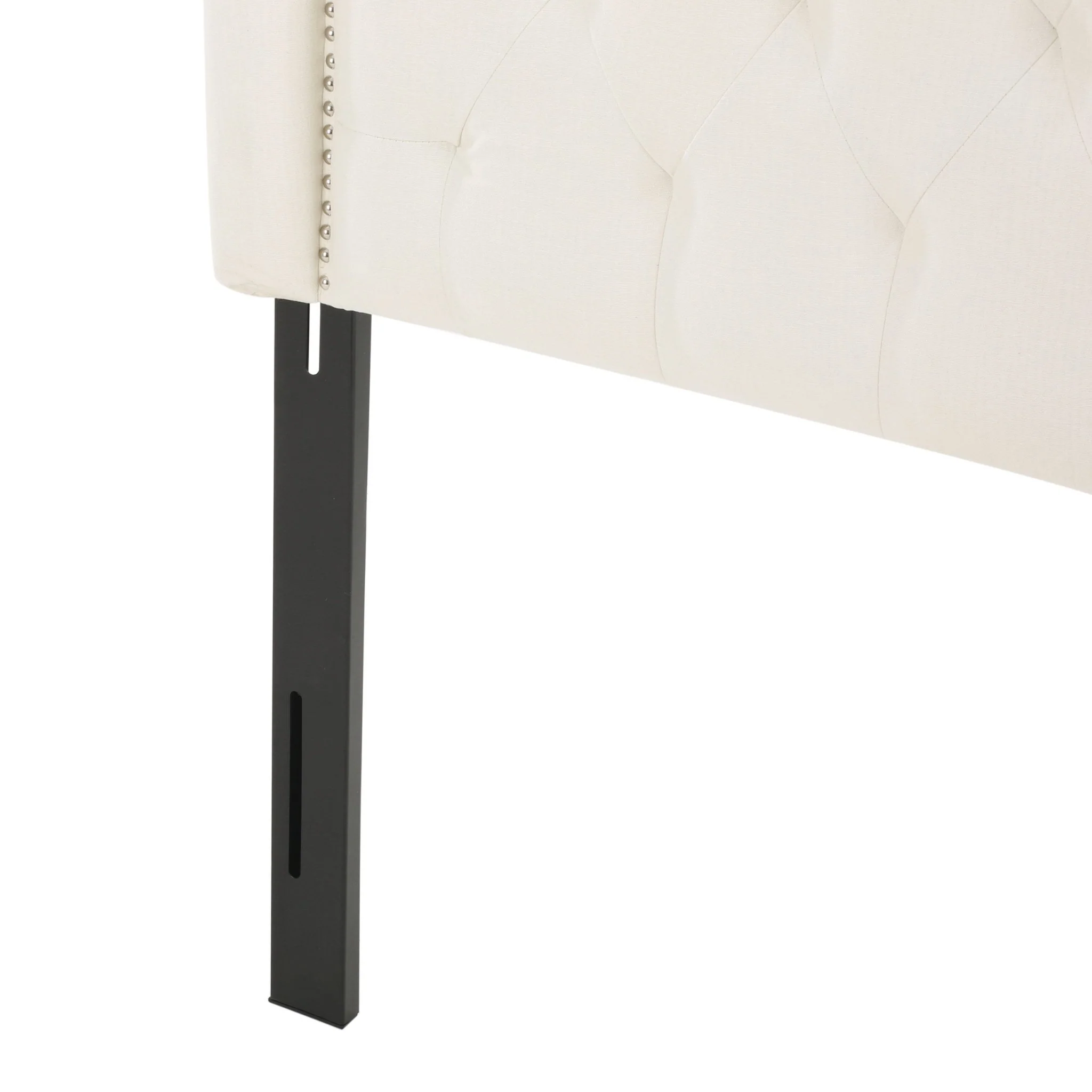 Upholstered Headboard with Diamond Tufted and Nail Head Trim, Queen and Full Size