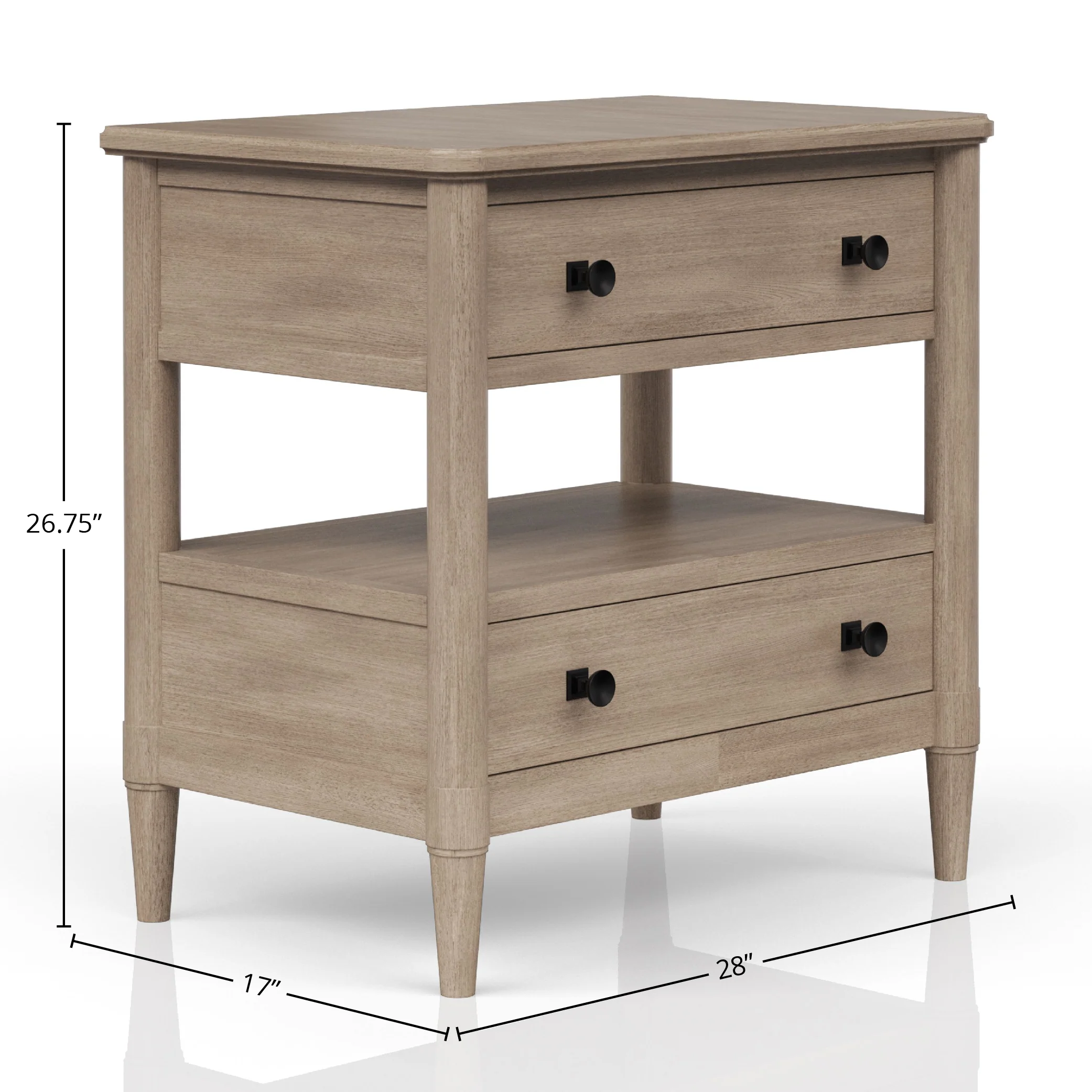 Nebulized Solid Wood Nightstand with 2 Drawers and Tray Top
