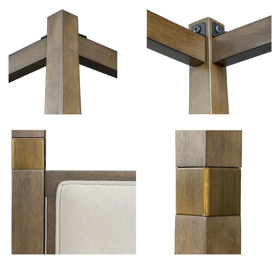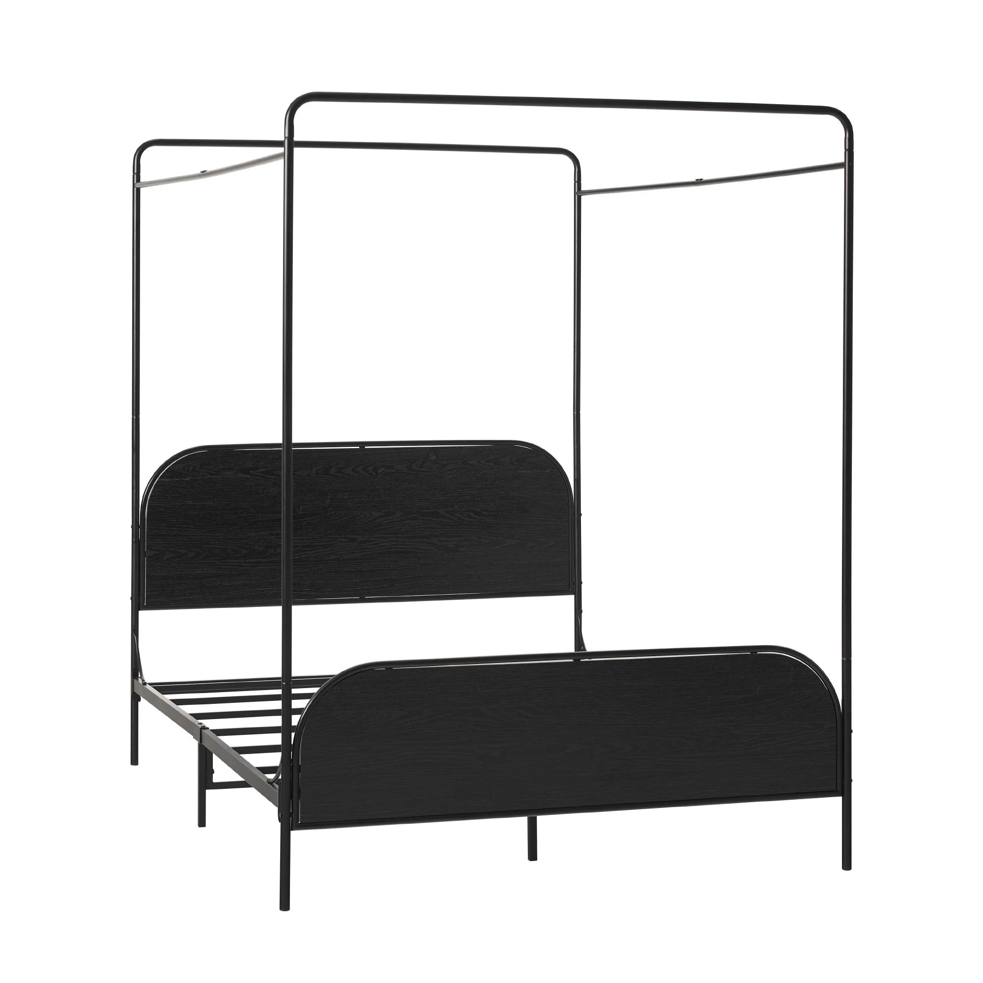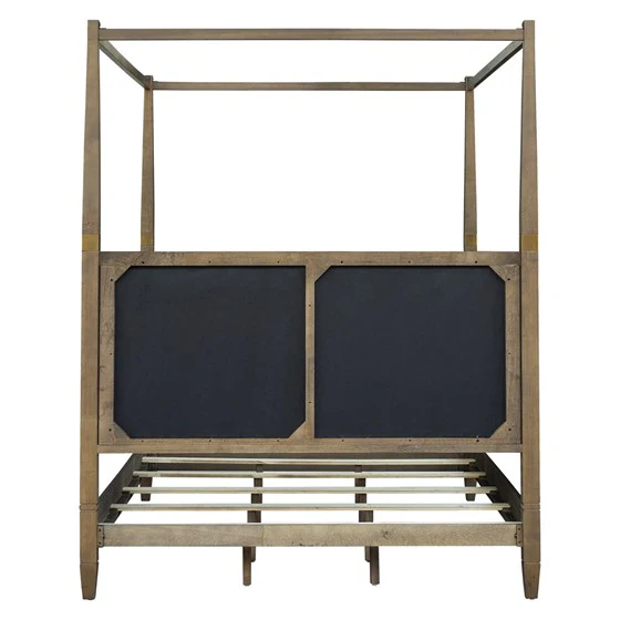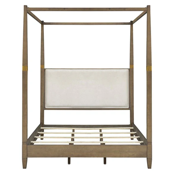 Queen Size Canopy Bed with Upholstered Headboard and Wood Frame