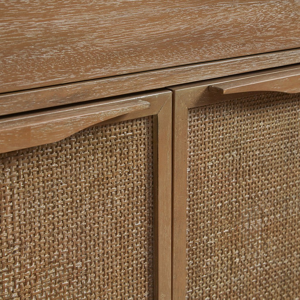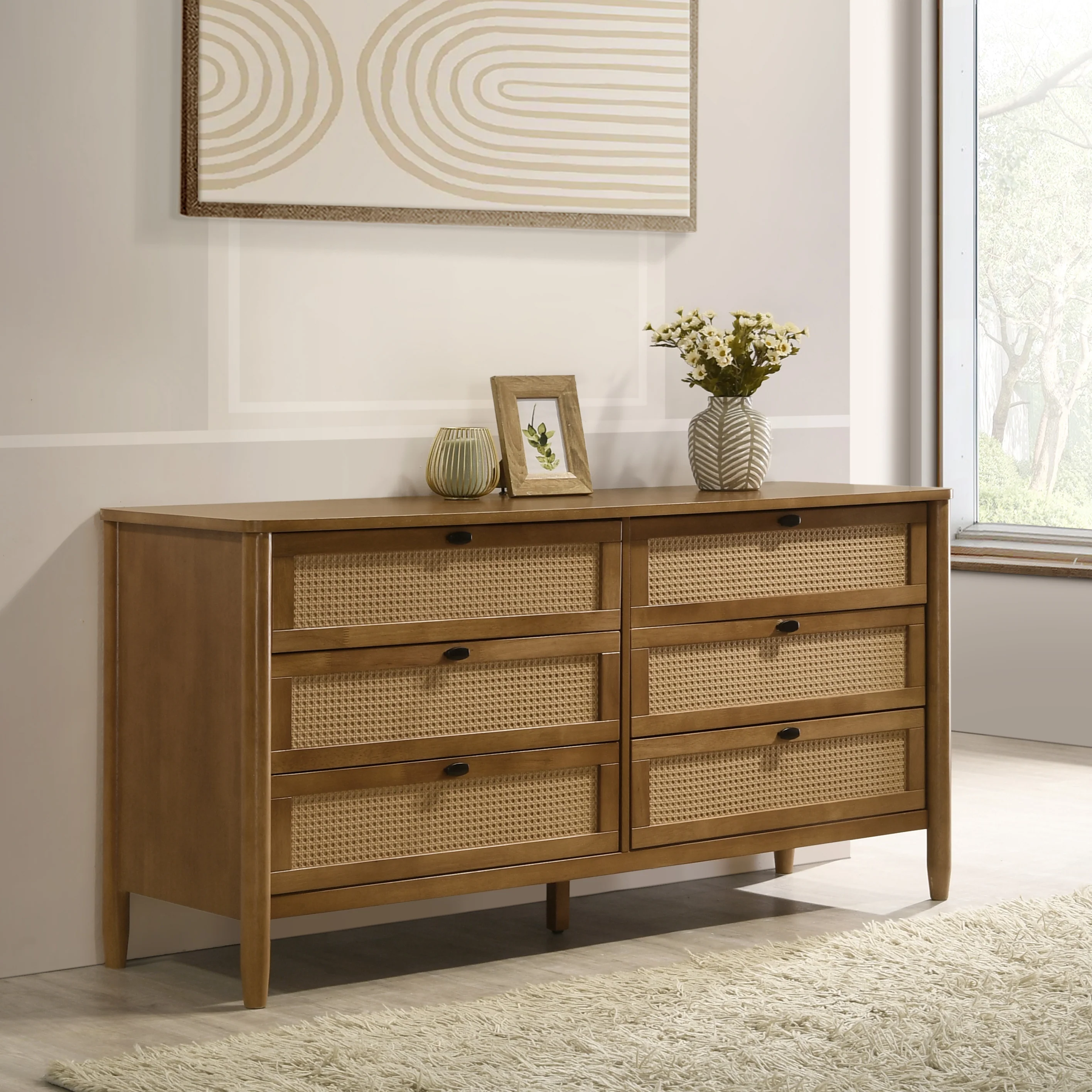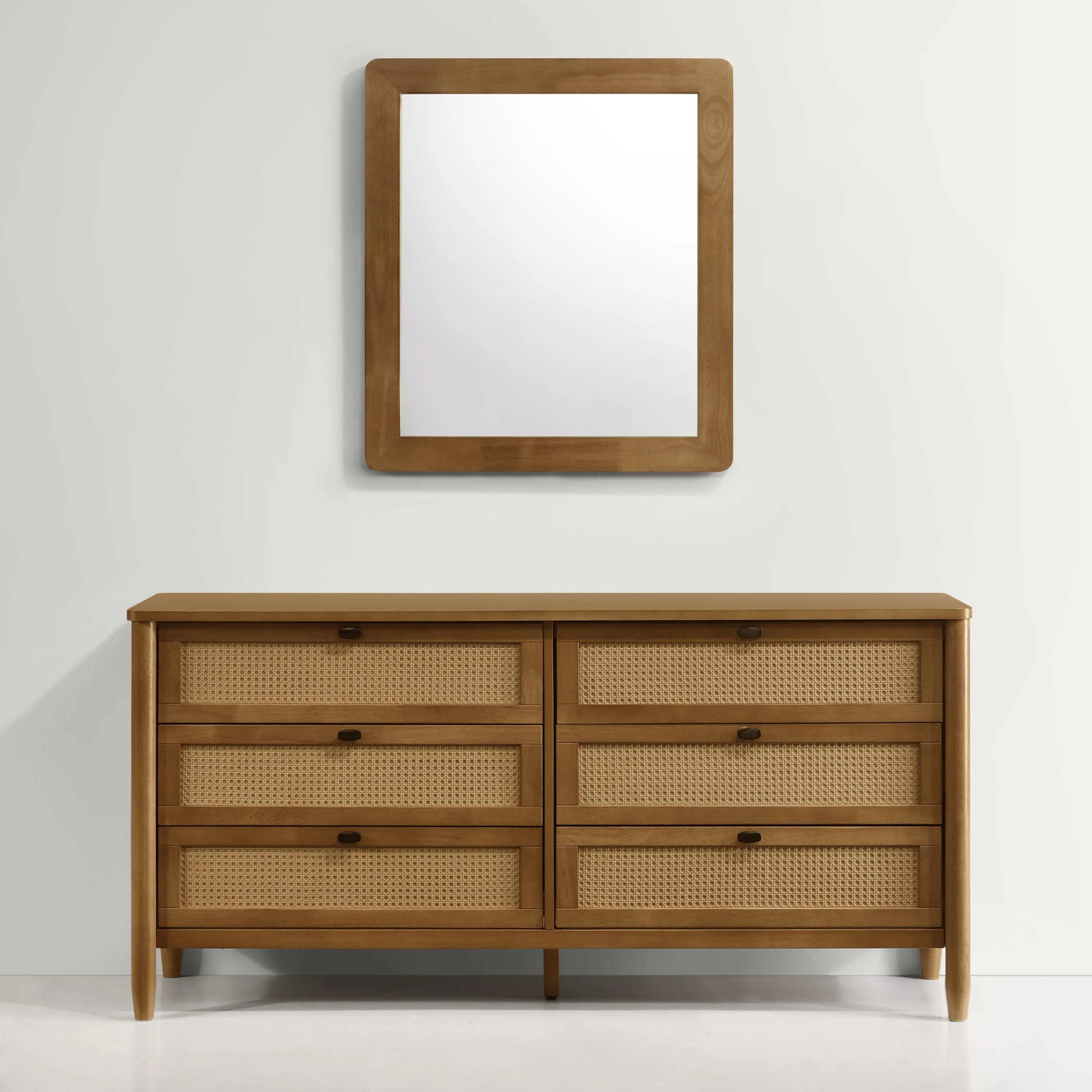 Vichy Wood and Rattan 6-Drawer Dresser with Mirror