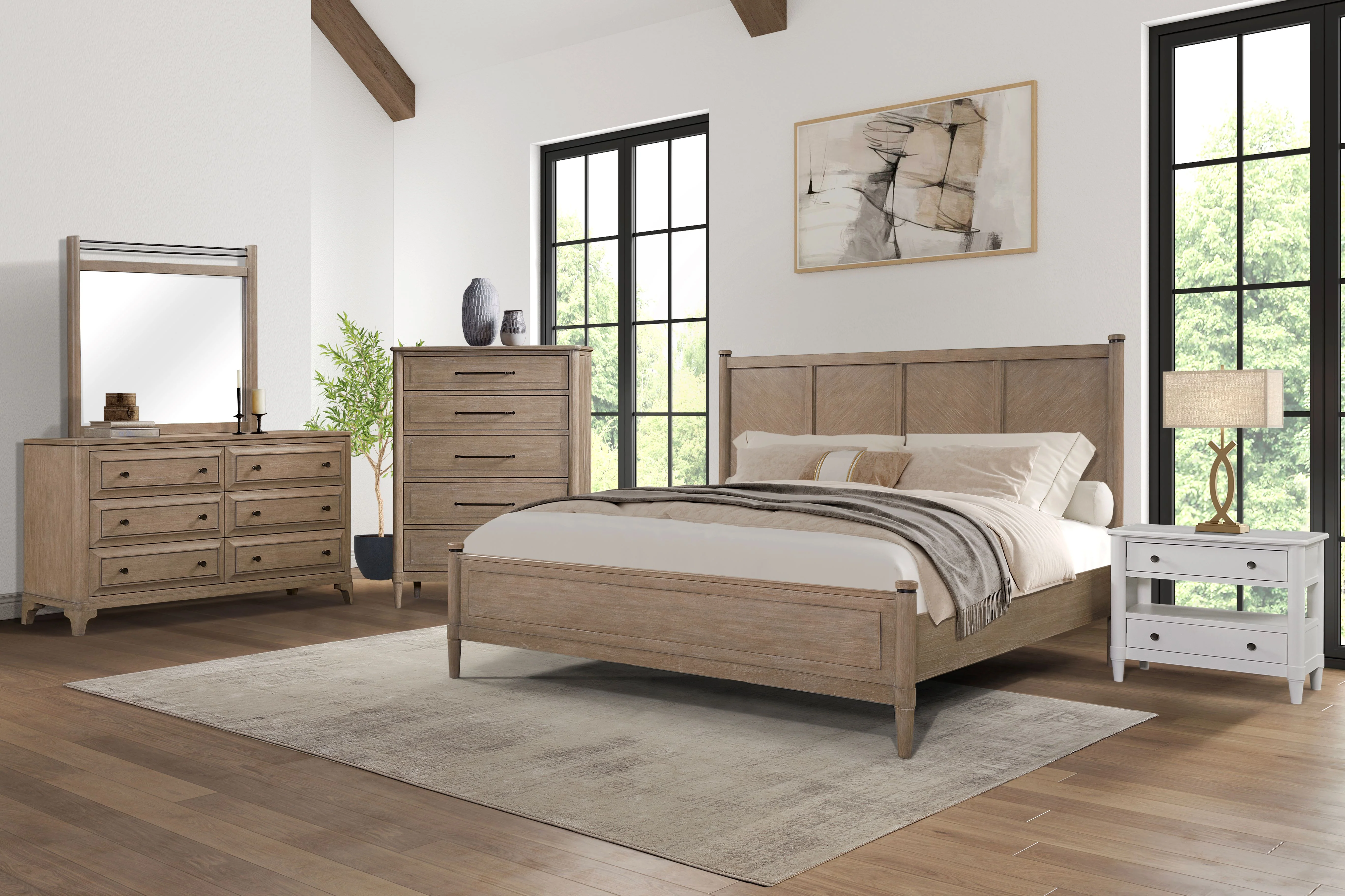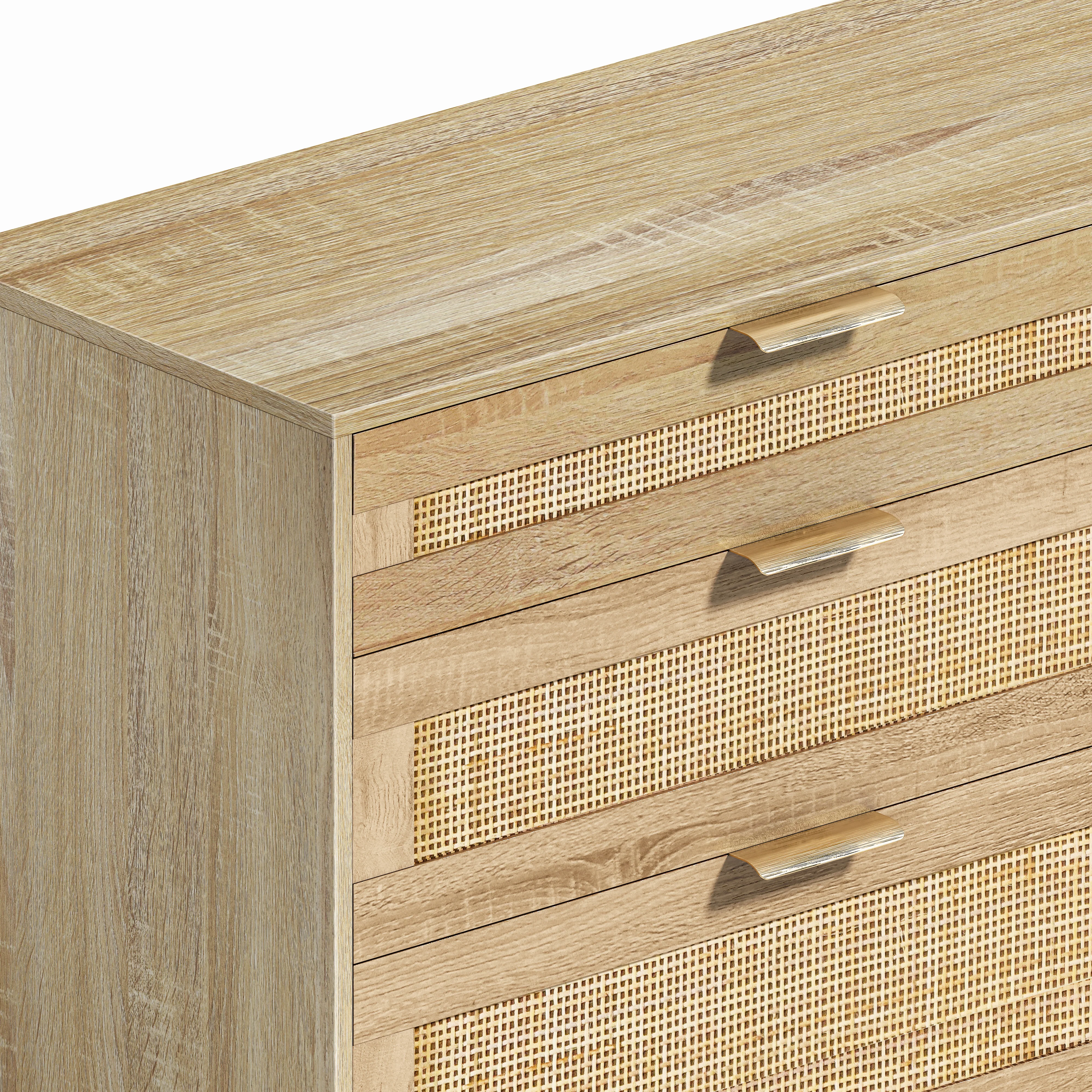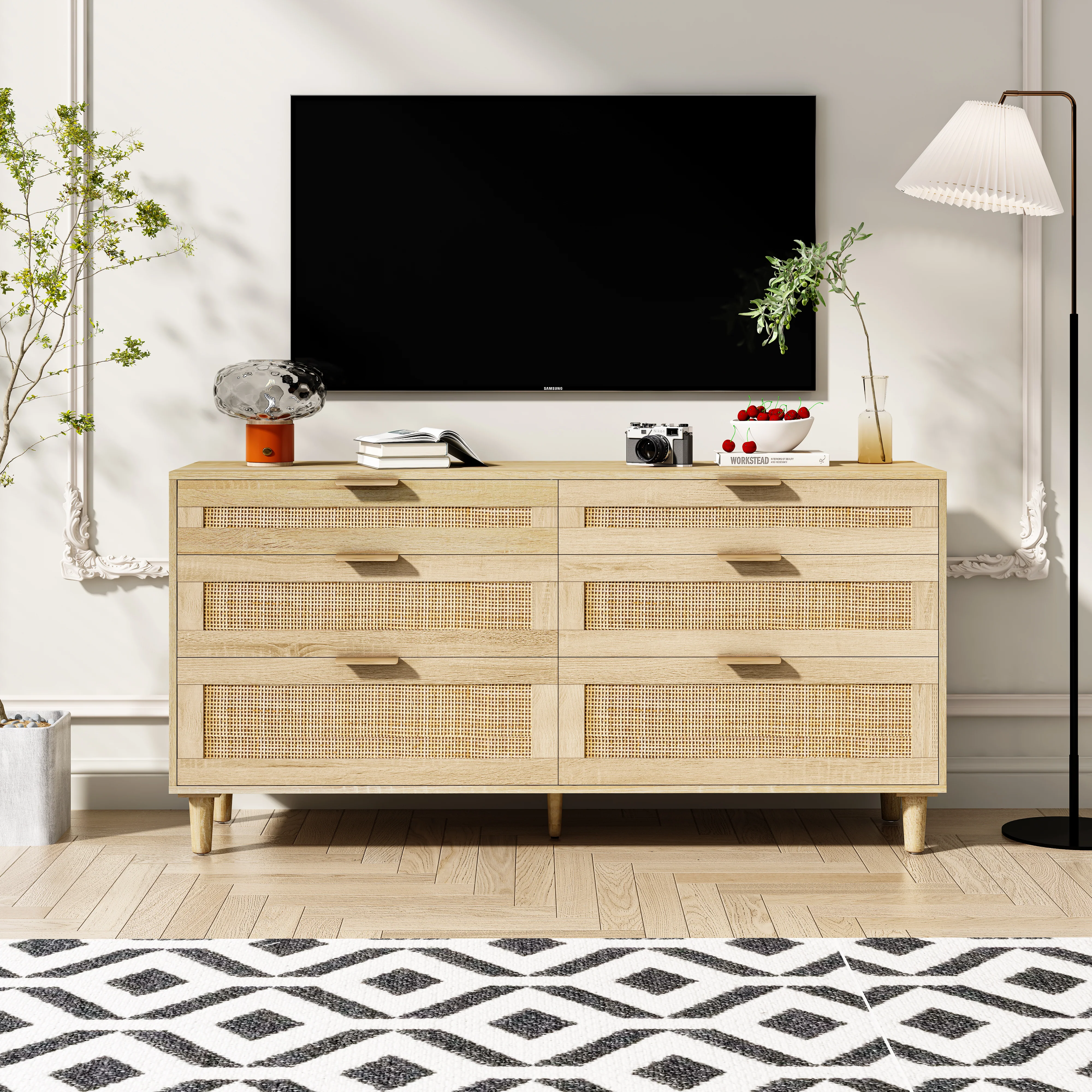 Vichy Wood and Rattan 6-Drawer Dresser with Mirror