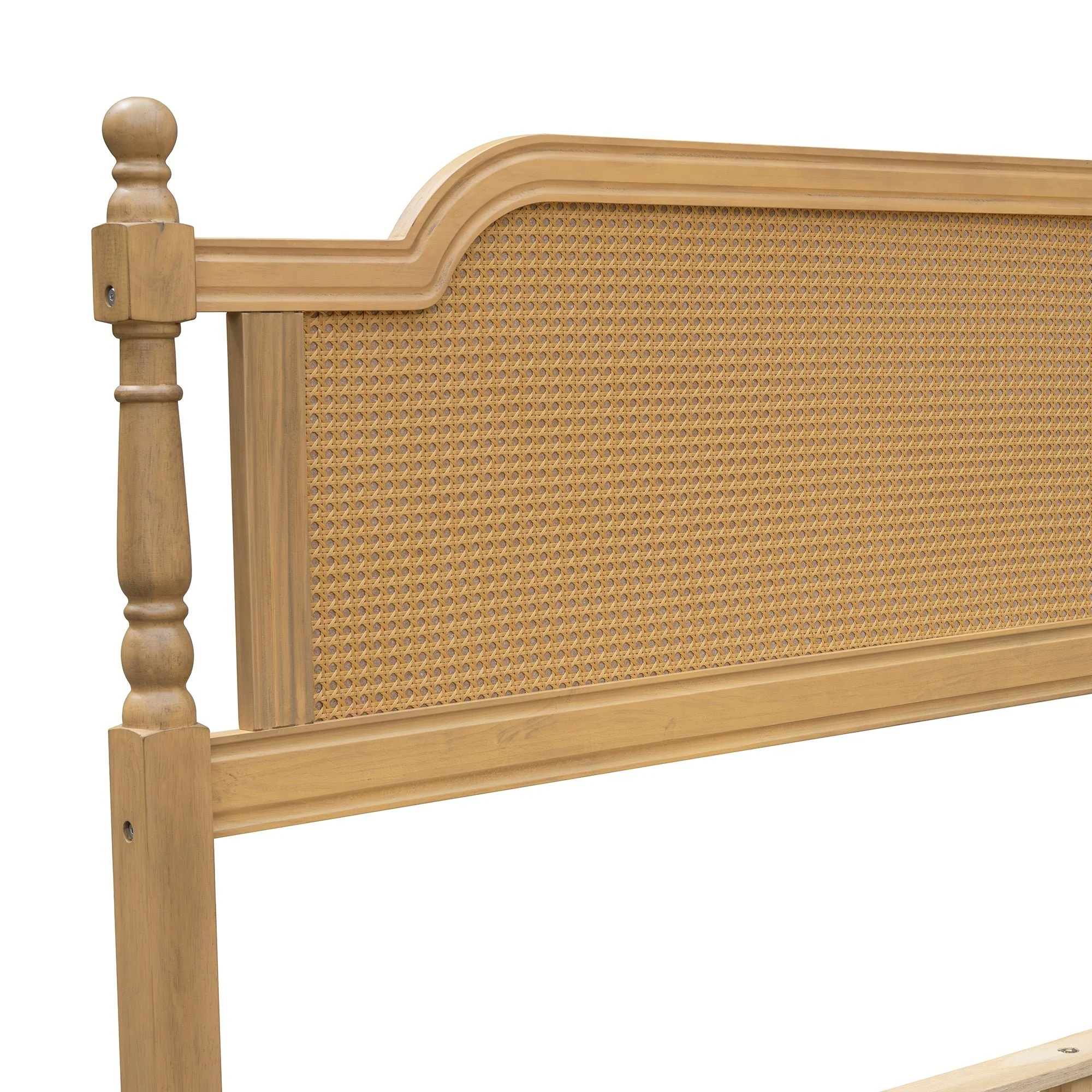 Queen Size Cane Platform Bed with Headboard and Footboard
