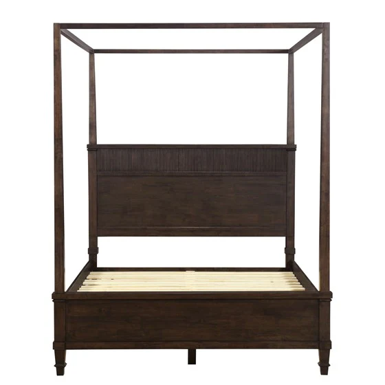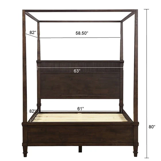 Queen Size Canopy Bed with Fluted Design and Wood Frame