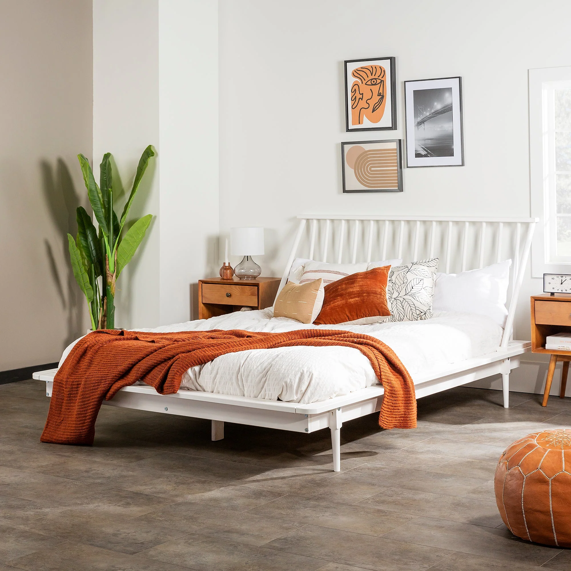 Meadow Solid Wood Queen Platform Bed Frame with Spindle Headboard