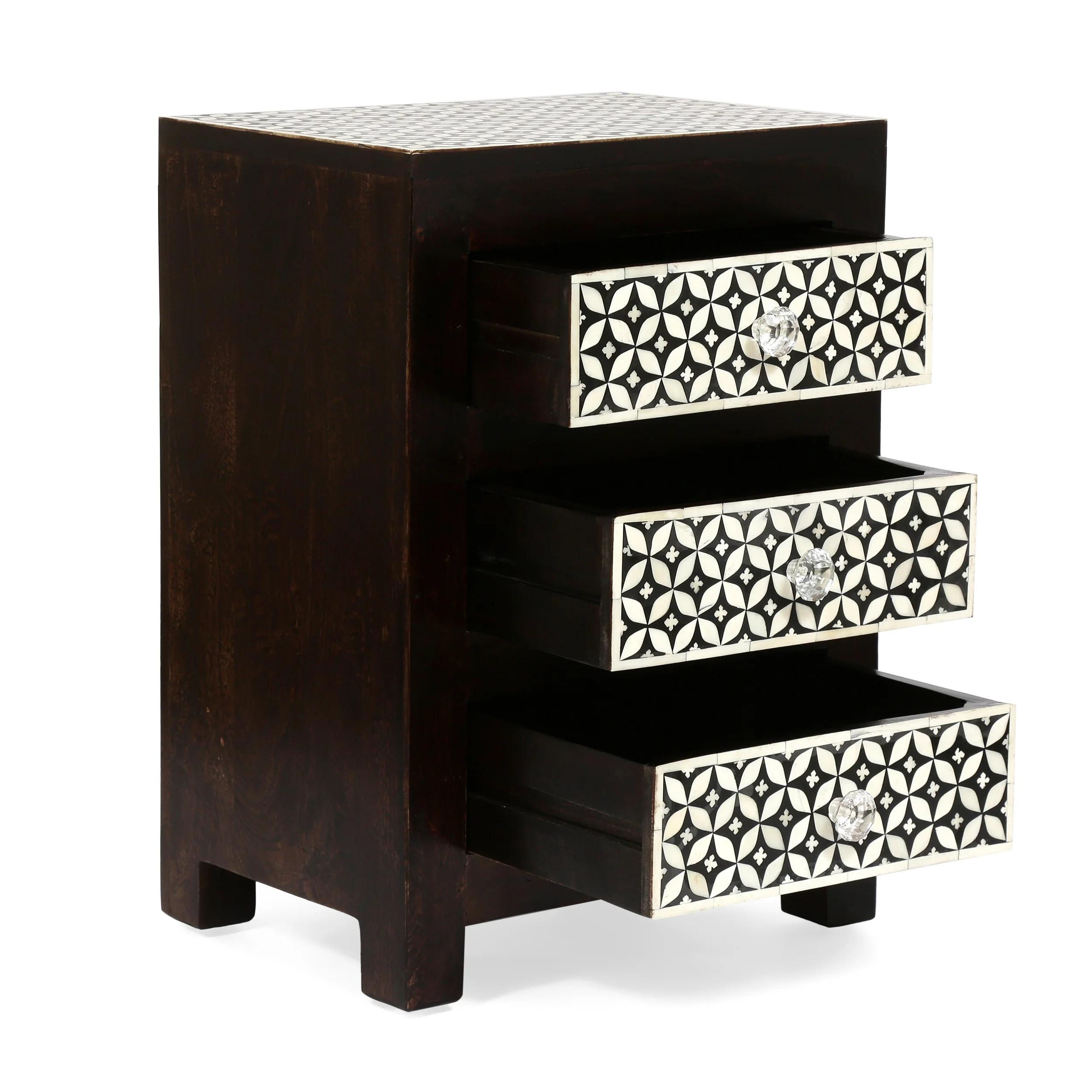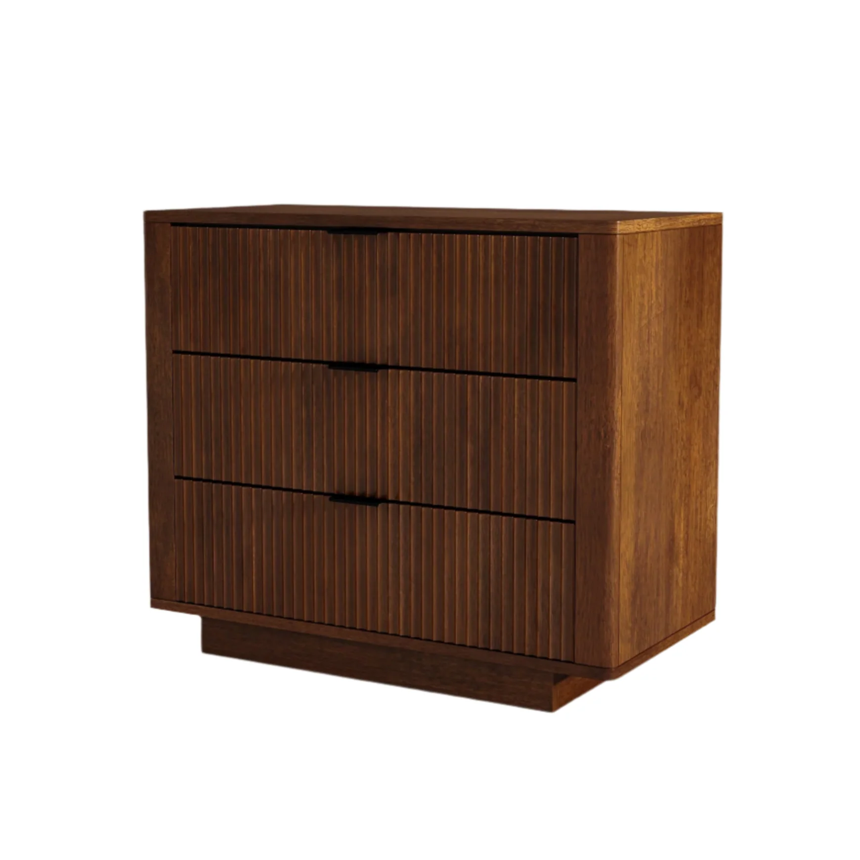 Mango Wood 3-Drawer Chest with 3D Tile Weave Design