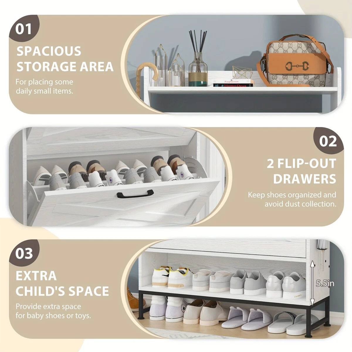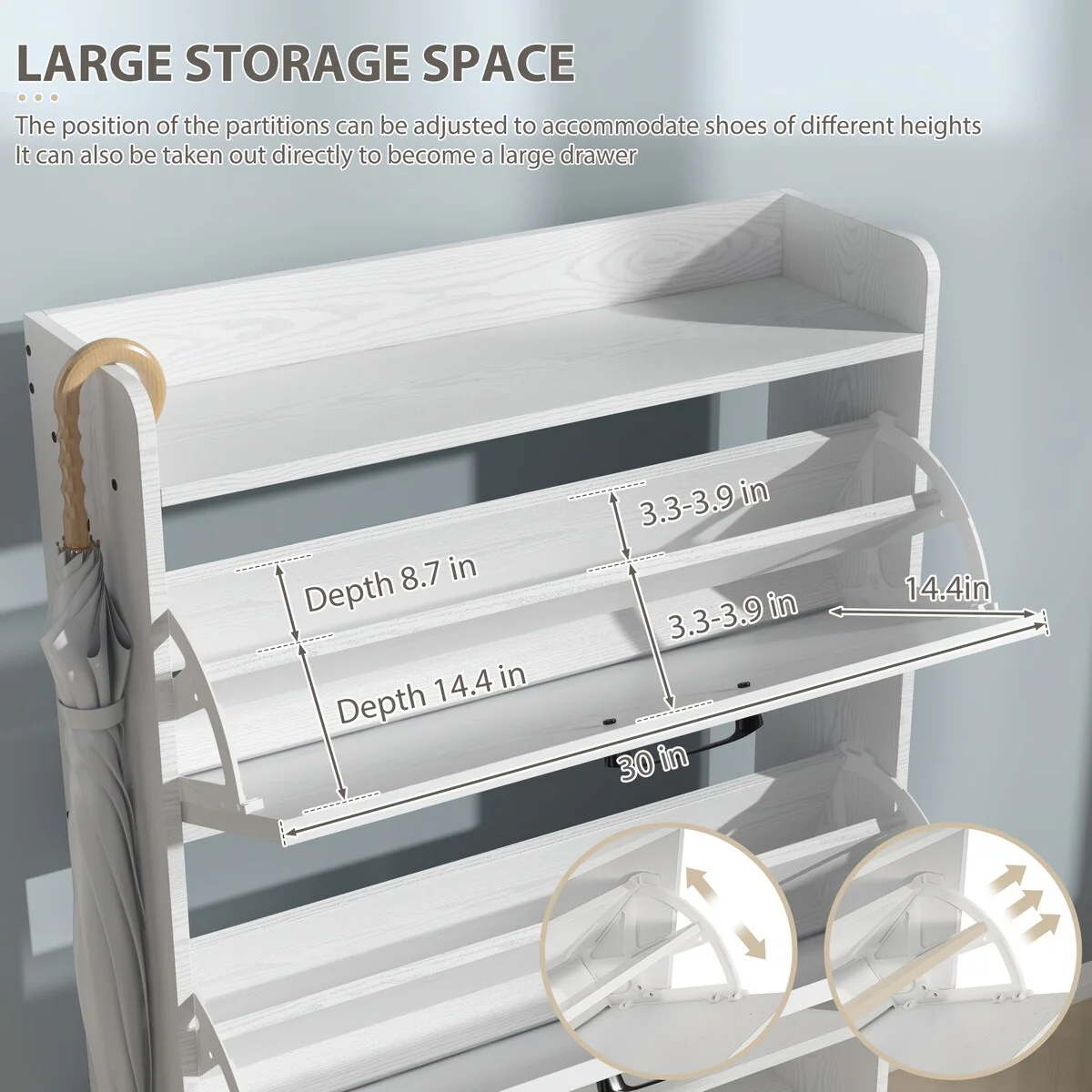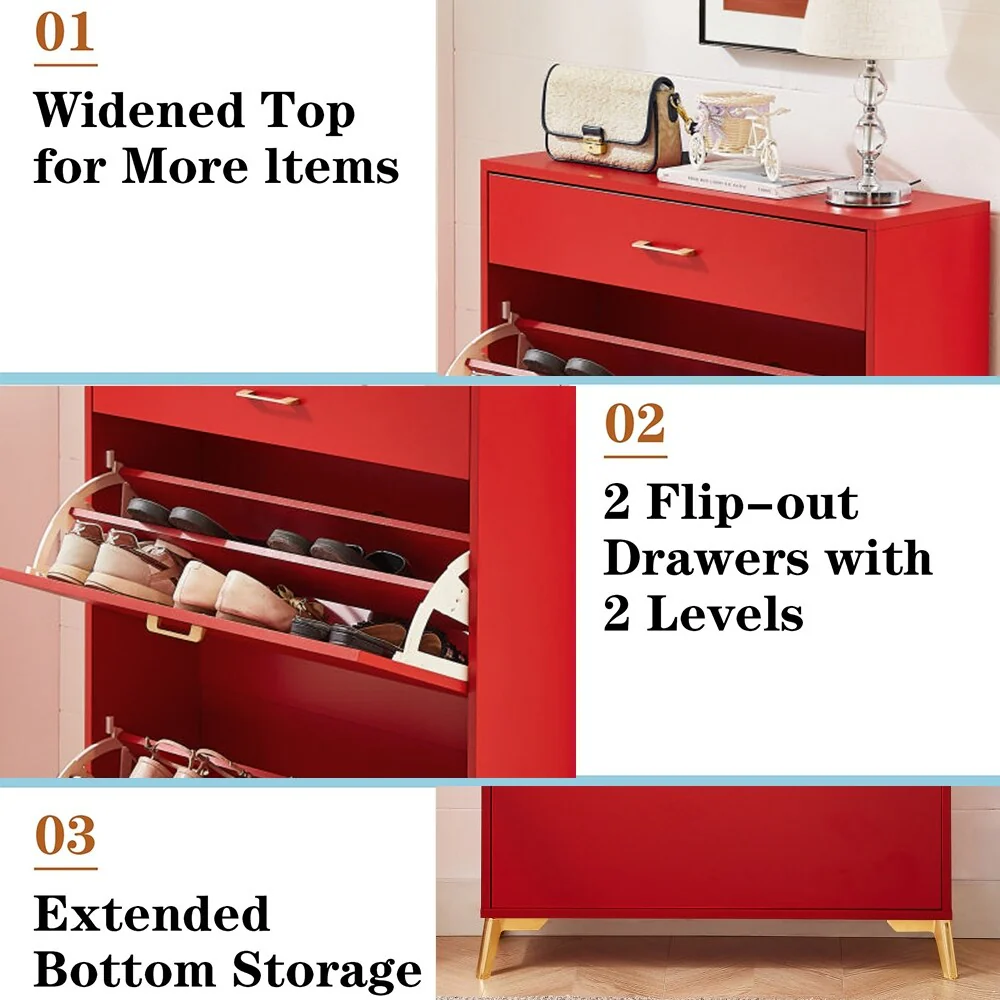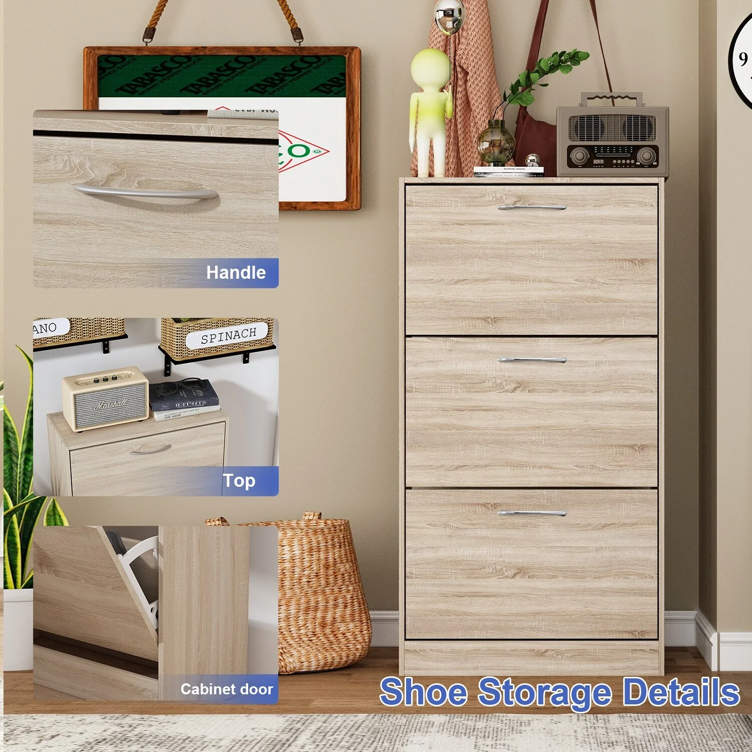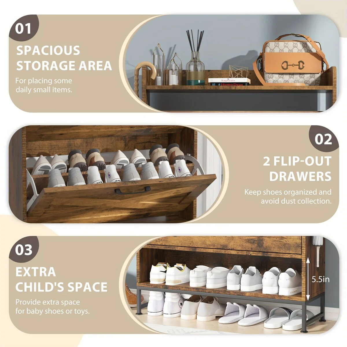 Fluted Shoe Cabinet for Entryway, Slim Shoe Storage Cabinet with 2 Flip Drawer and Solid Wood Legs Narrow Shoe Organizer