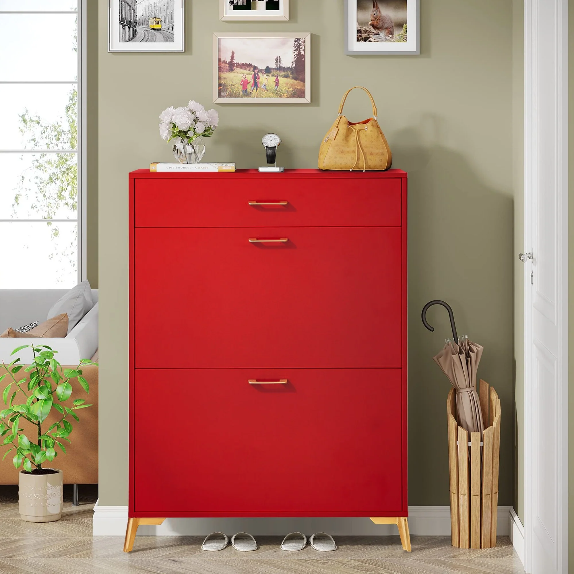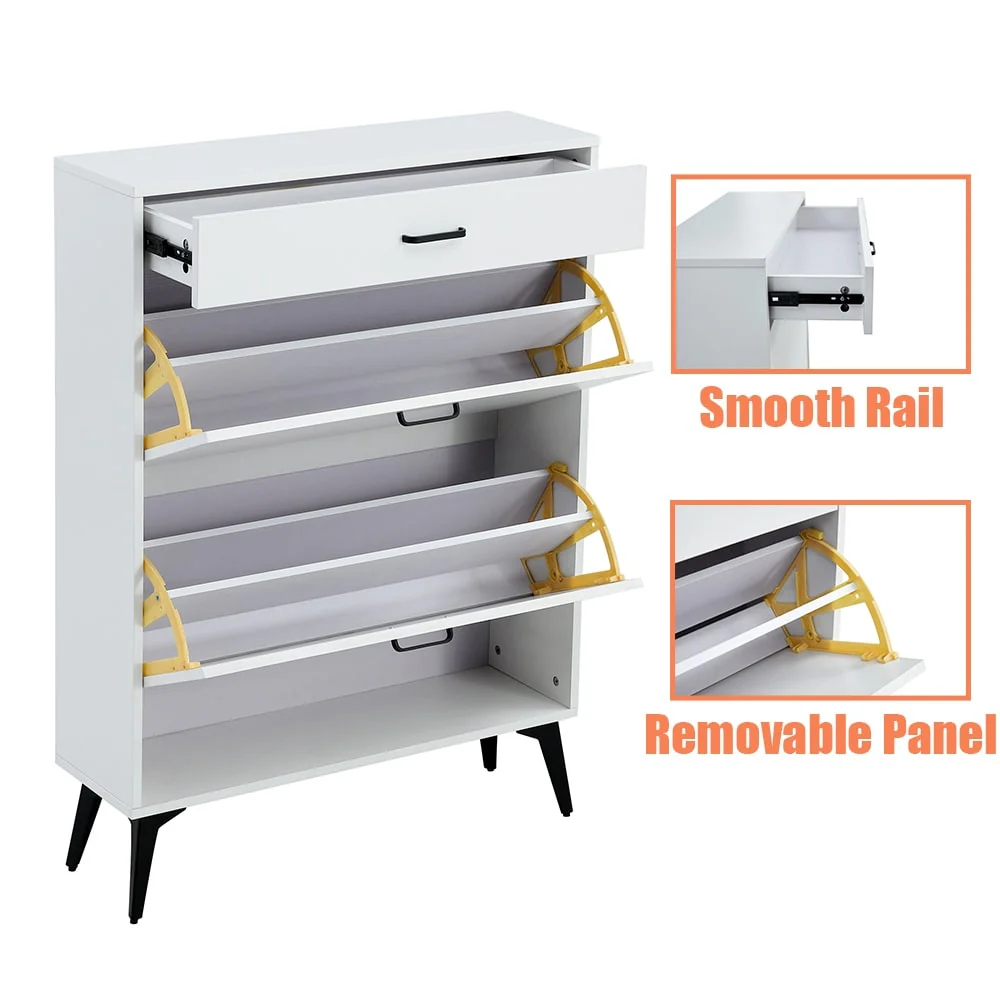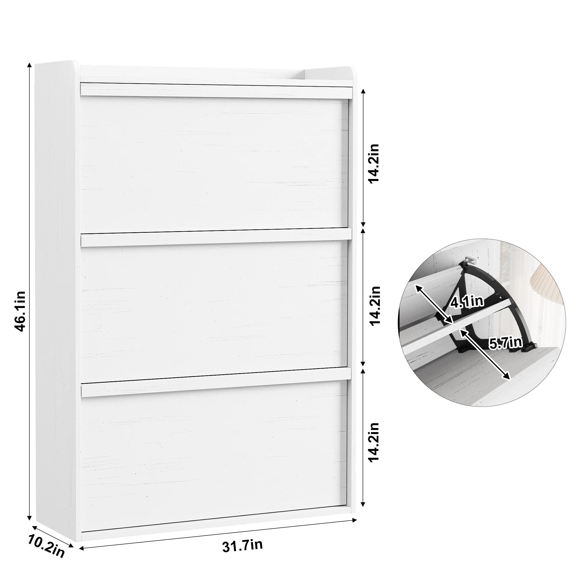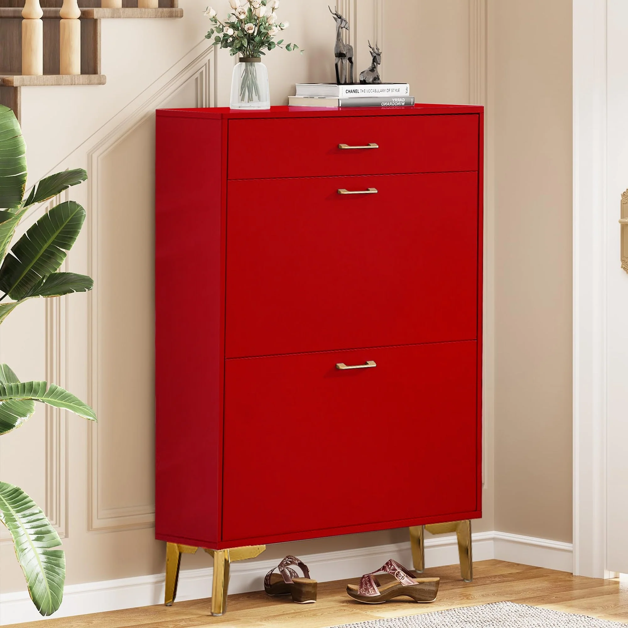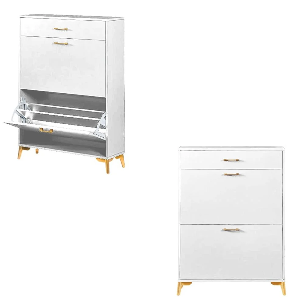 Fluted Shoe Cabinet for Entryway, Slim Shoe Storage Cabinet with 2 Flip Drawer and Solid Wood Legs Narrow Shoe Organizer