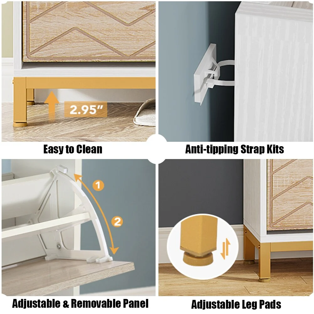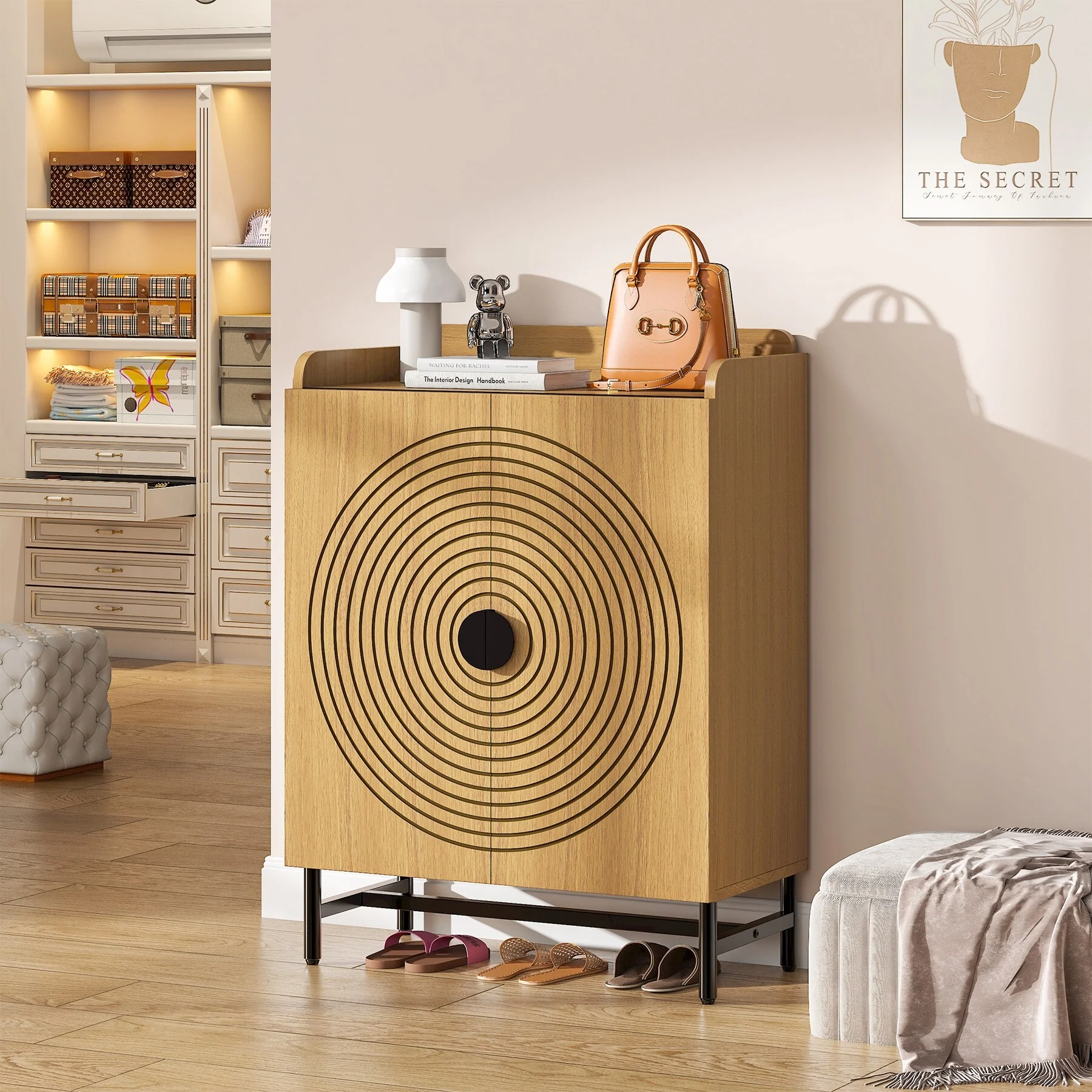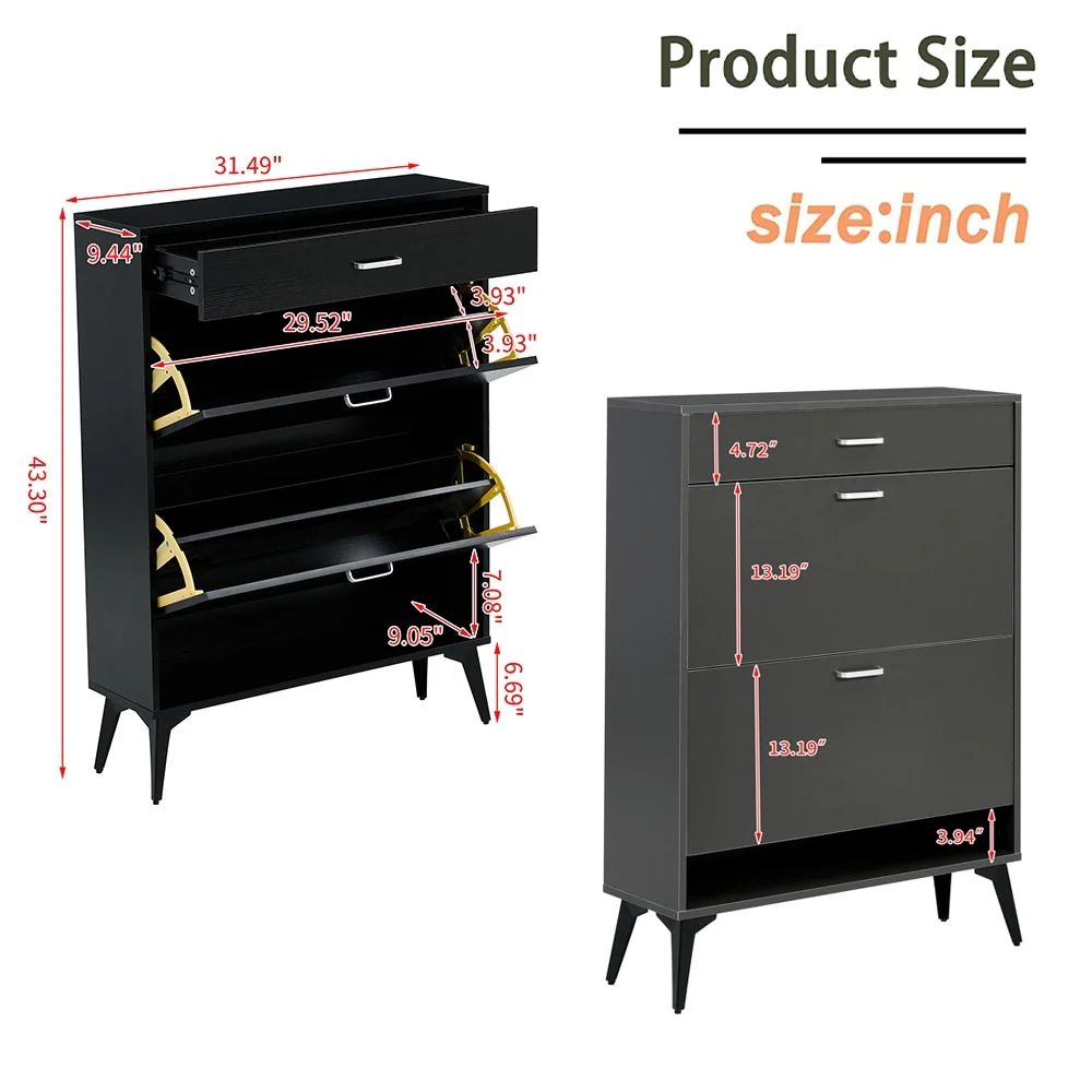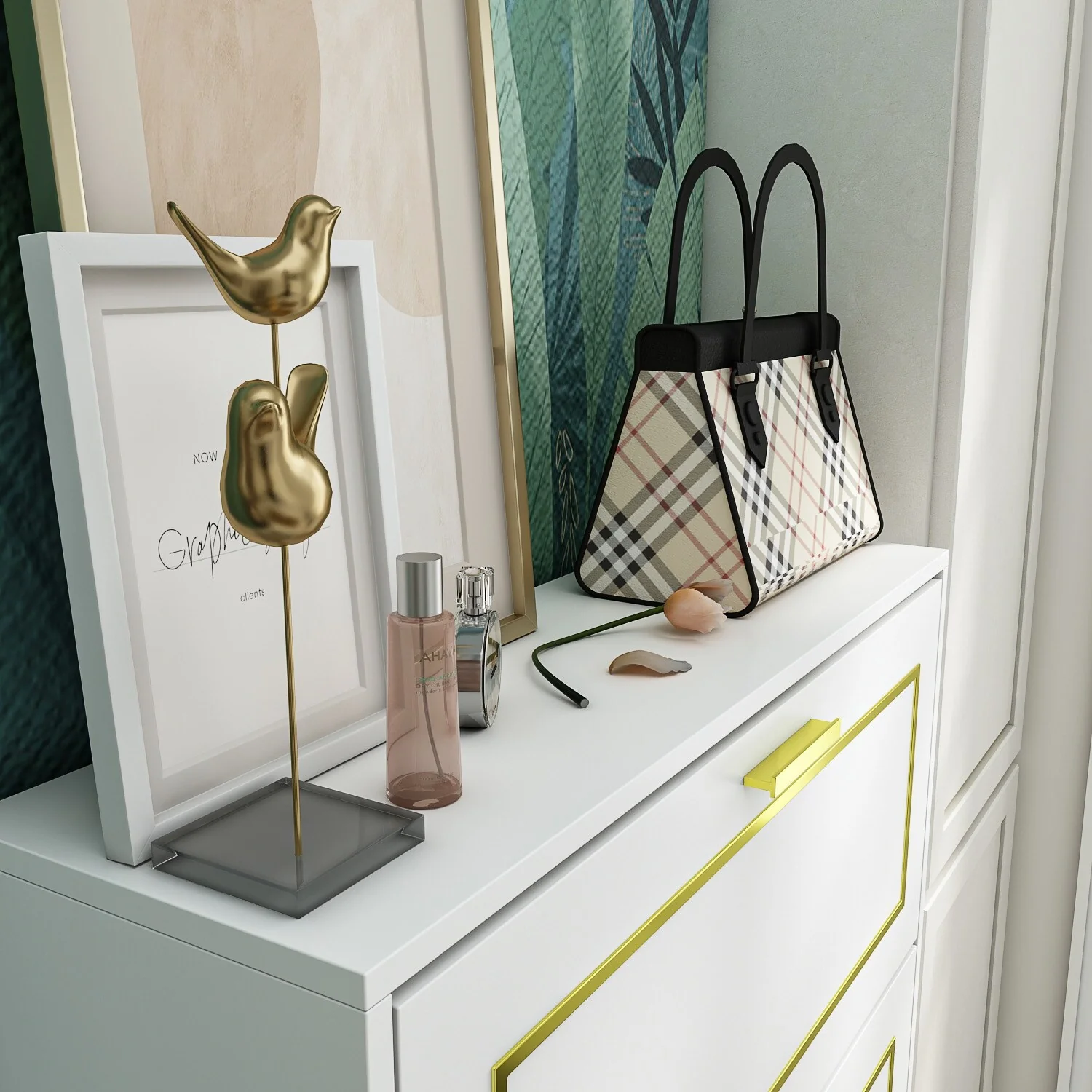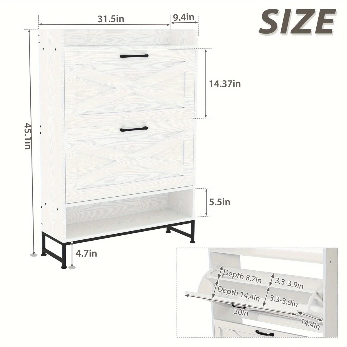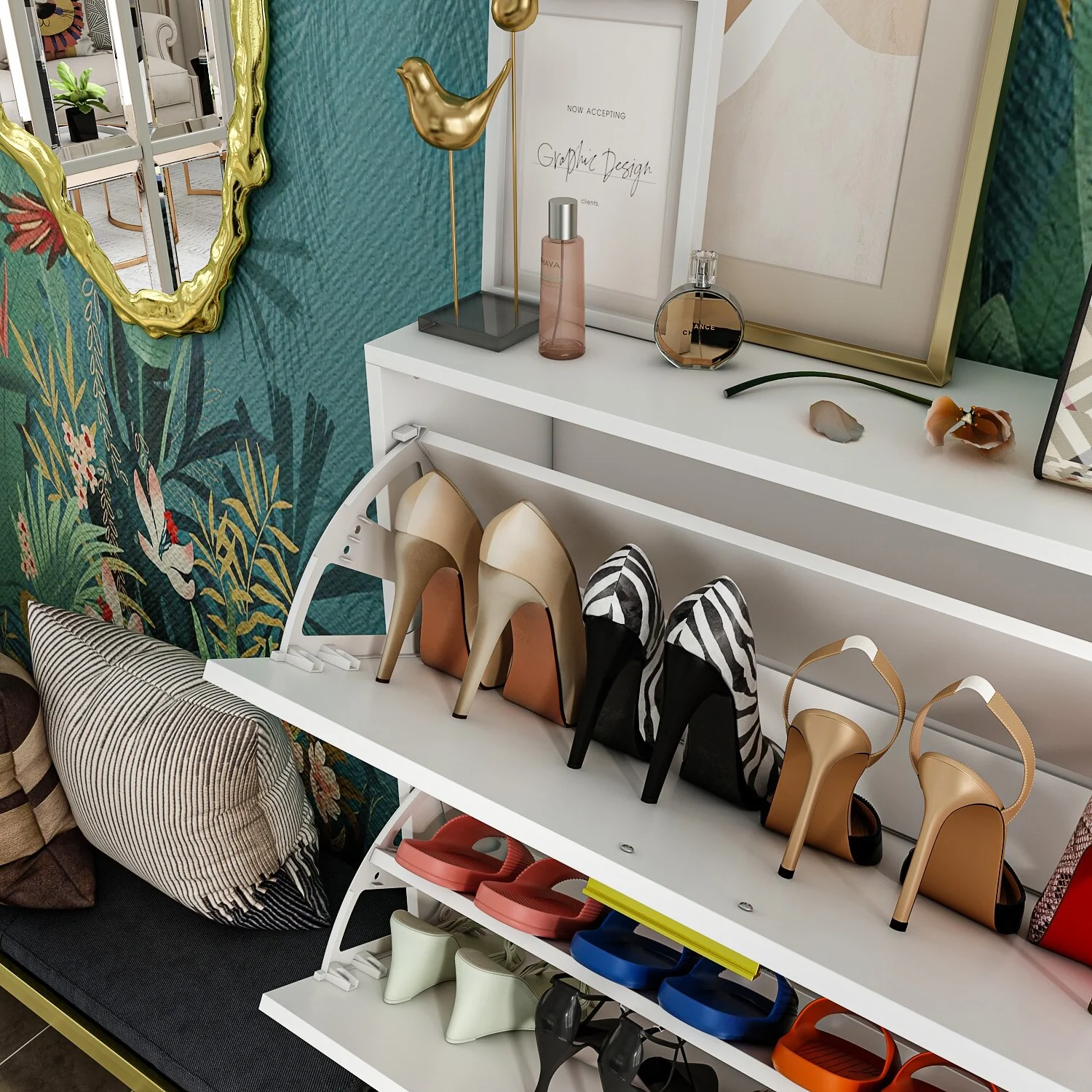 Fluted Shoe Cabinet for Entryway, Slim Shoe Storage Cabinet with 2 Flip Drawer and Solid Wood Legs Narrow Shoe Organizer