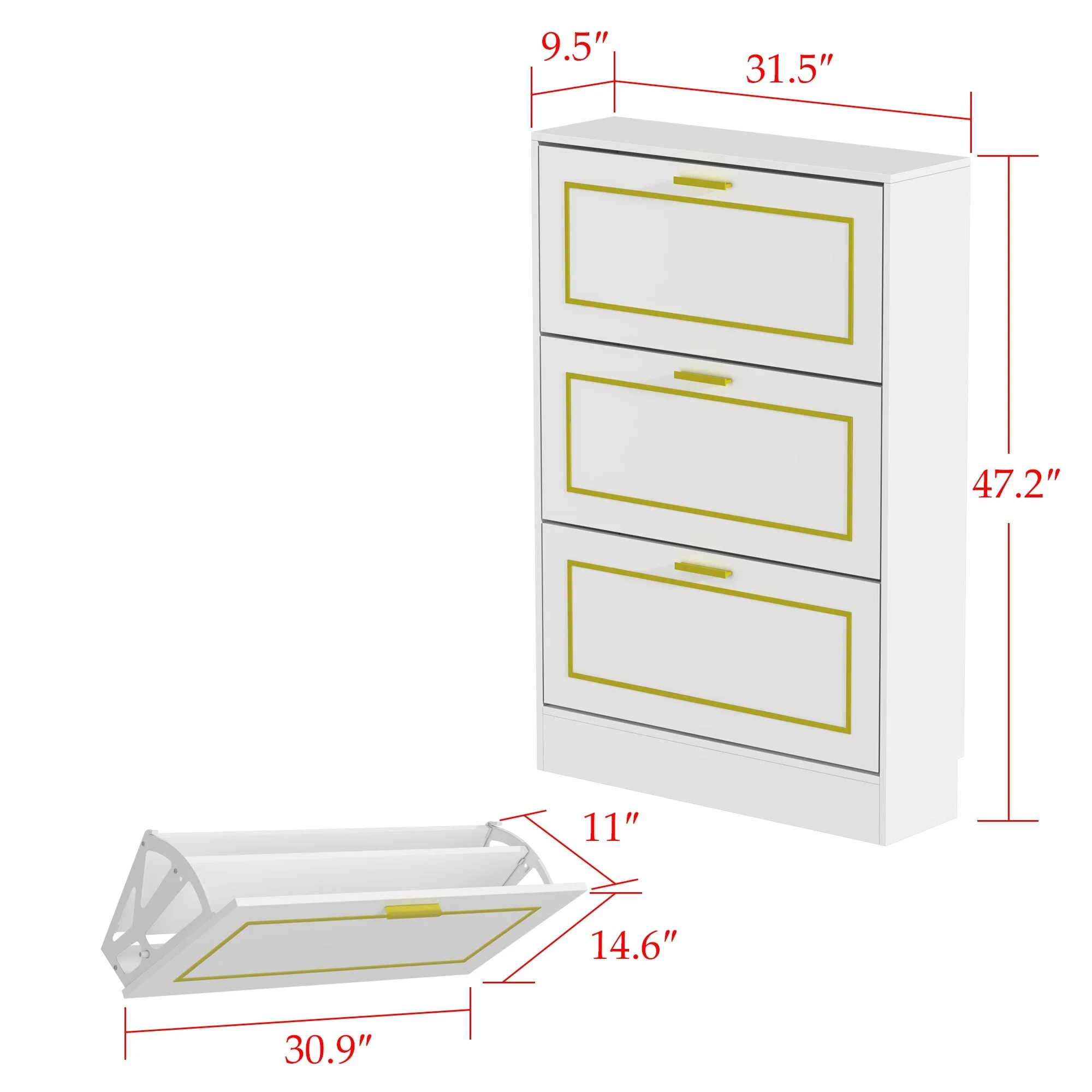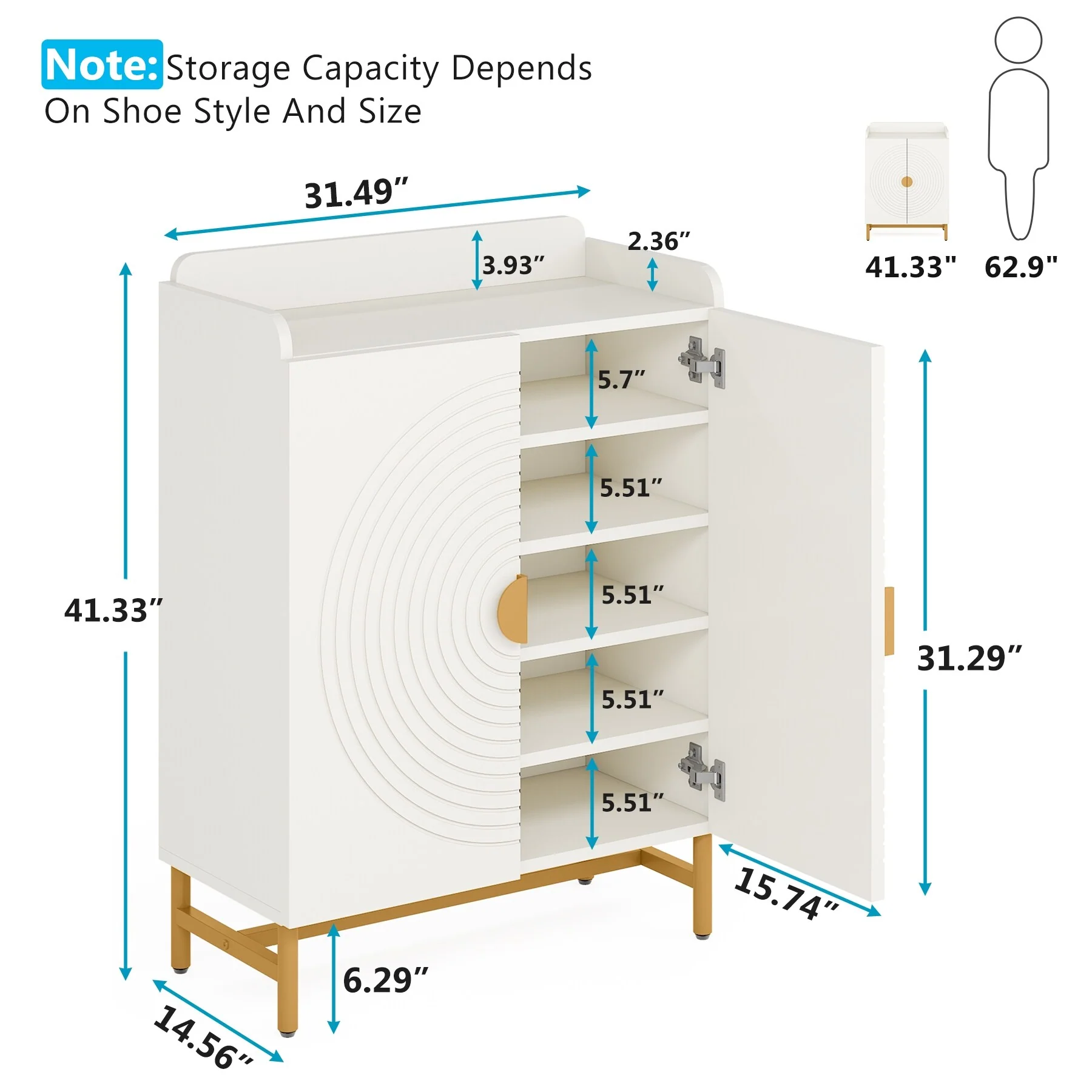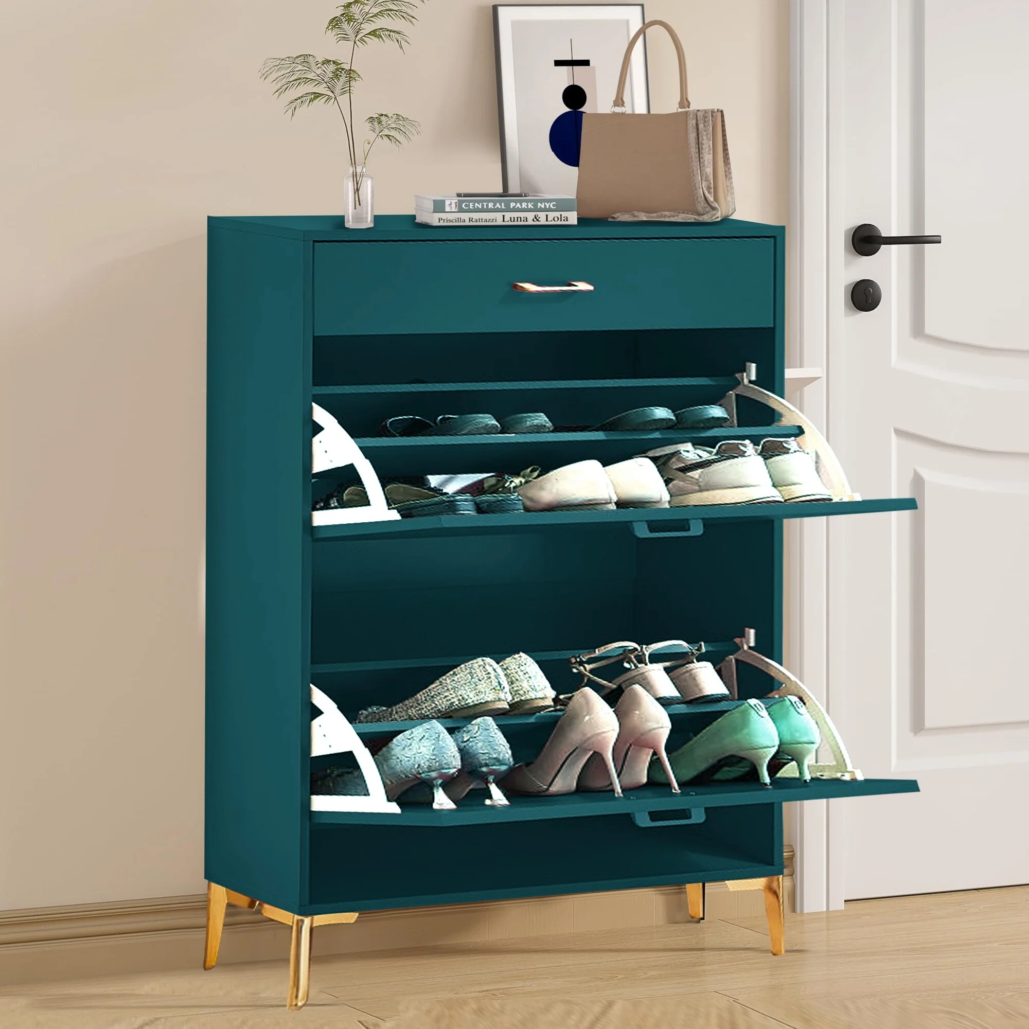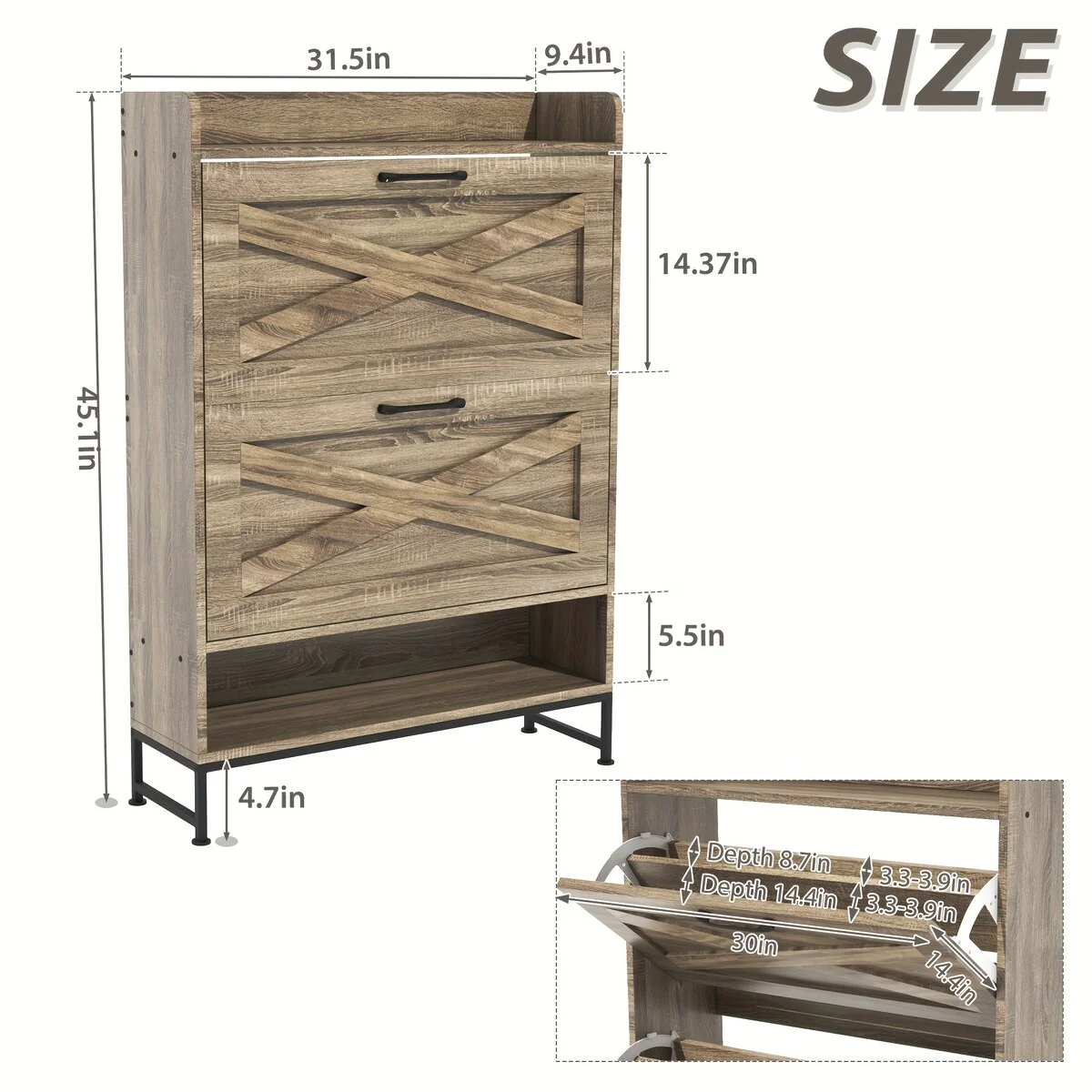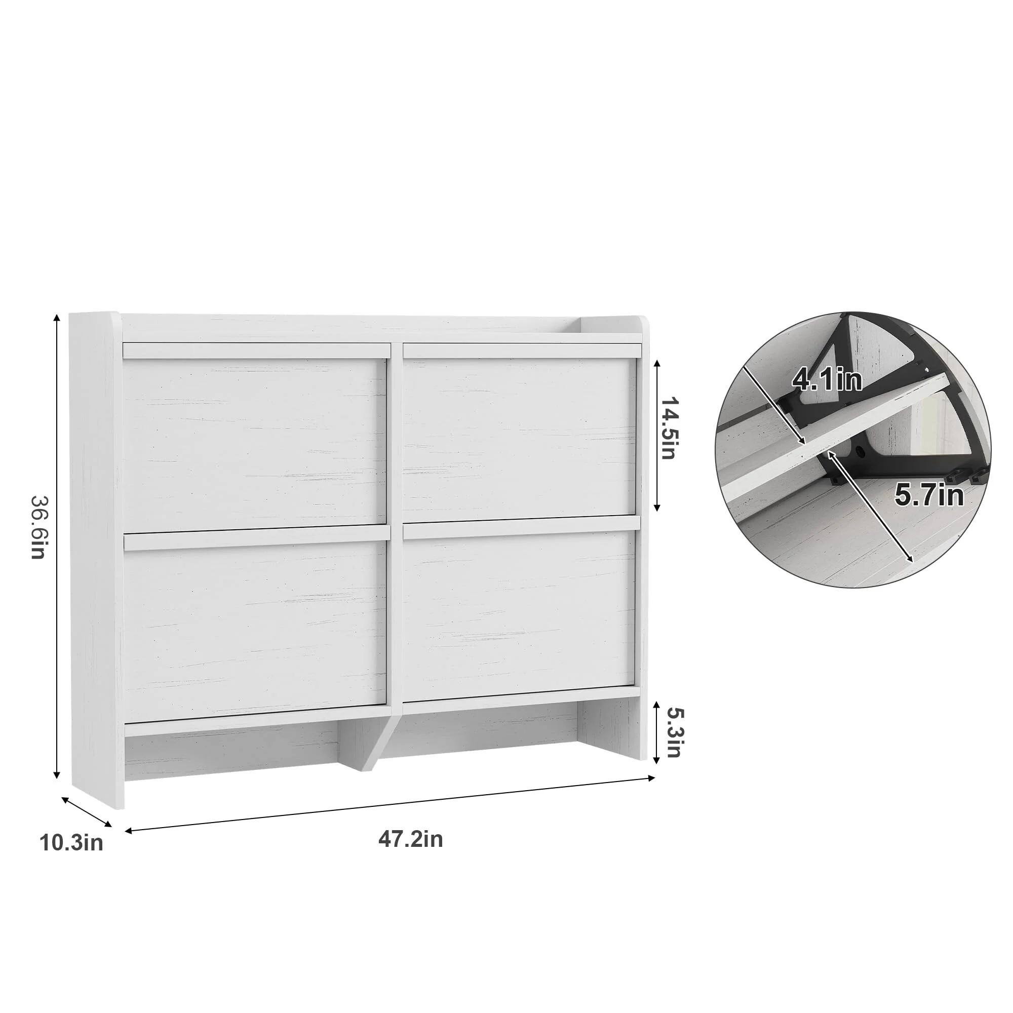 Fluted Shoe Cabinet for Entryway, Slim Shoe Storage Cabinet with 2 Flip Drawer and Solid Wood Legs Narrow Shoe Organizer