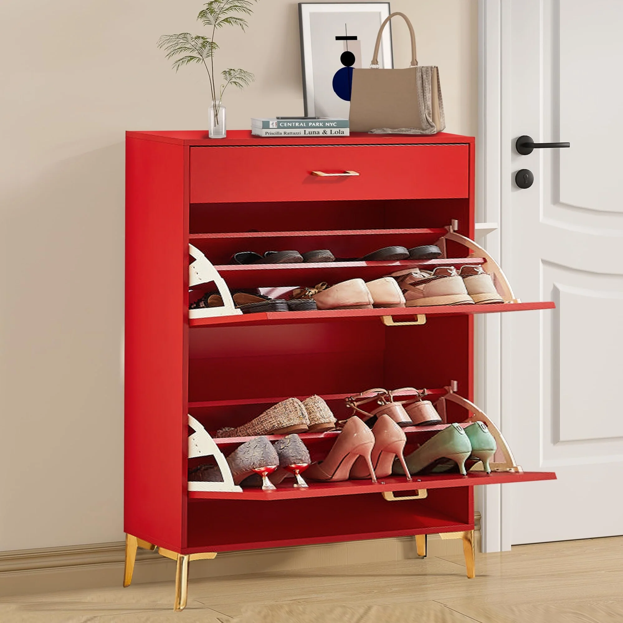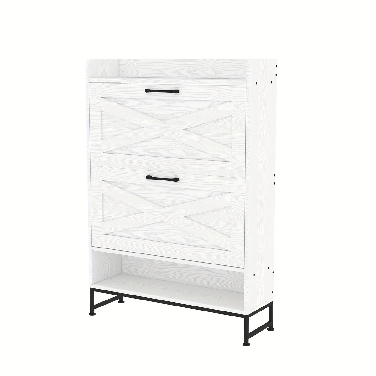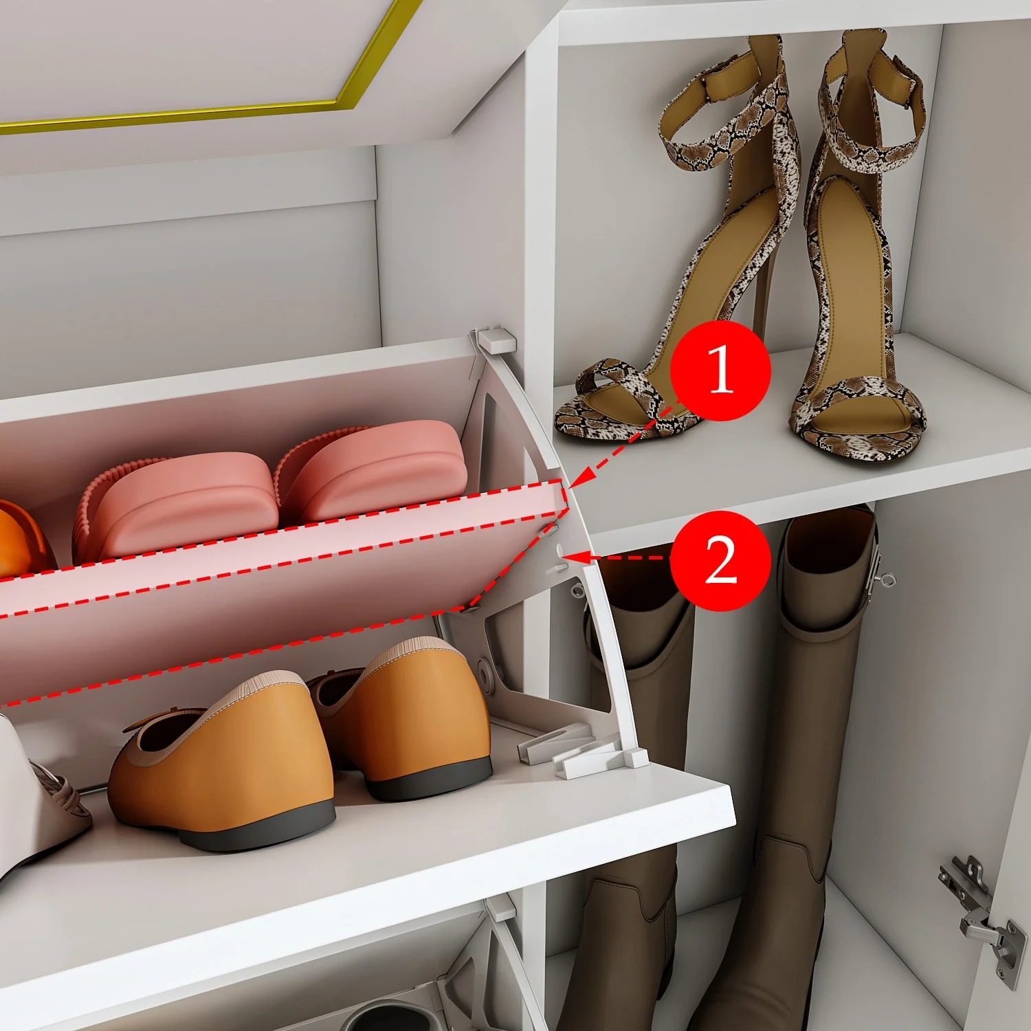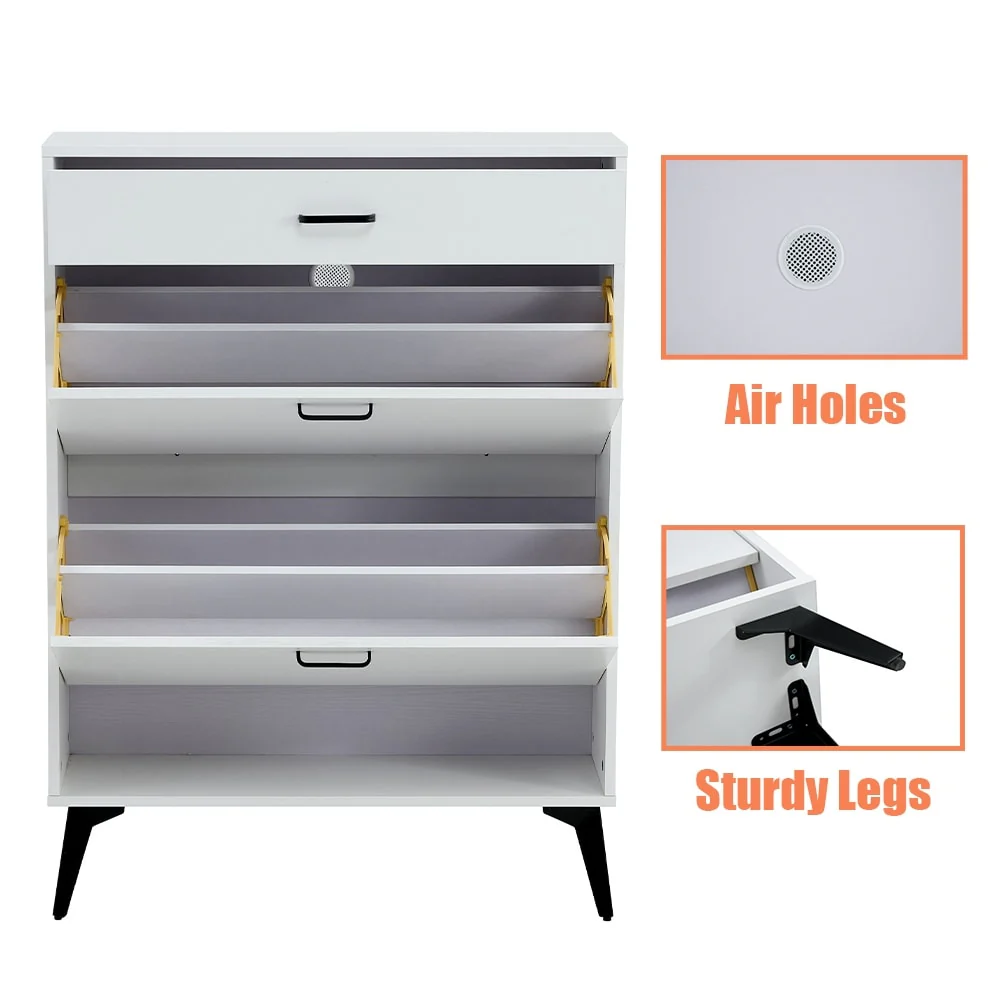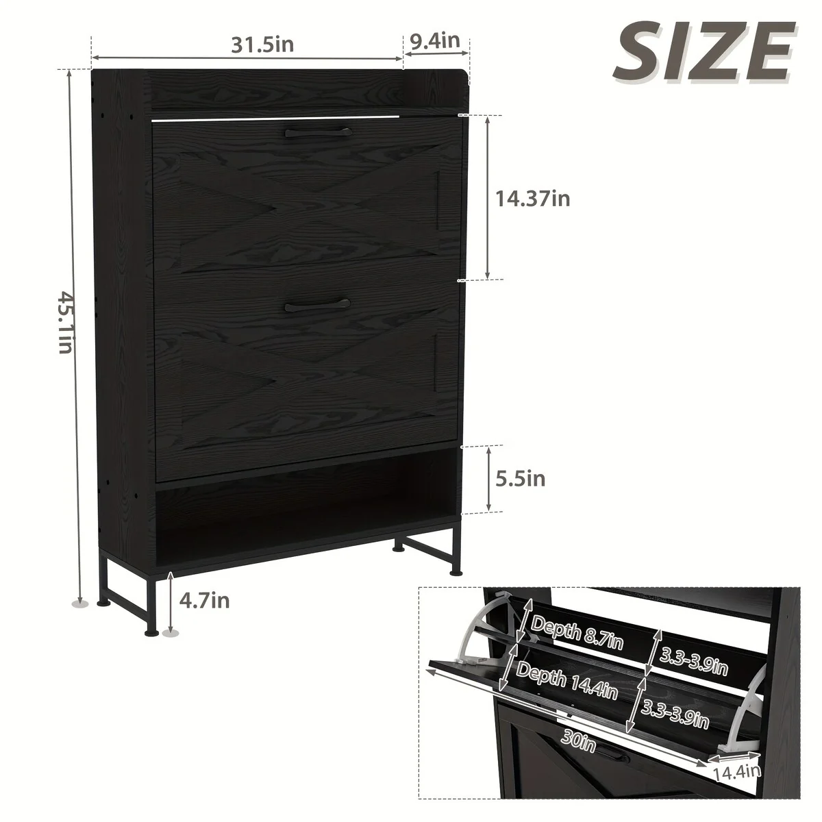 Fluted Shoe Cabinet for Entryway, Slim Shoe Storage Cabinet with 2 Flip Drawer and Solid Wood Legs Narrow Shoe Organizer