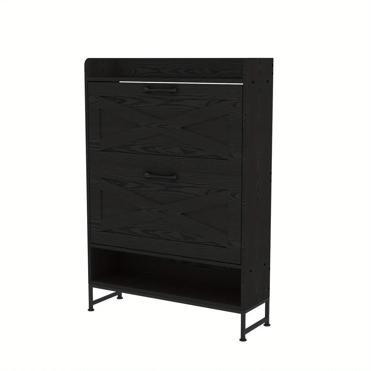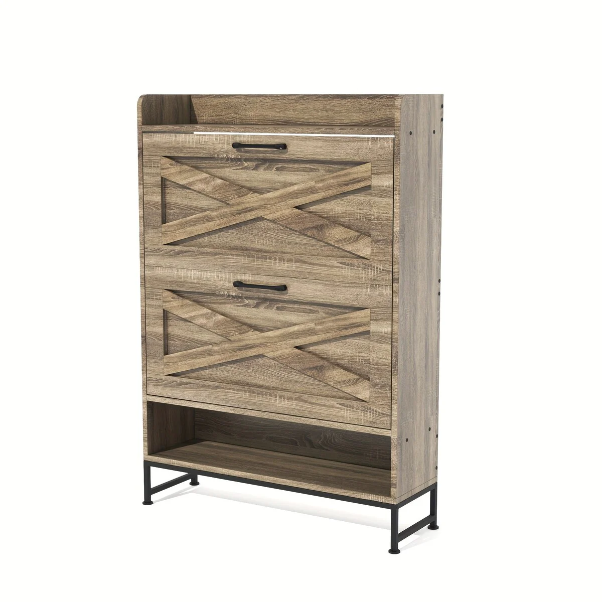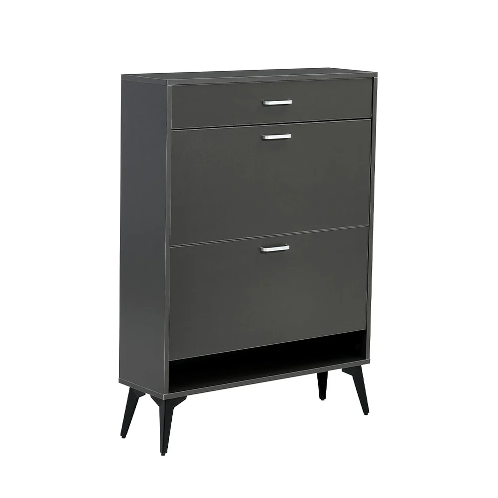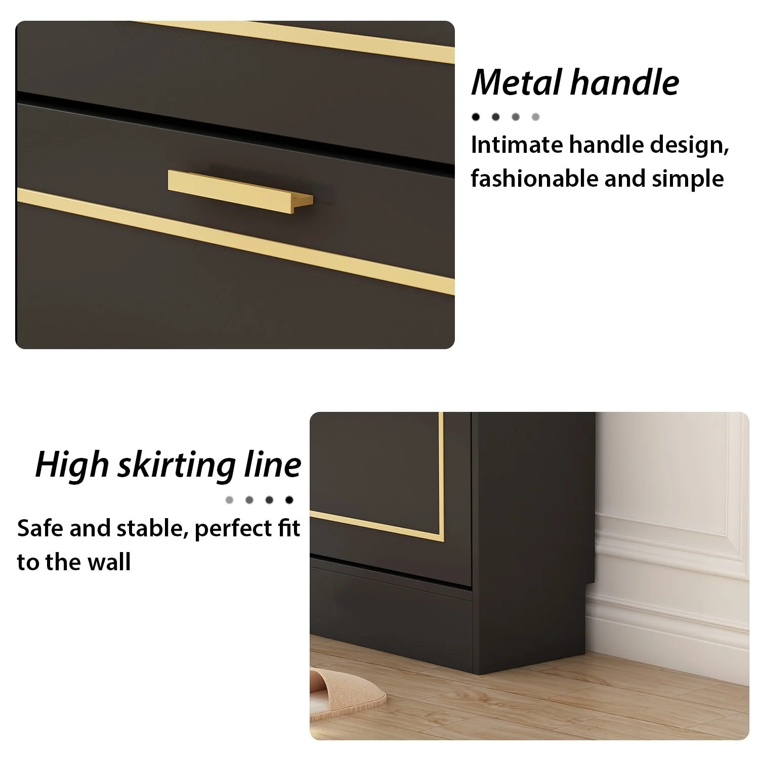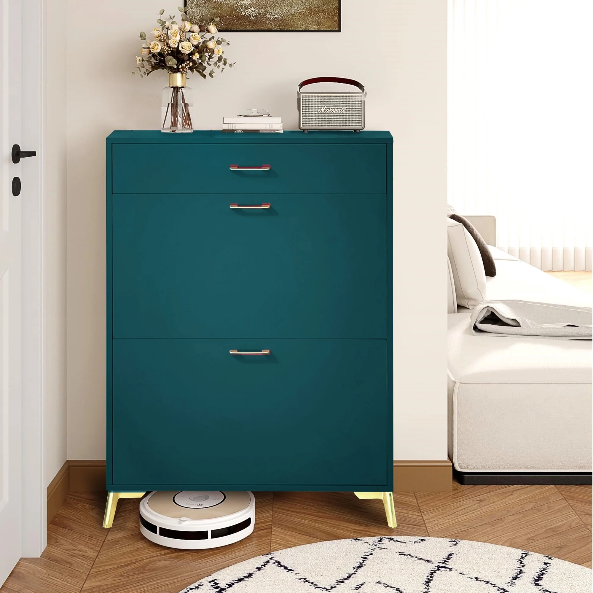 Fluted Shoe Cabinet for Entryway, Slim Shoe Storage Cabinet with 2 Flip Drawer and Solid Wood Legs Narrow Shoe Organizer