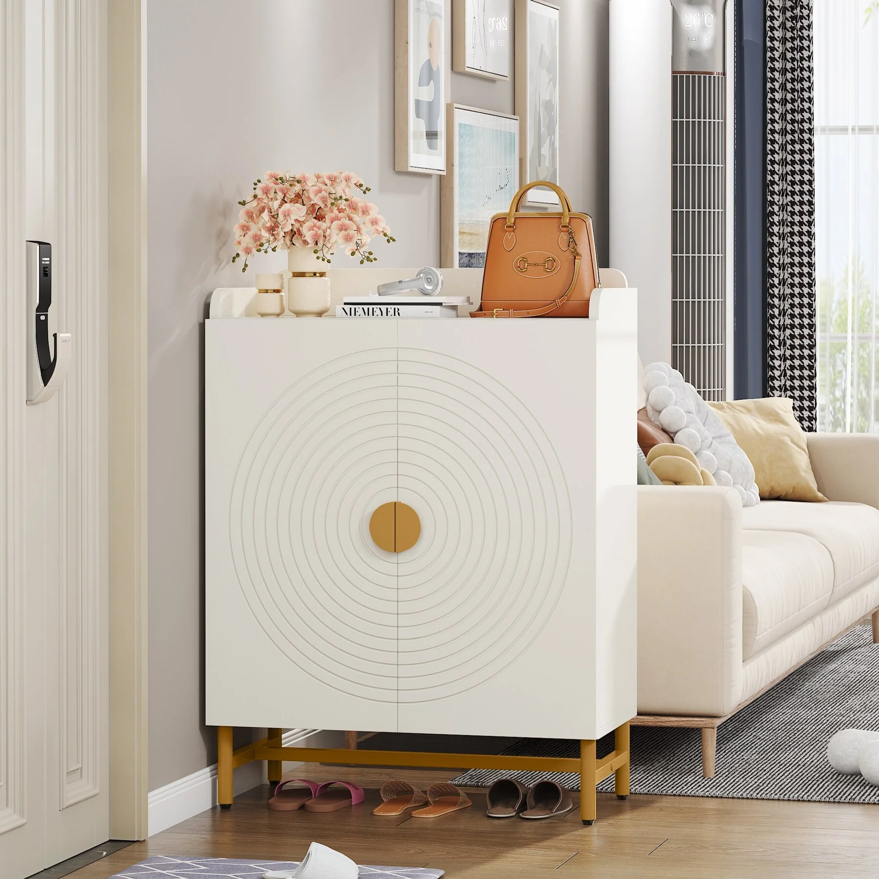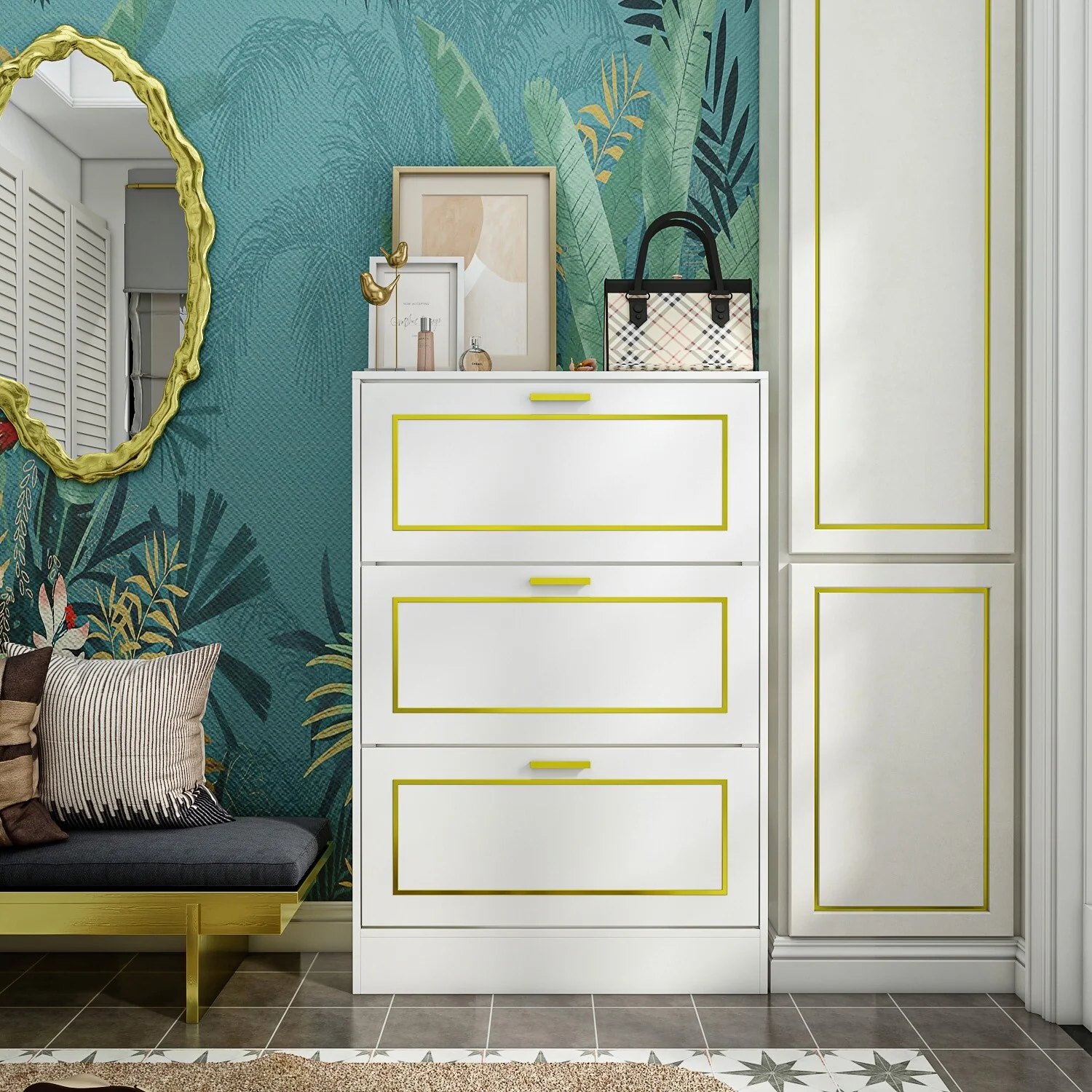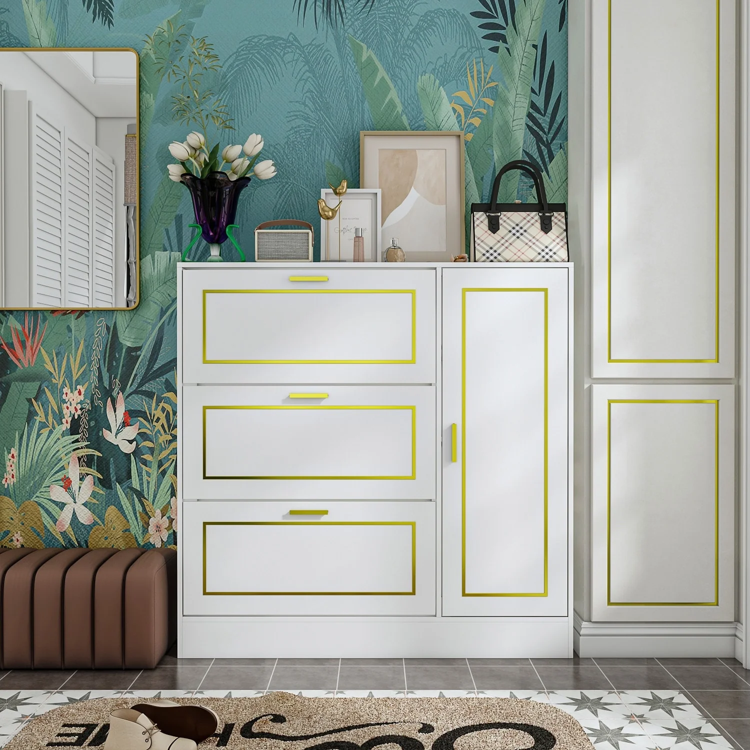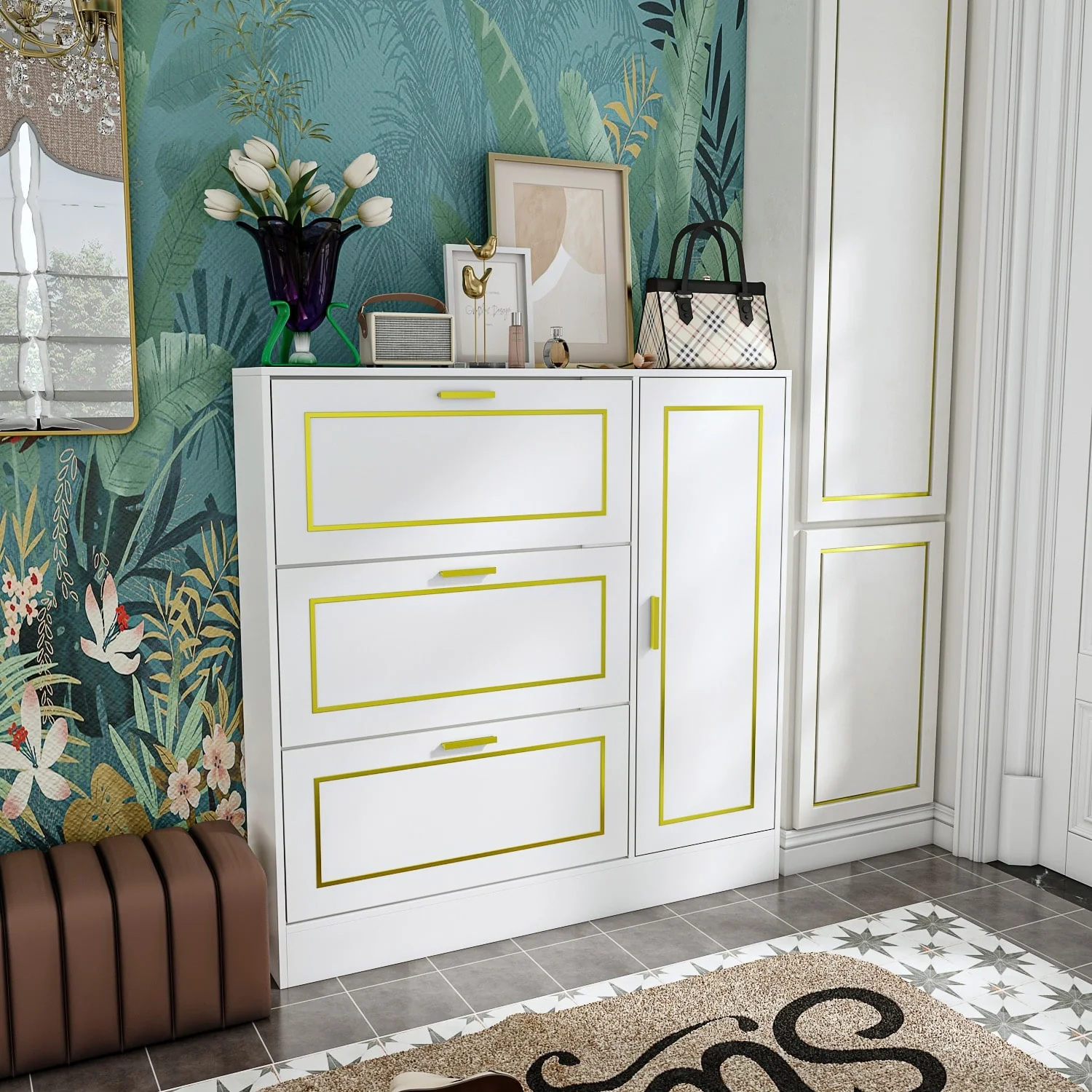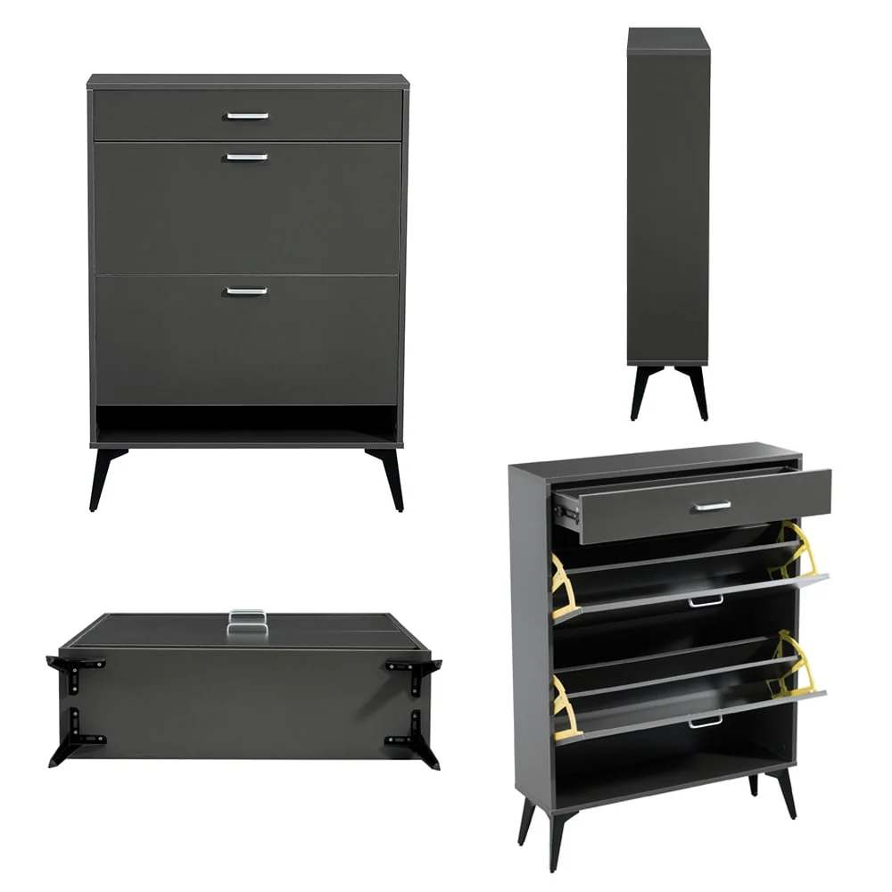 Fluted Shoe Cabinet for Entryway, Slim Shoe Storage Cabinet with 2 Flip Drawer and Solid Wood Legs Narrow Shoe Organizer