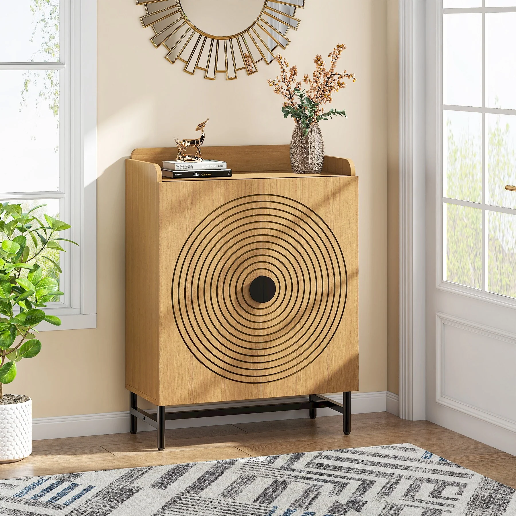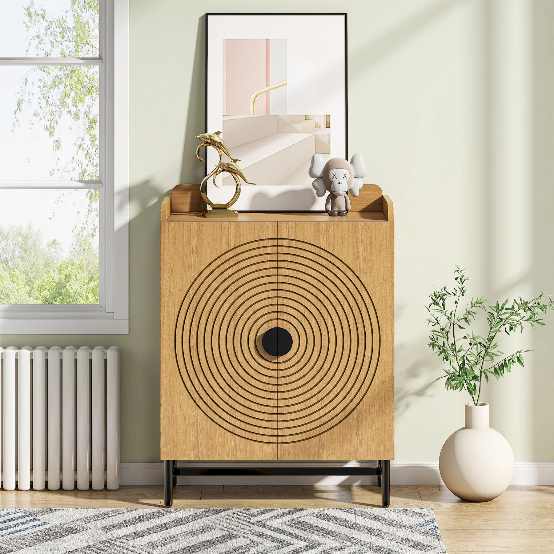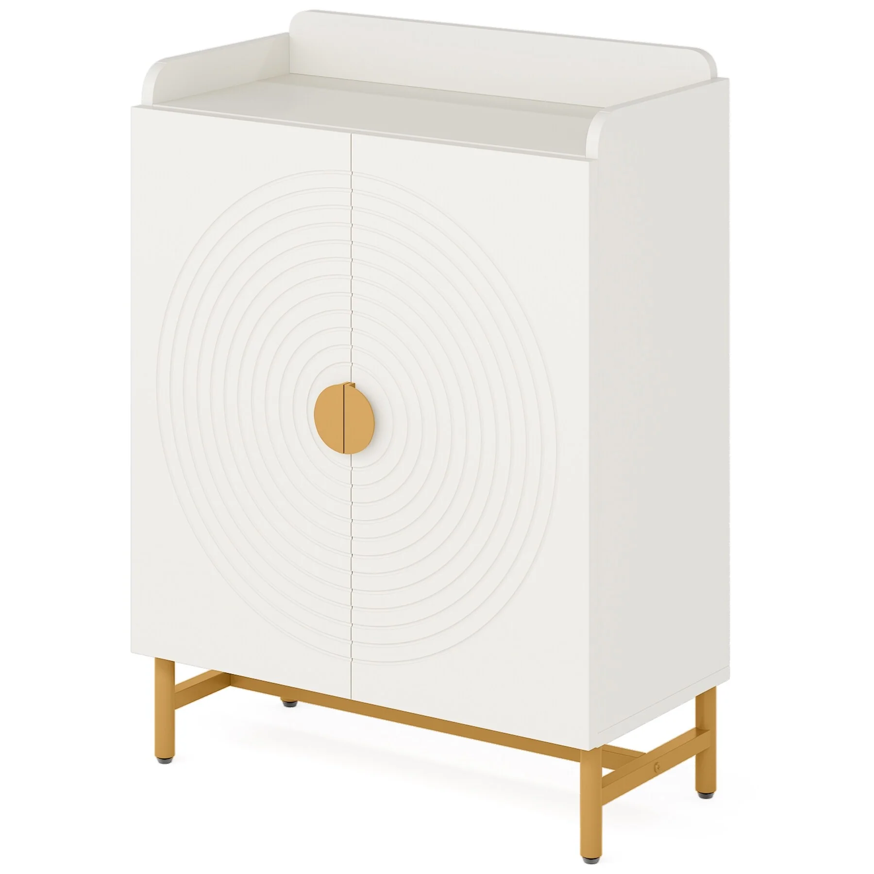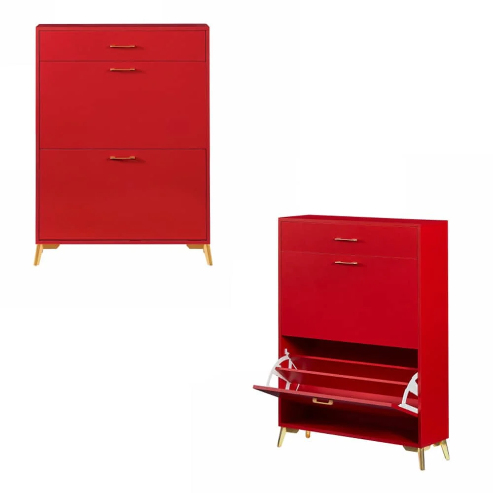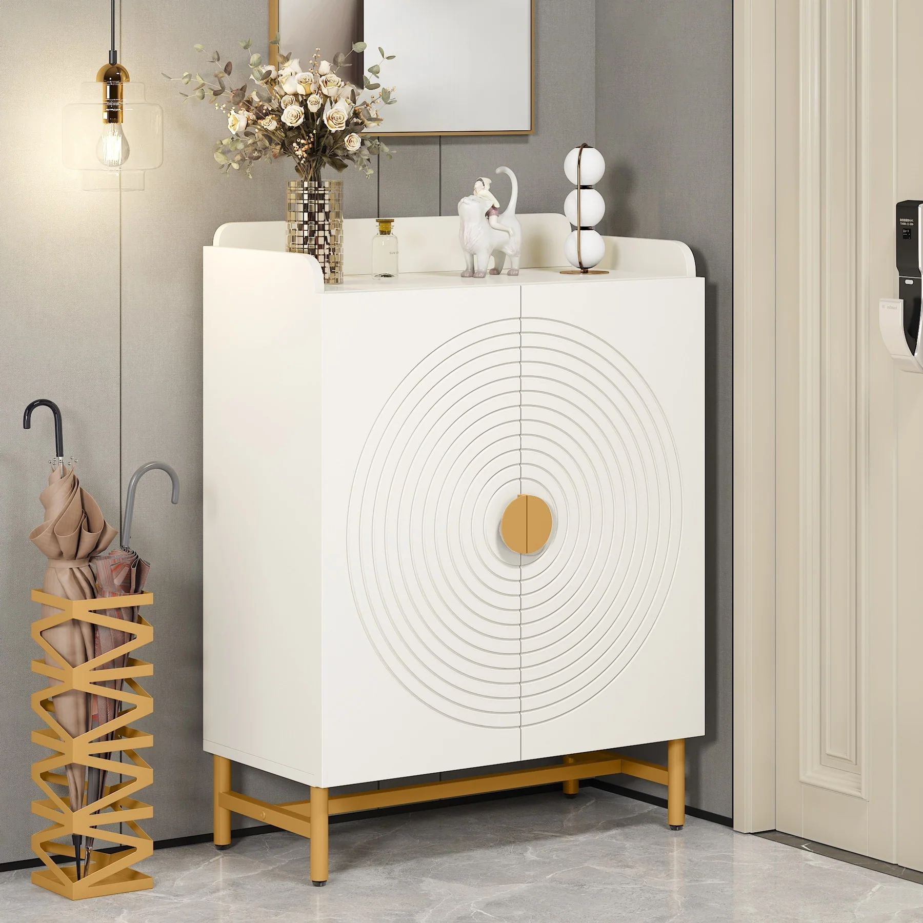 Fluted Shoe Cabinet for Entryway, Slim Shoe Storage Cabinet with 2 Flip Drawer and Solid Wood Legs Narrow Shoe Organizer