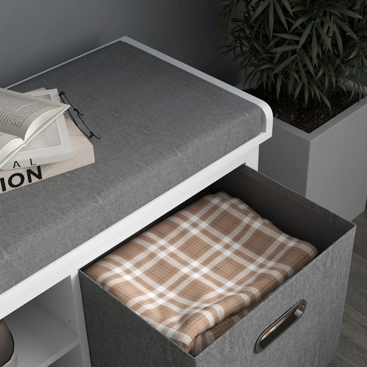 Rattan Shoe Entryway Bench with Linen Seat Cushion