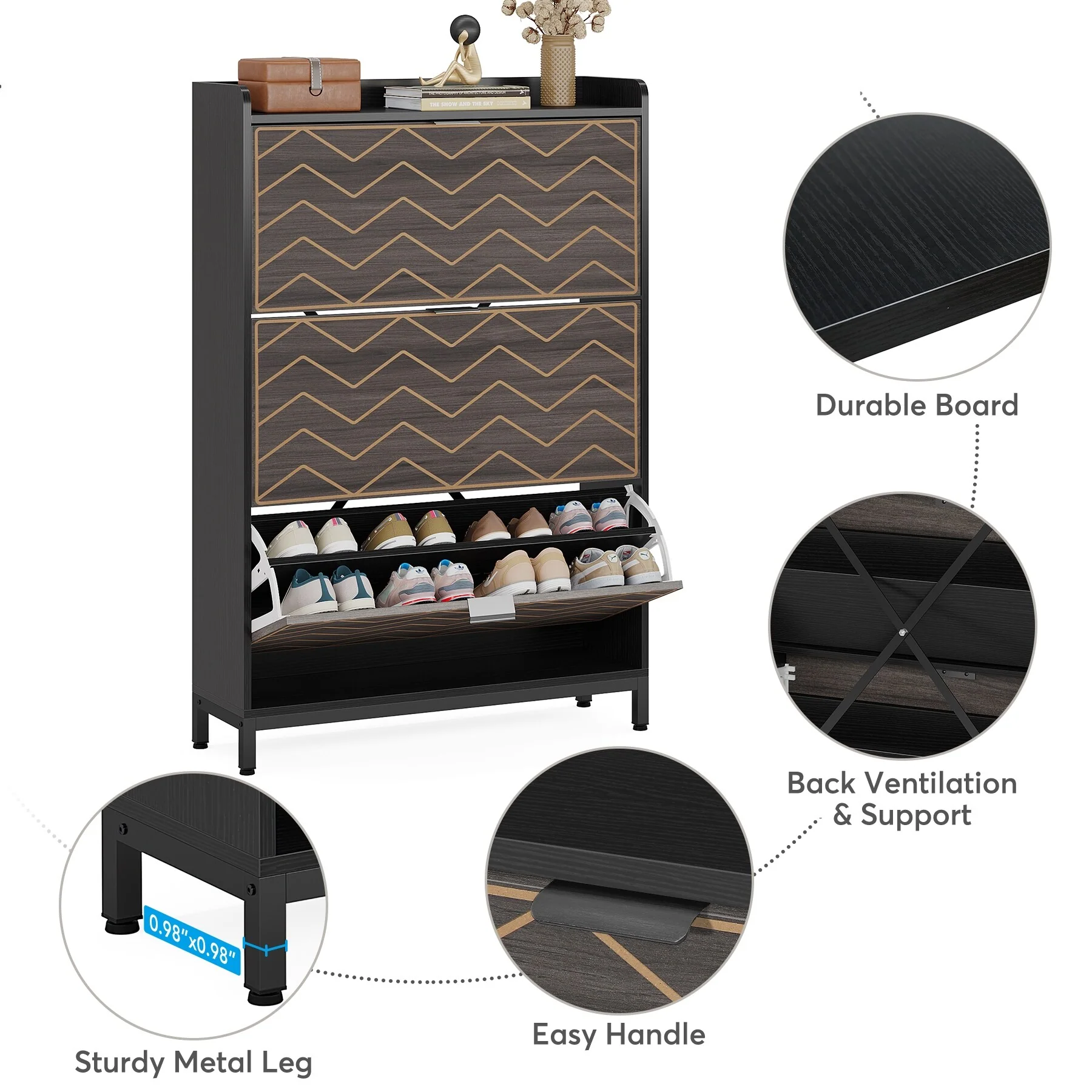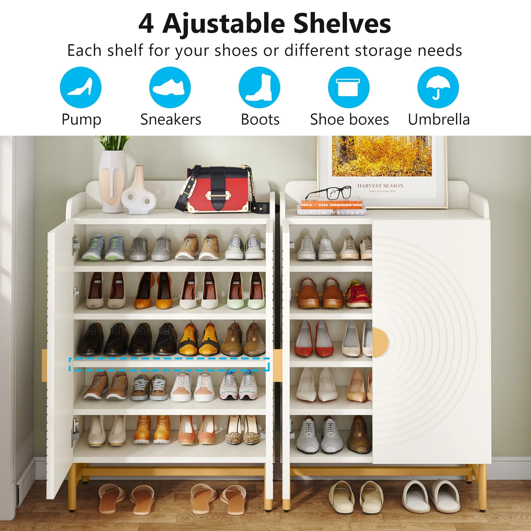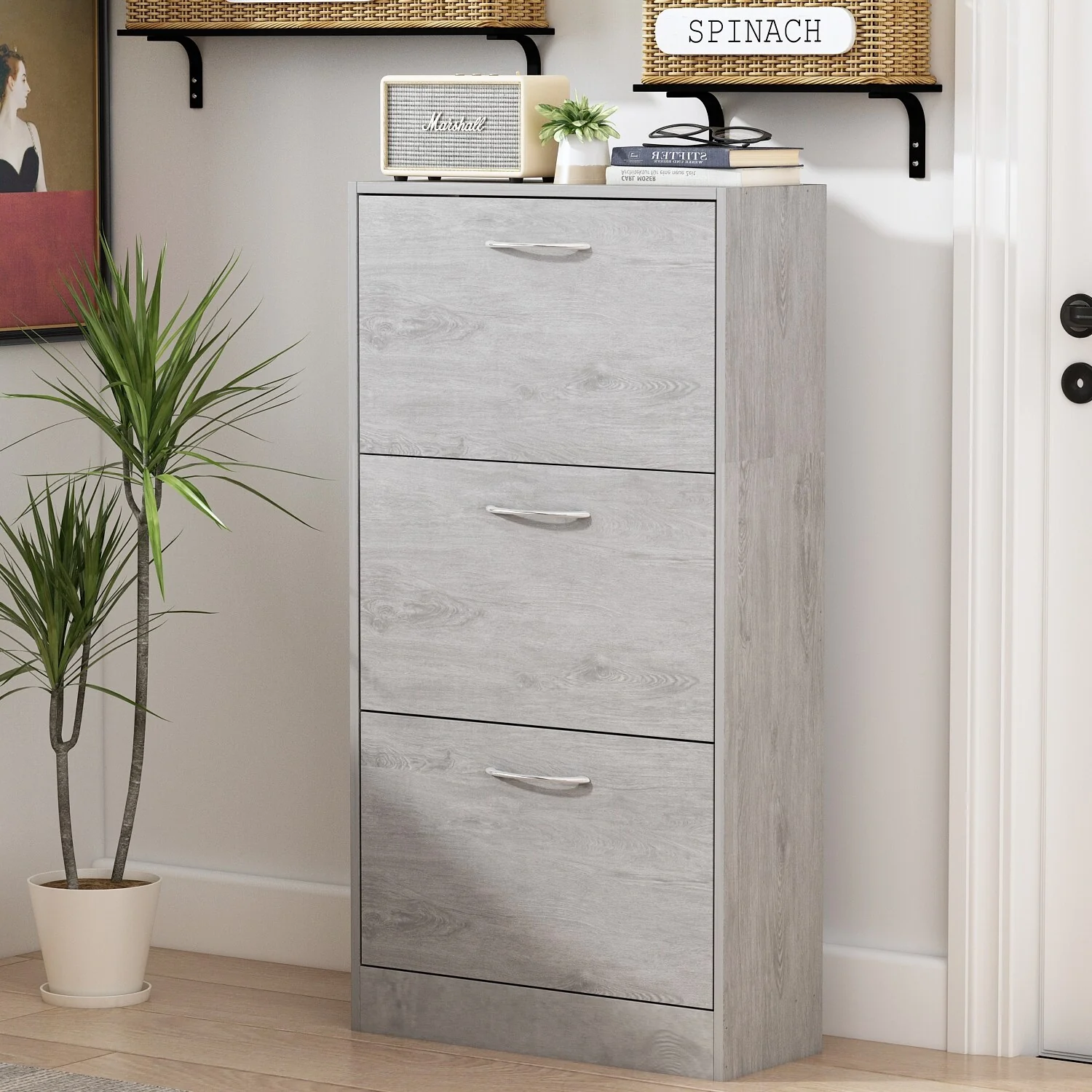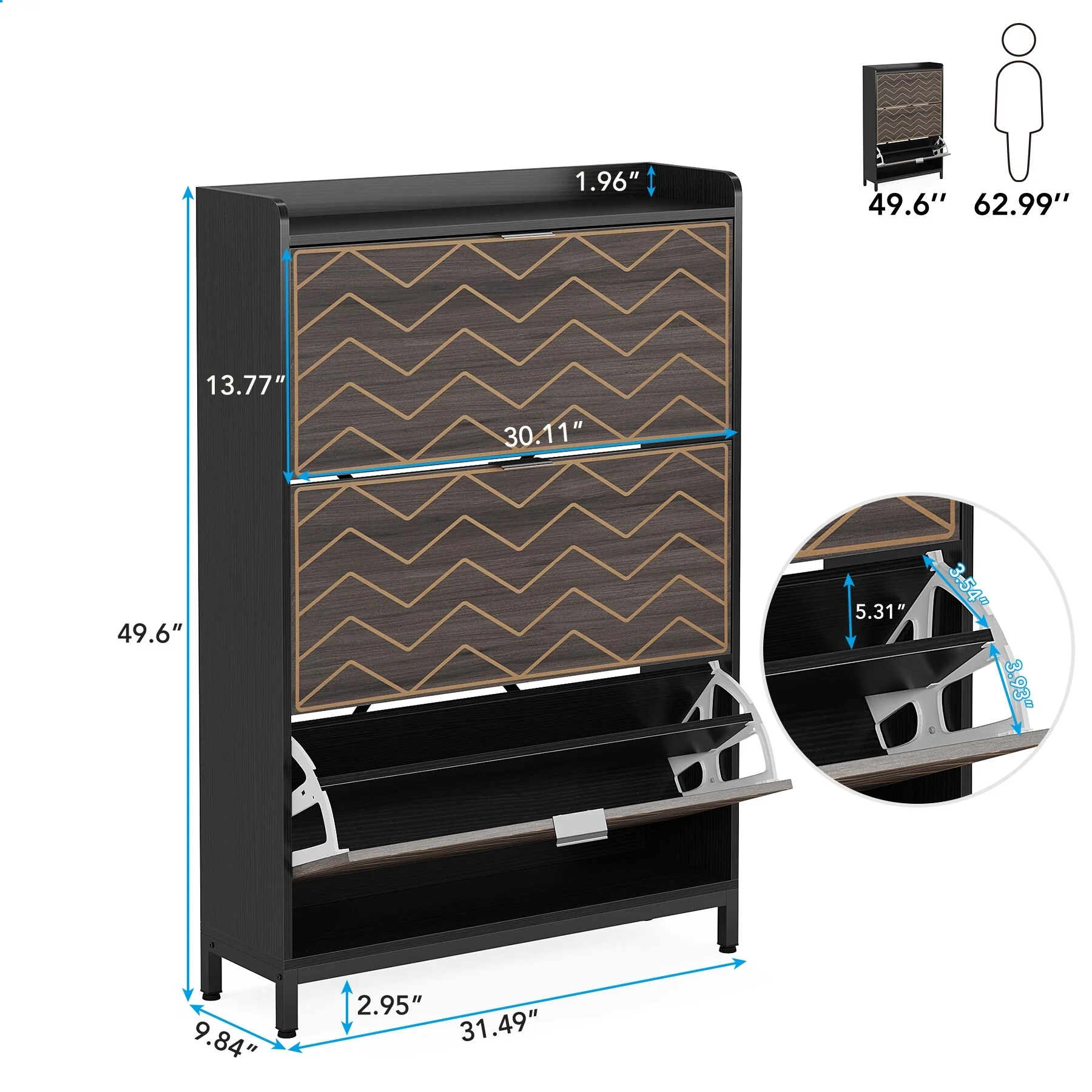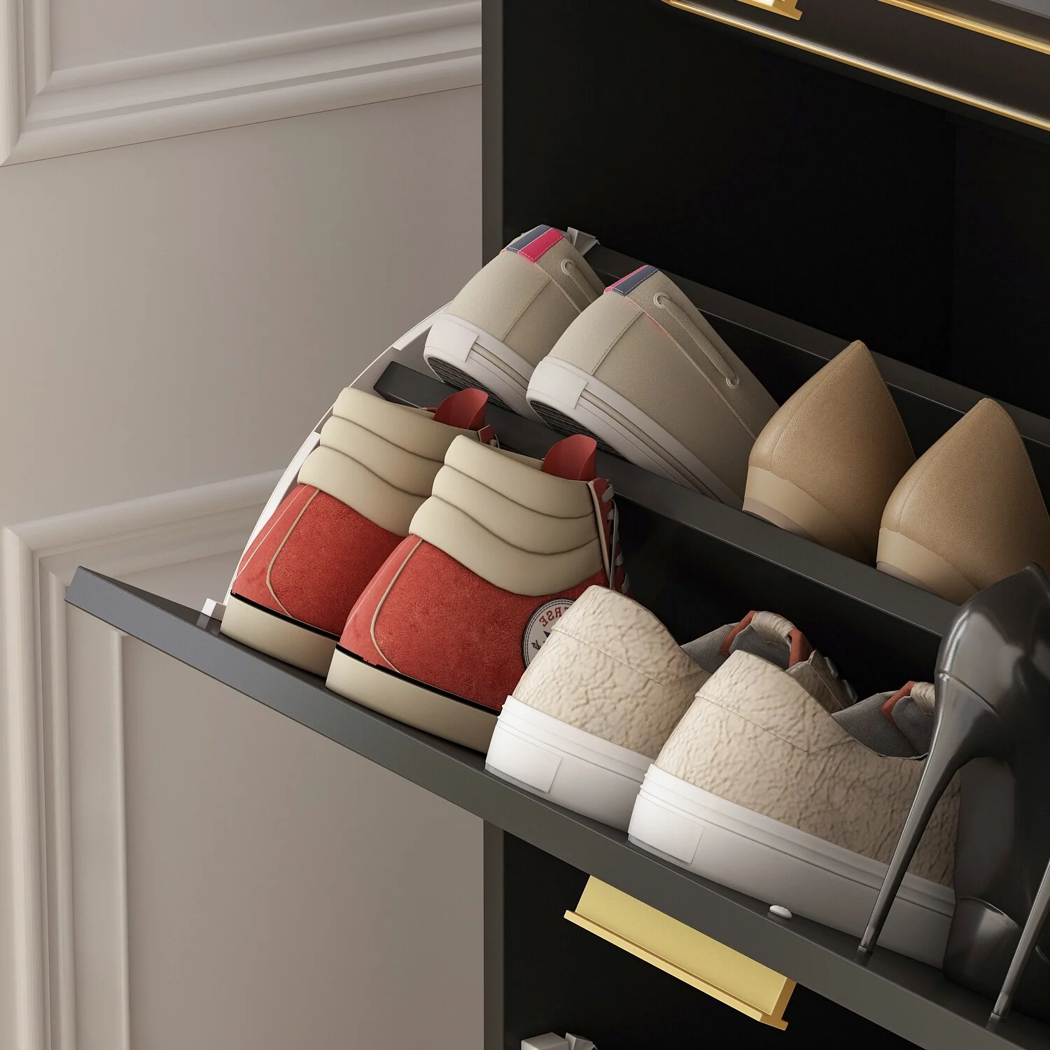 Slim Shoe Cabinet, Freestanding 24 Pair Shoe Rack Organizer