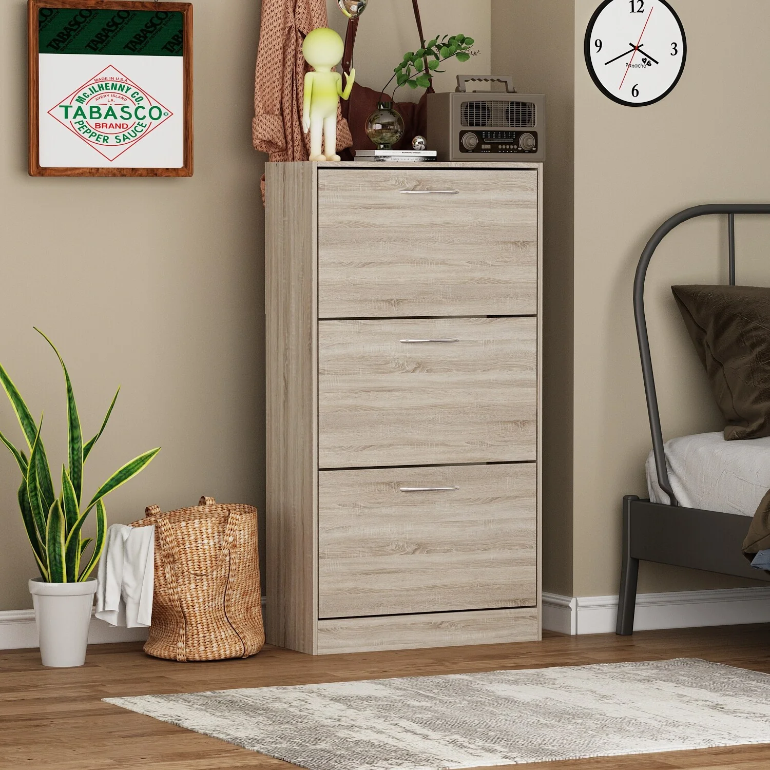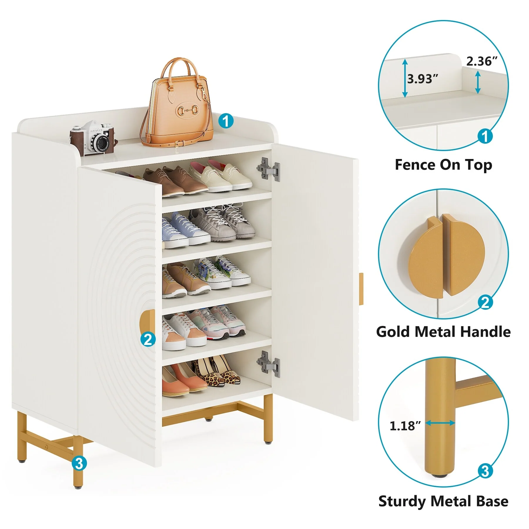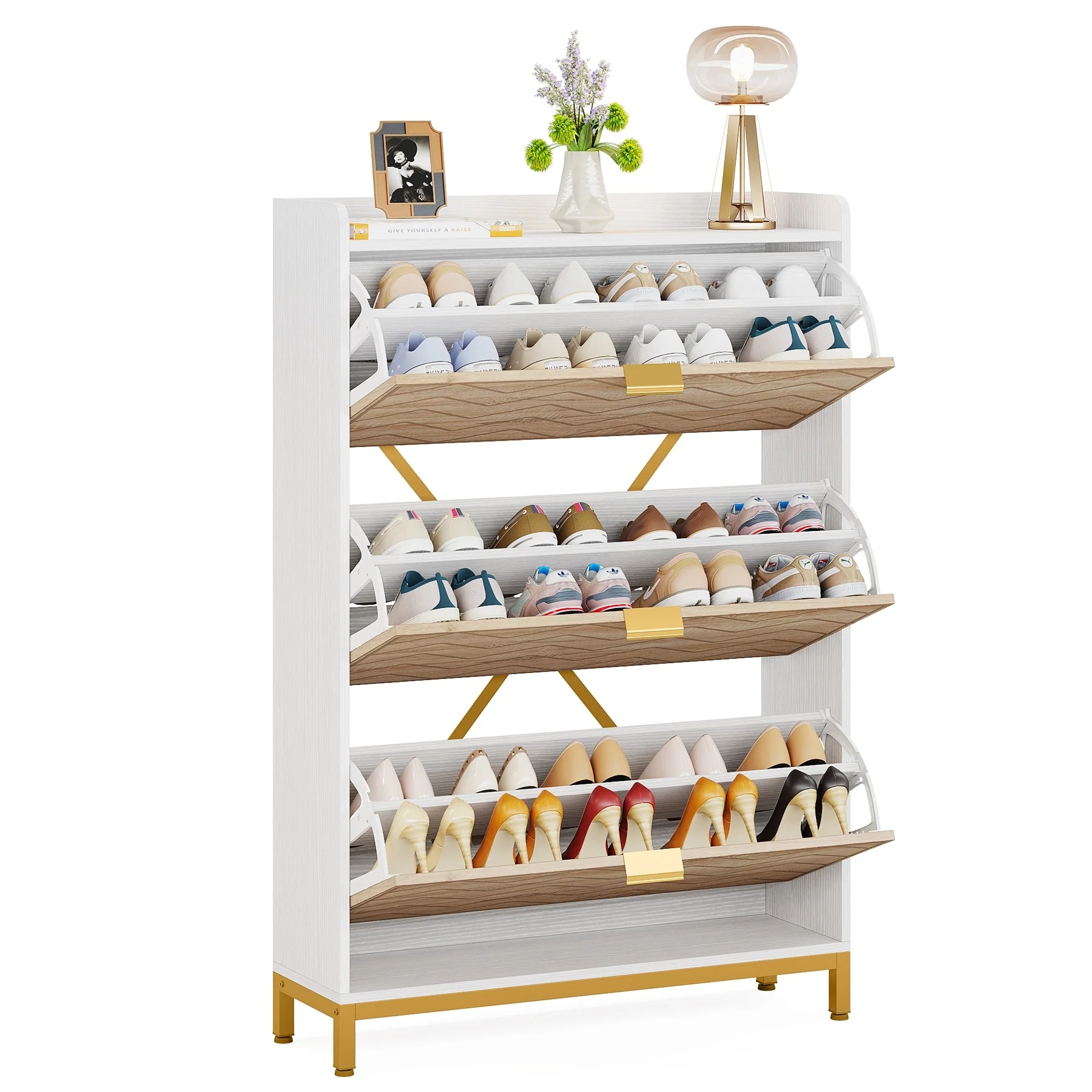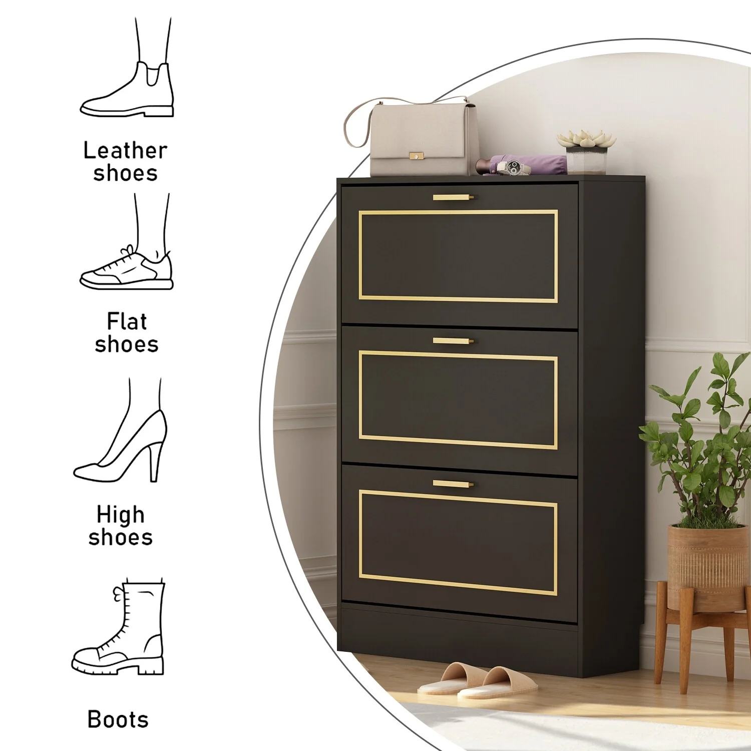 Slim Shoe Cabinet, Freestanding 24 Pair Shoe Rack Organizer