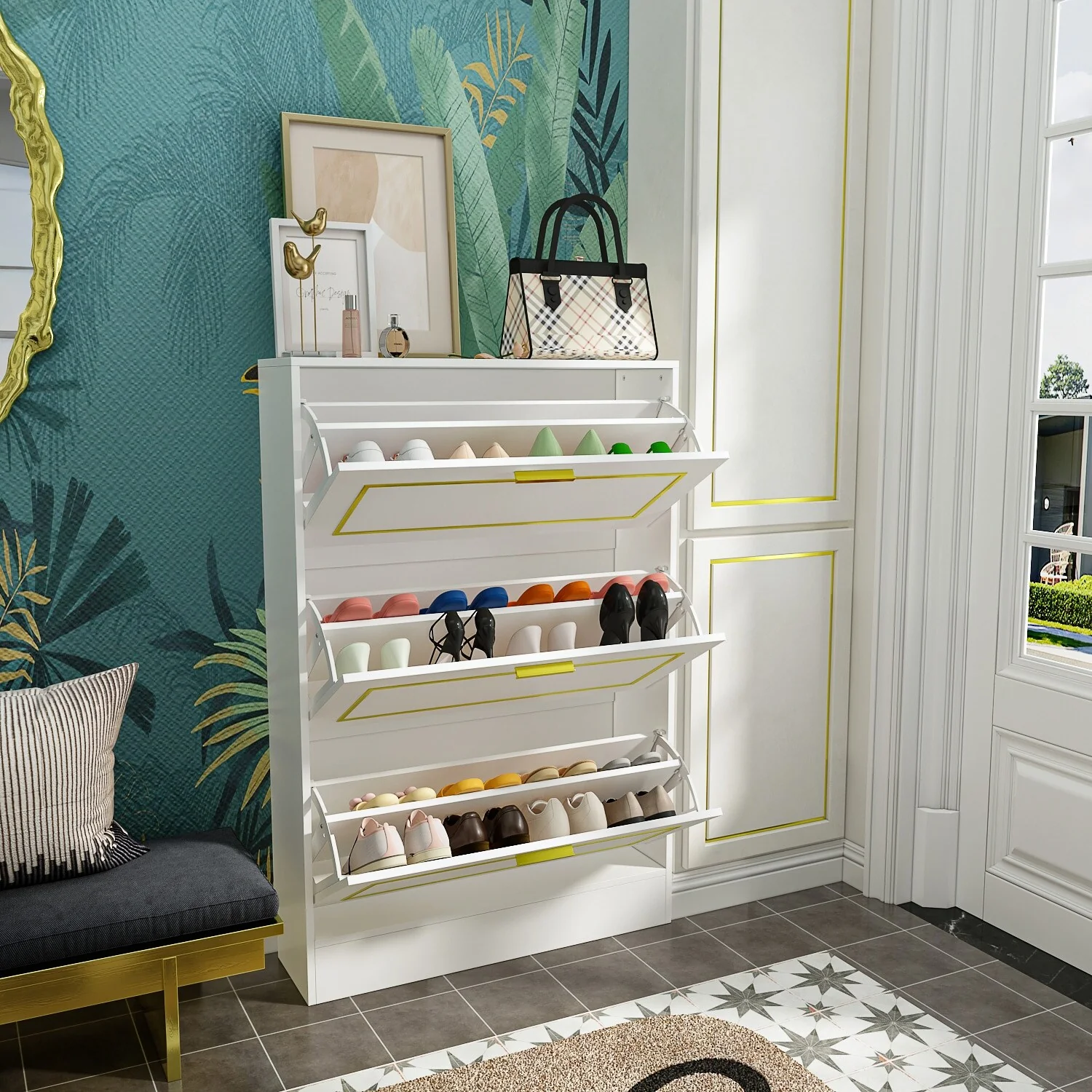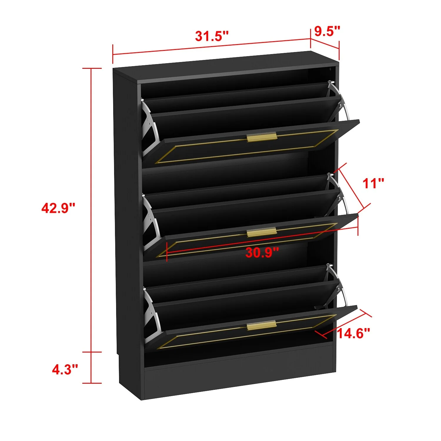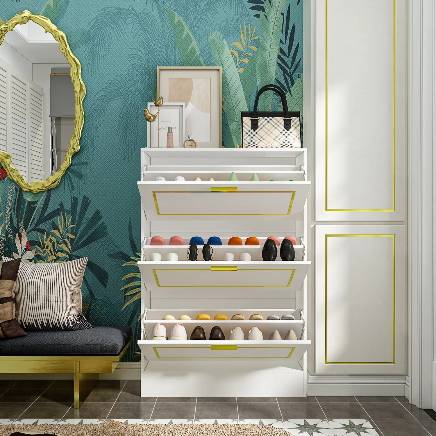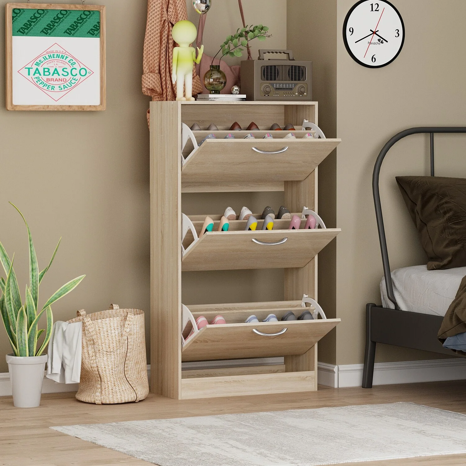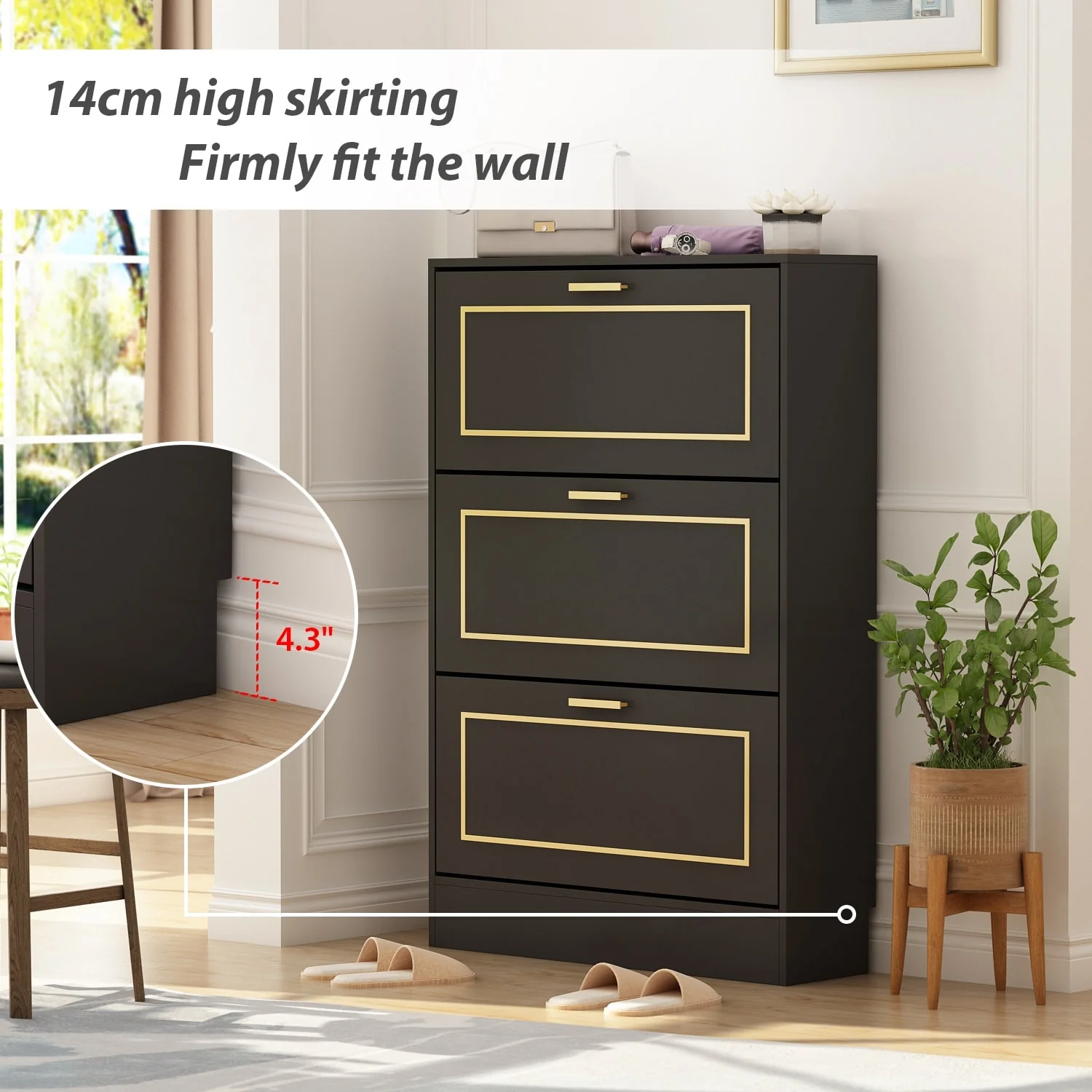 Slim Shoe Cabinet, Freestanding 24 Pair Shoe Rack Organizer