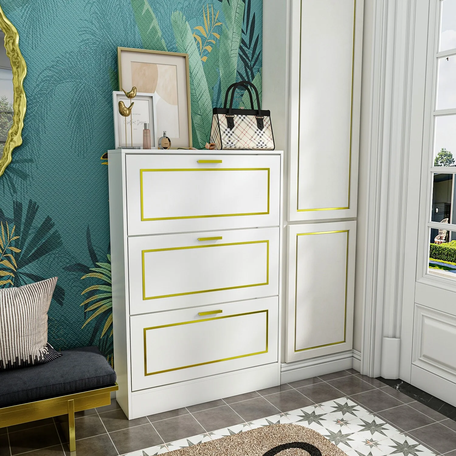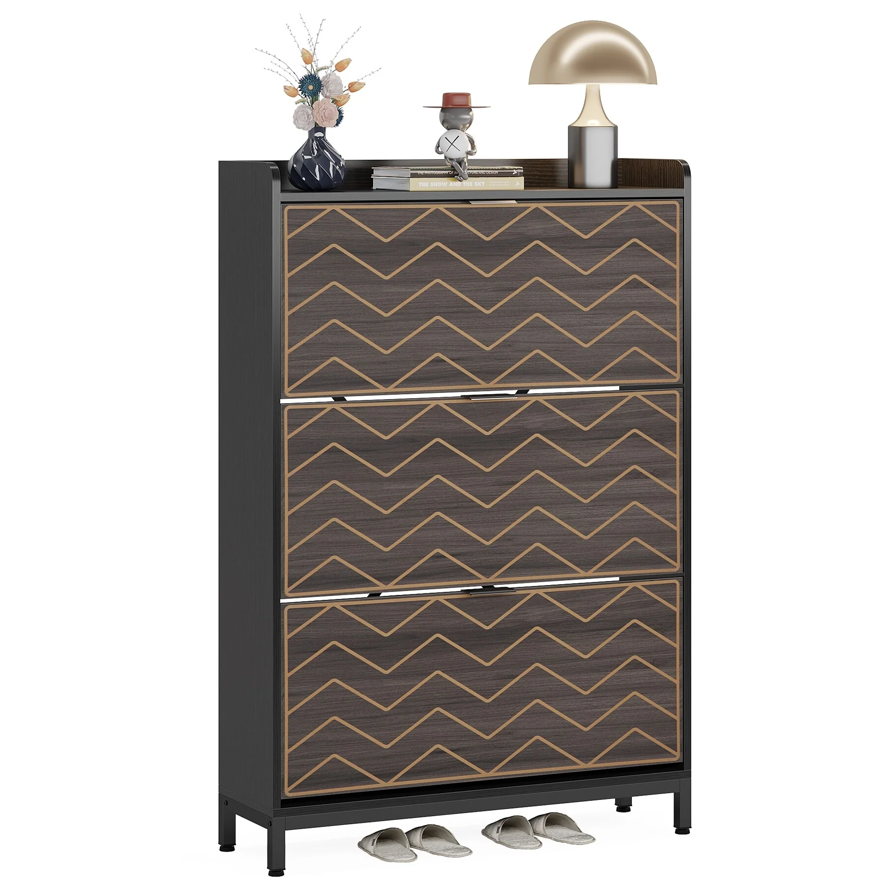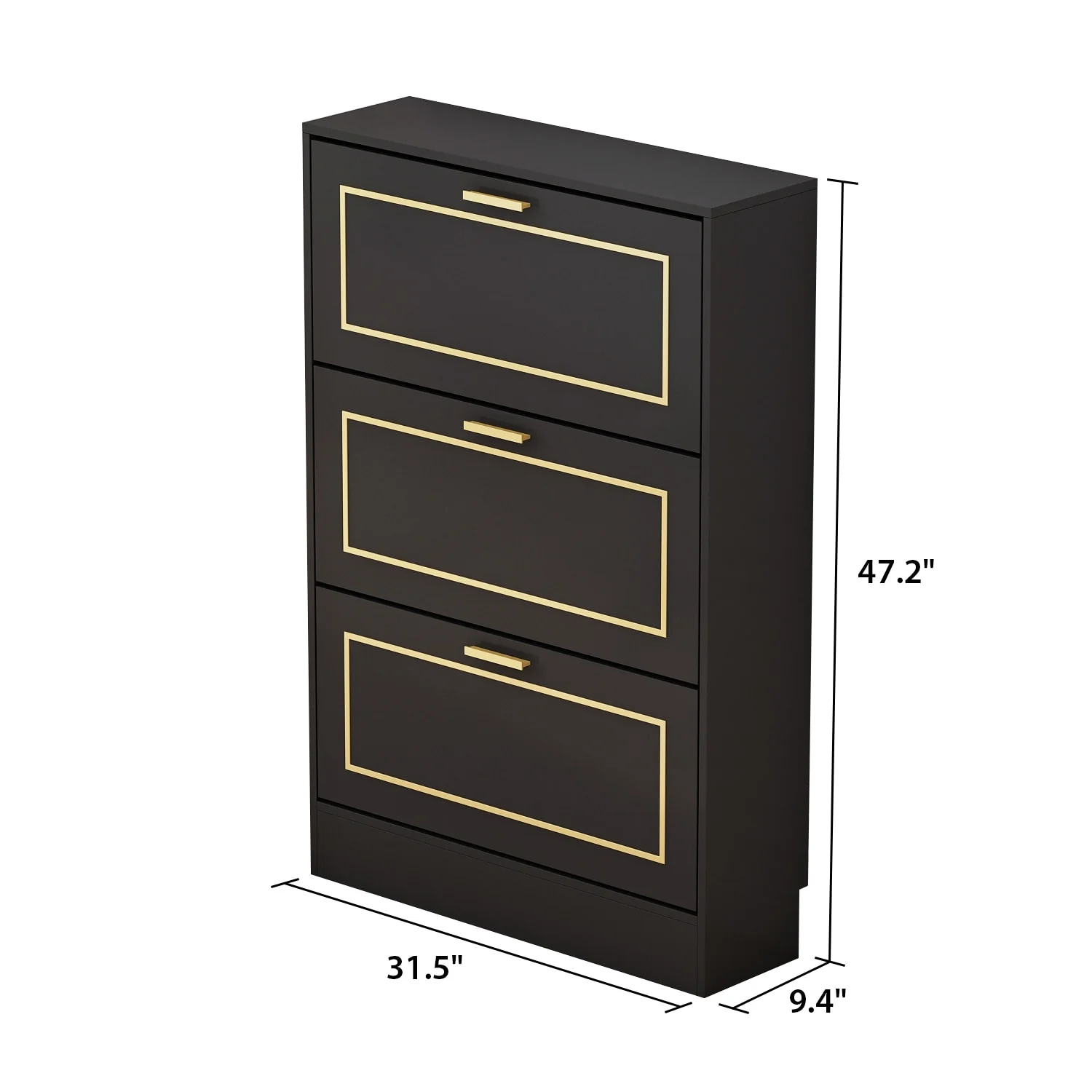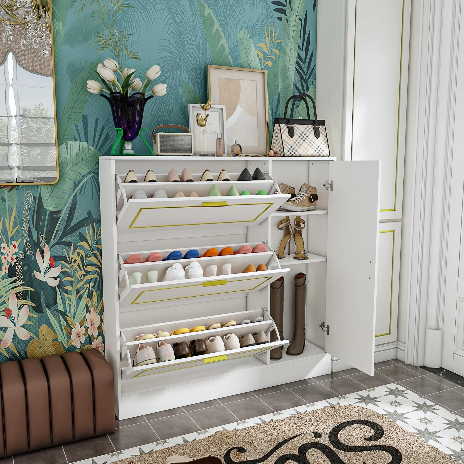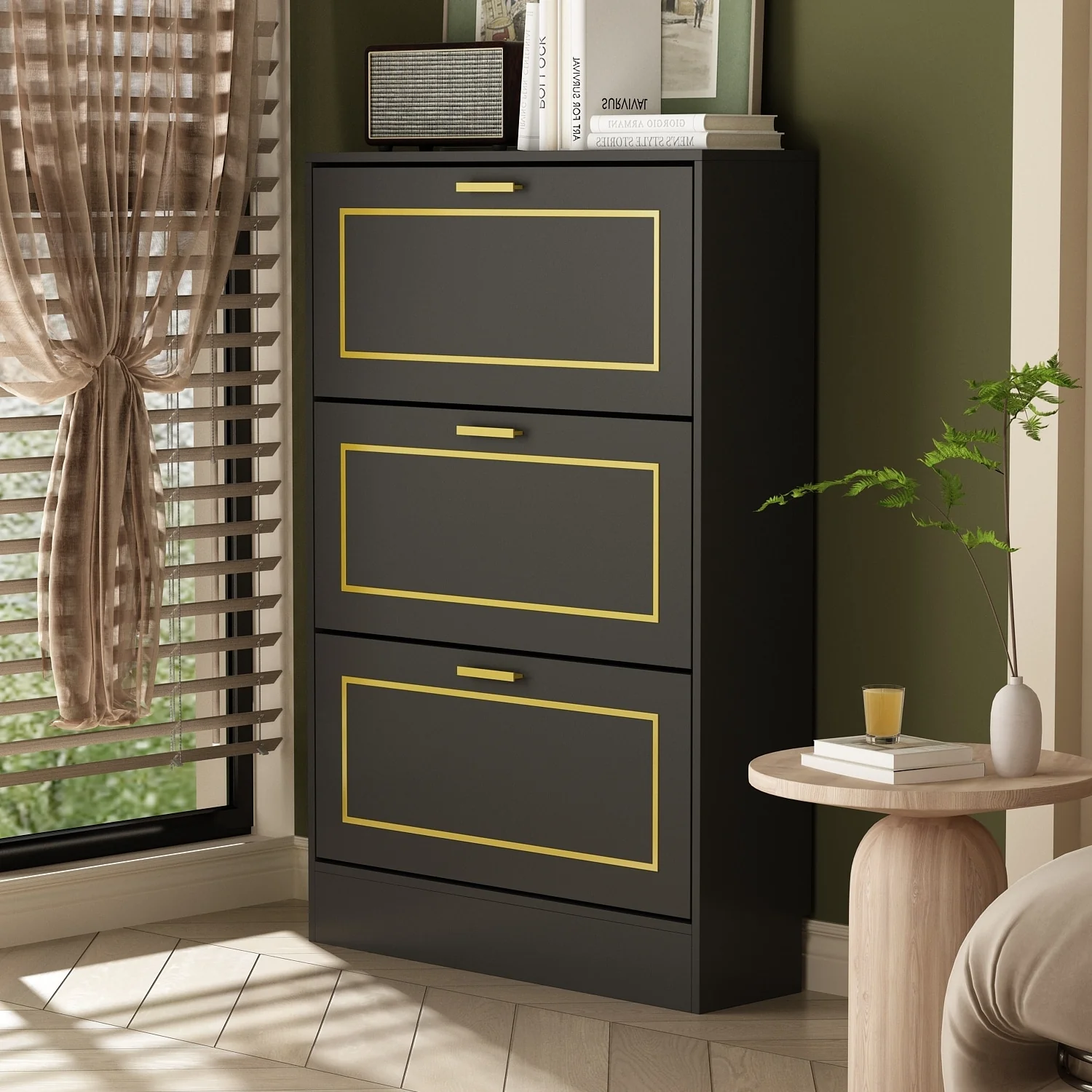 Slim Shoe Cabinet, Freestanding 24 Pair Shoe Rack Organizer