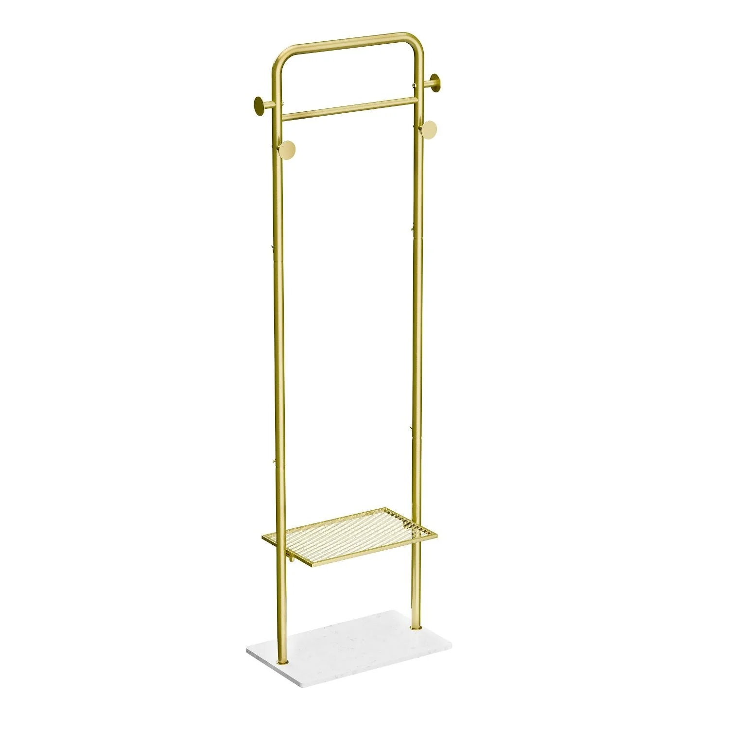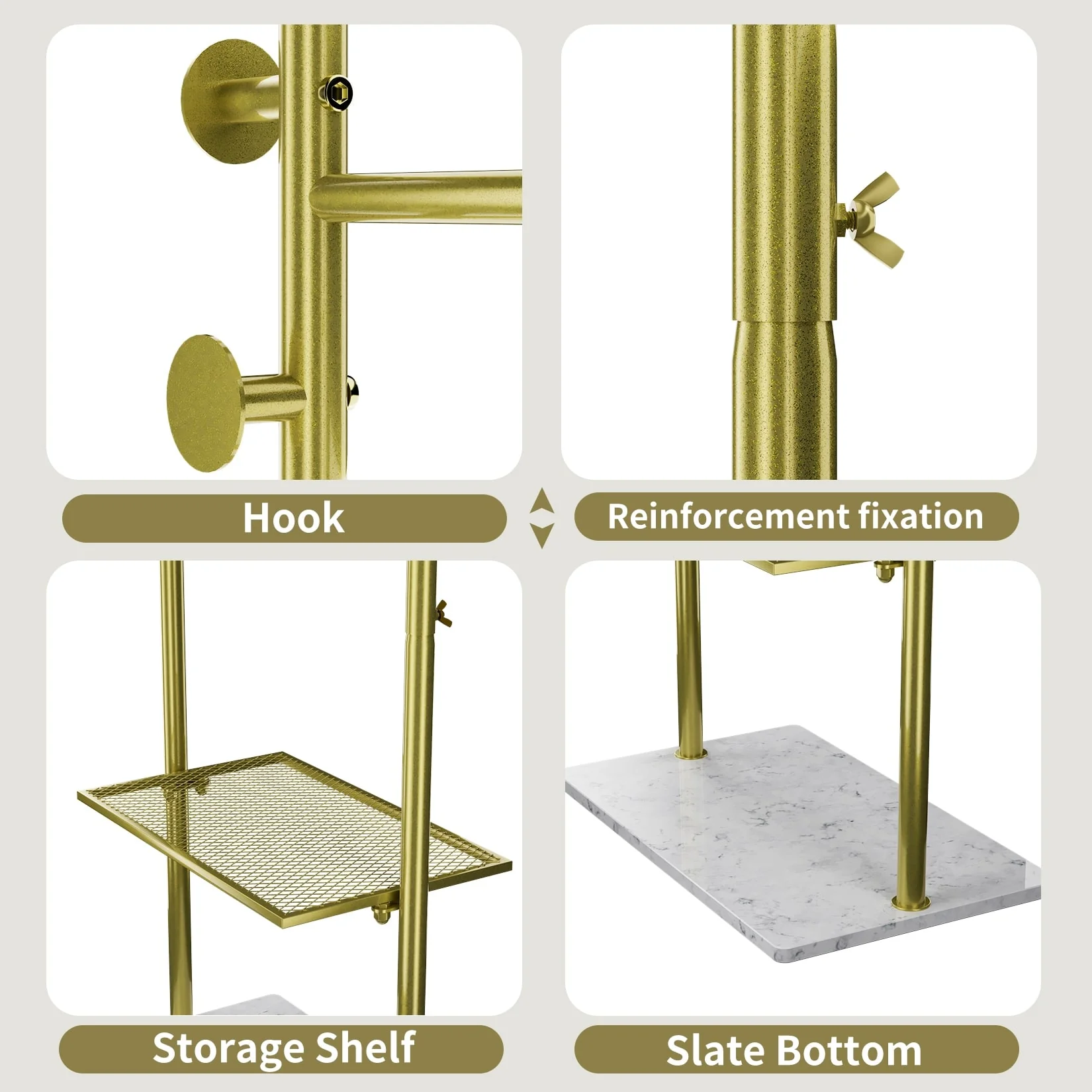 Freestanding Metal Corner Clothes Stand Coat Rack with 4 Hooks Gold
