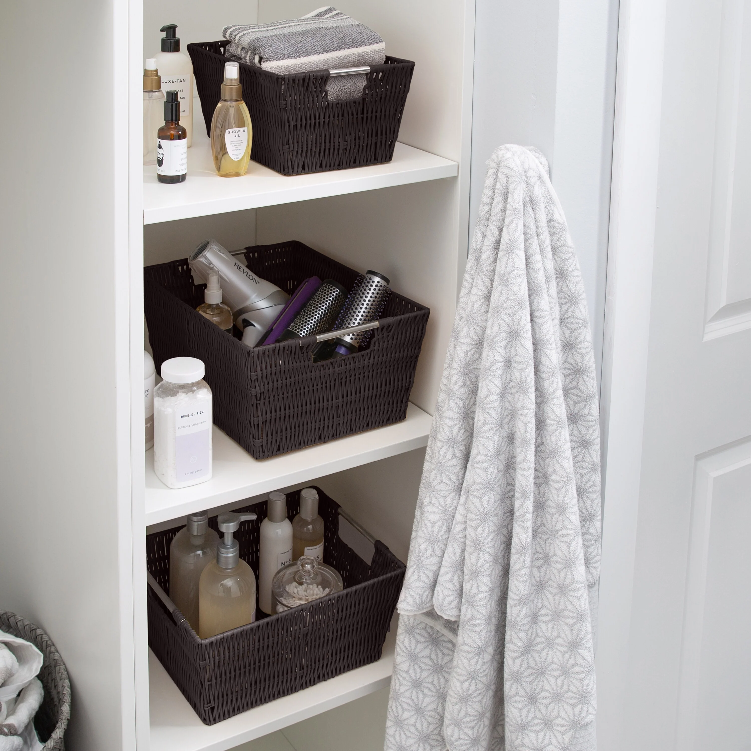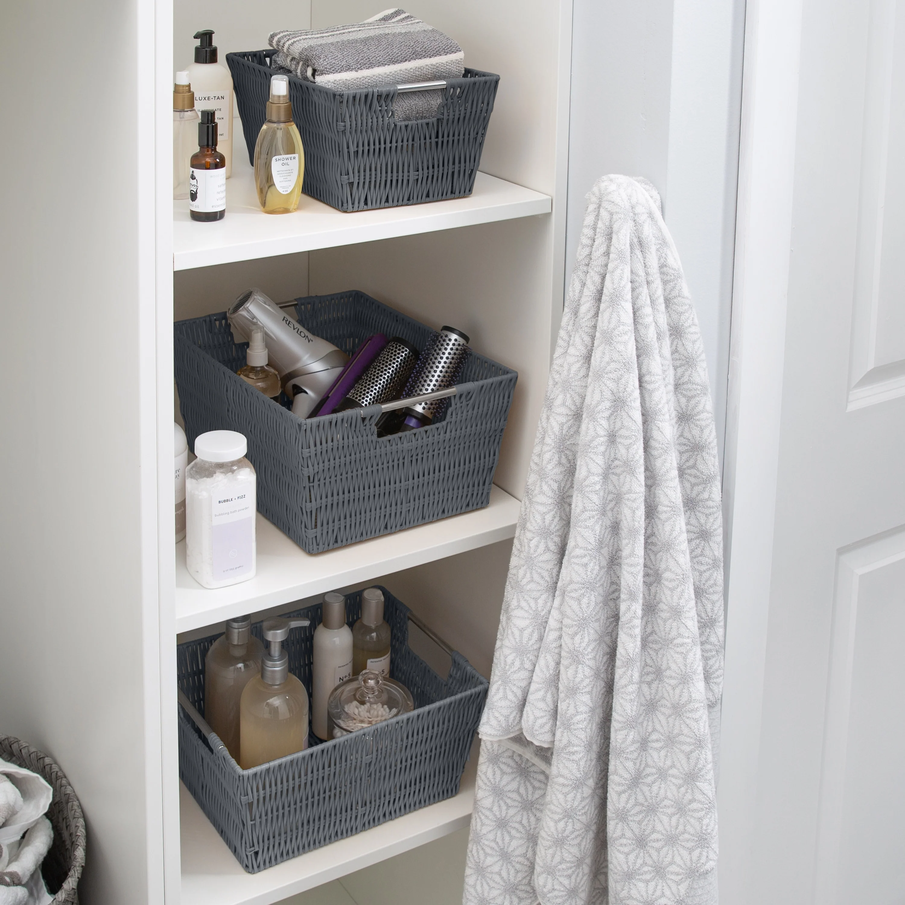 Simplify 3 Pack Set Rattan Tote Baskets in Charcoal