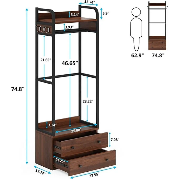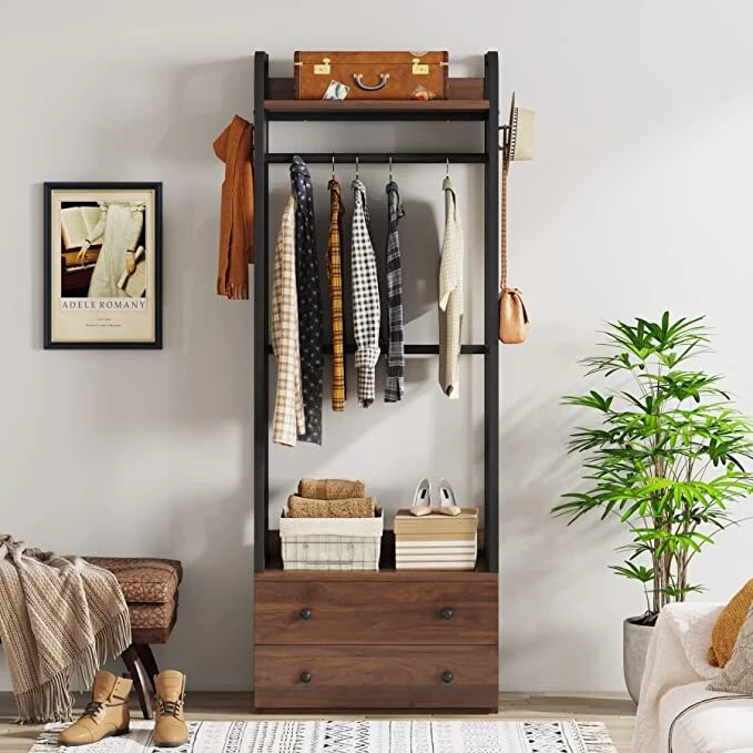 Freestanding Closet Organizer Small Clothes Rack Coat Rack with Drawers and Shelves