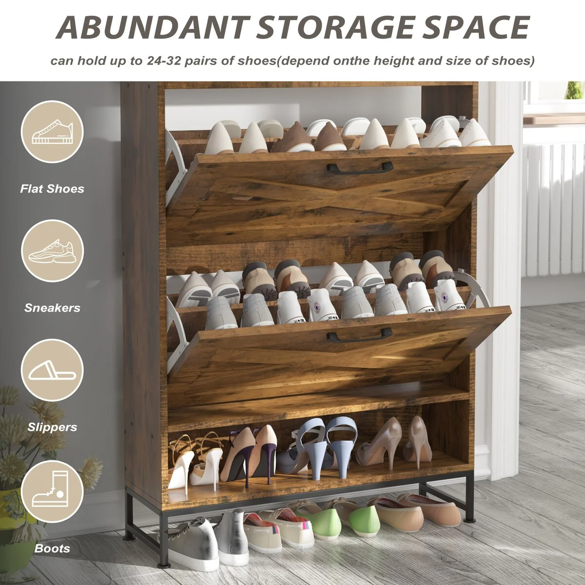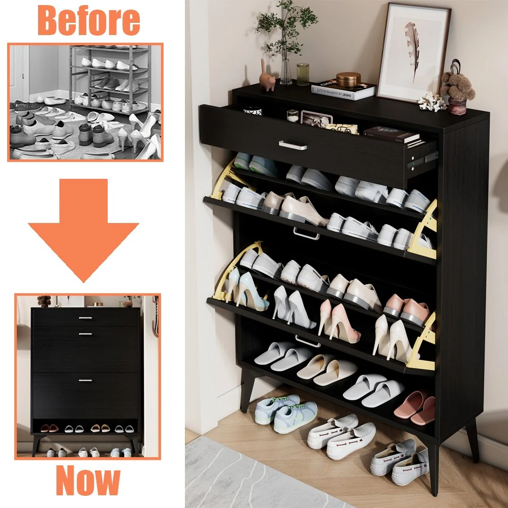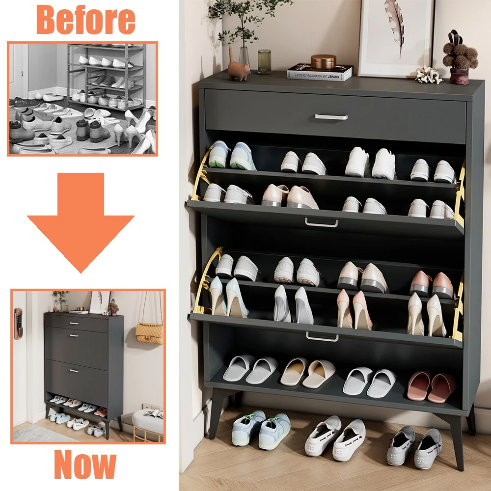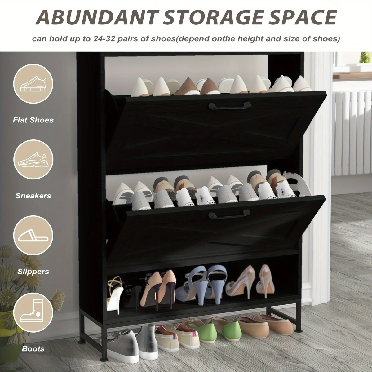 24 Pairs Shoe Storage Cabinet for Entryway, Freestanding Shoe Rack Organizer