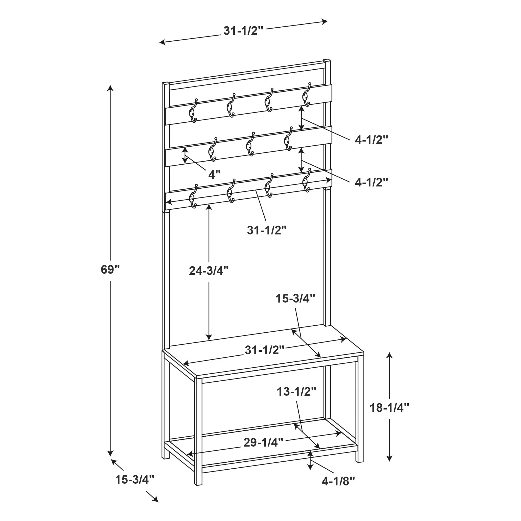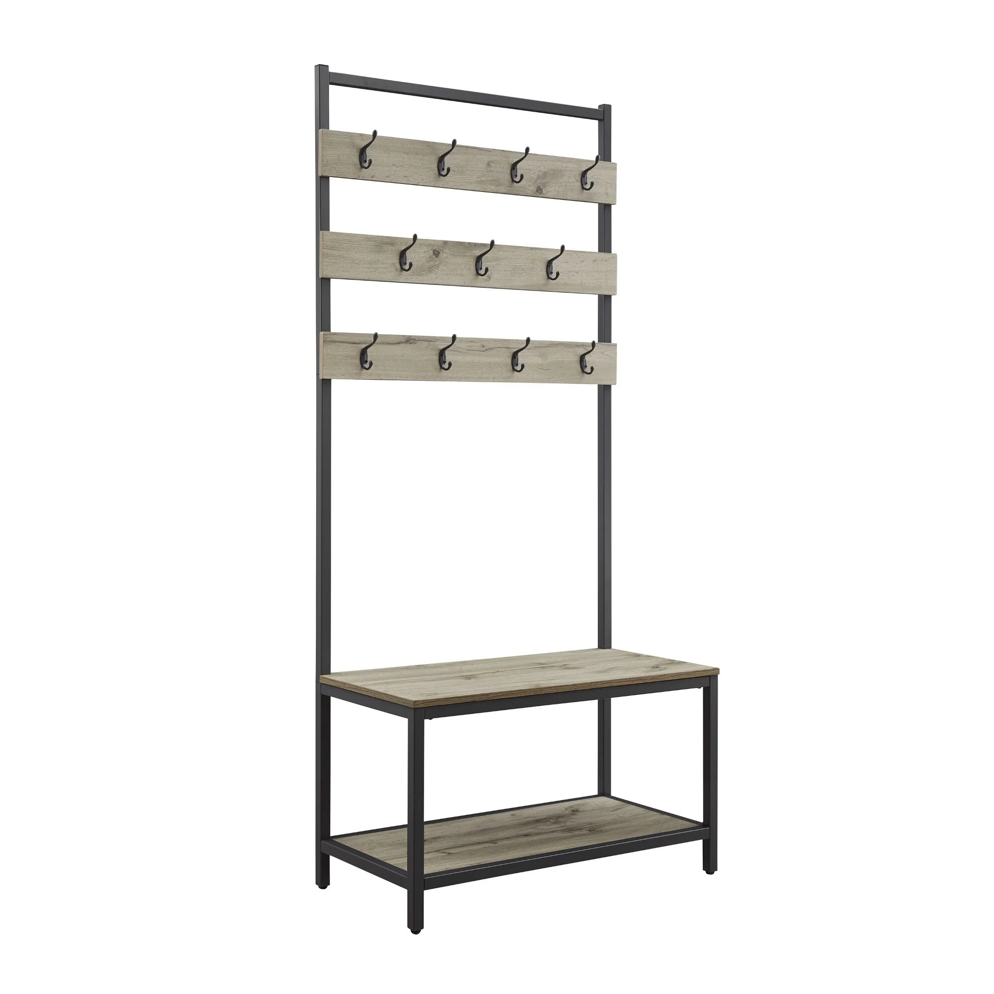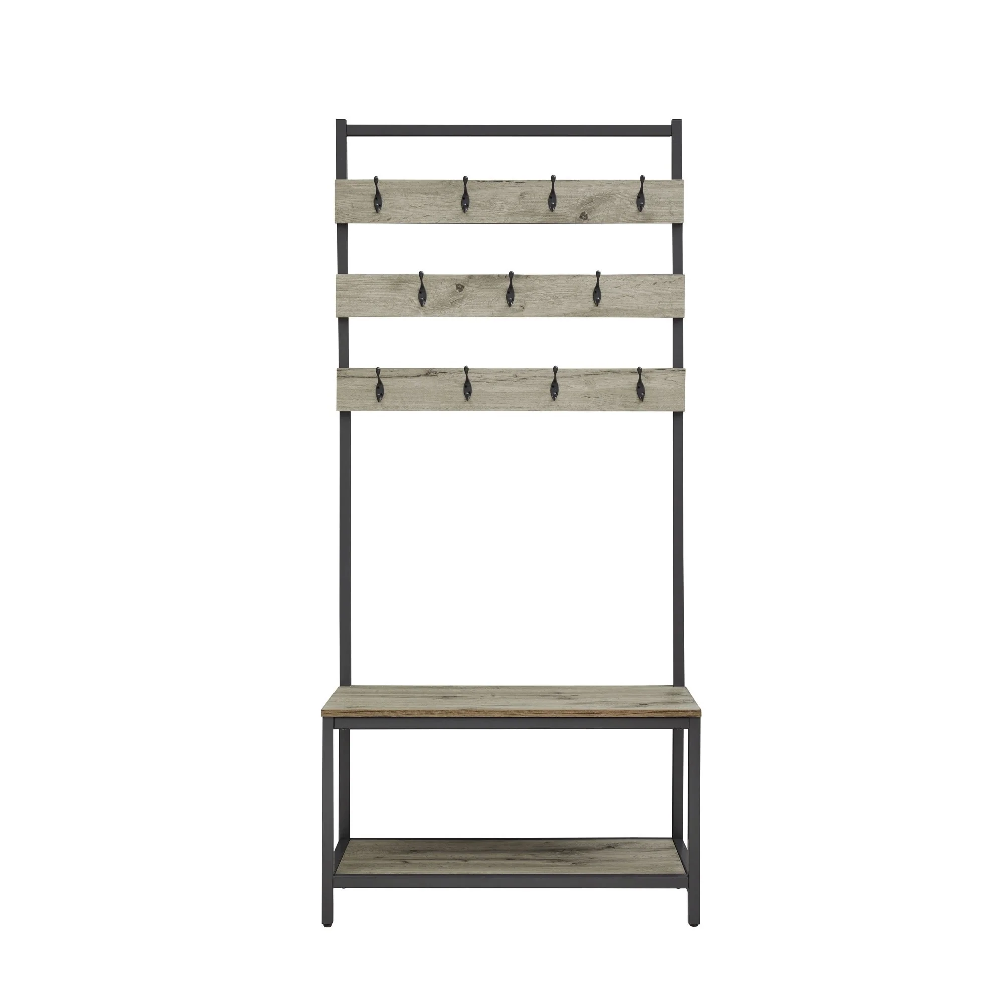 Wooden Hall Tree with 11 Double Hooks - 69" - Gray