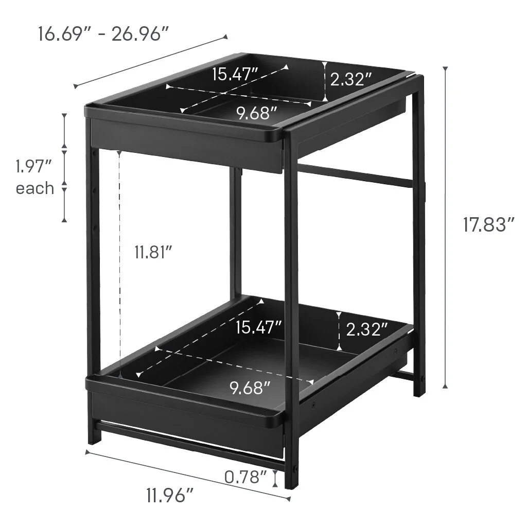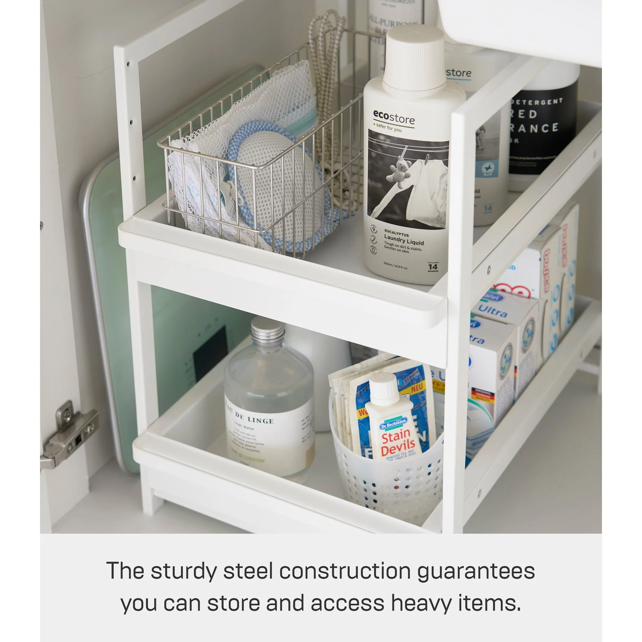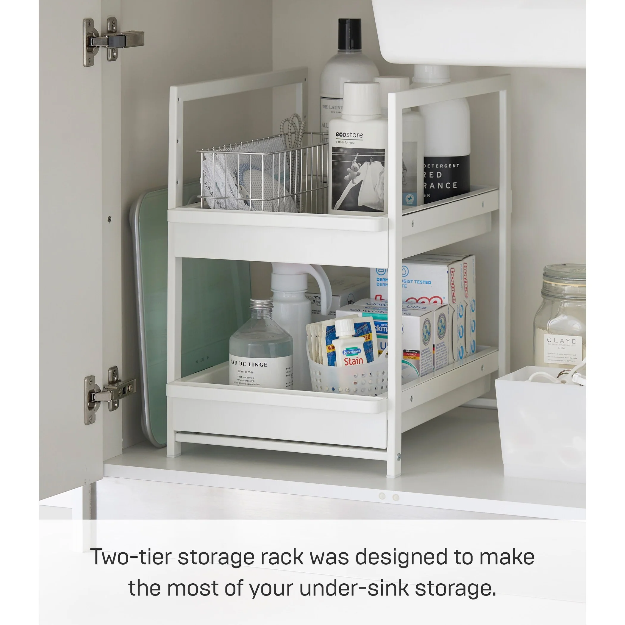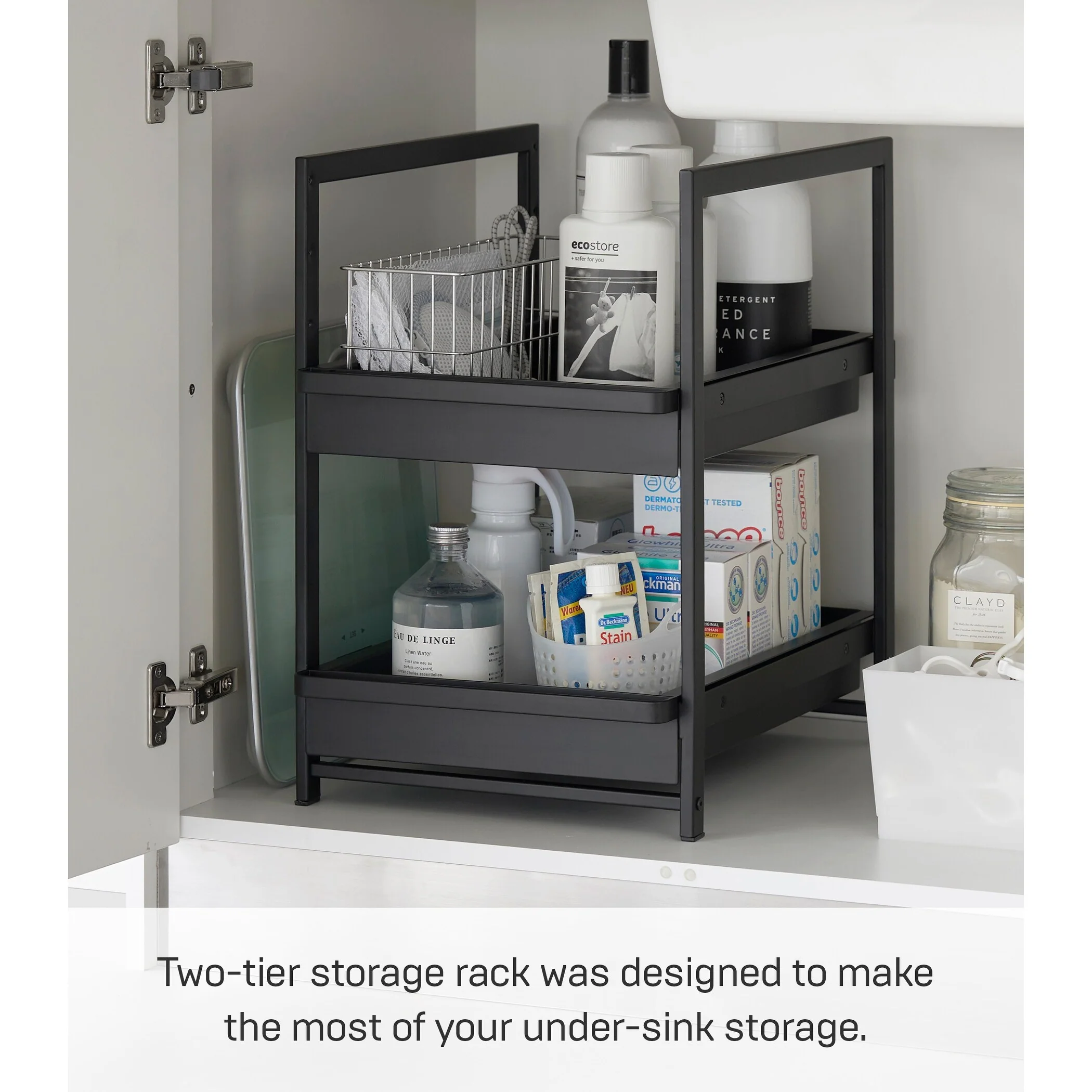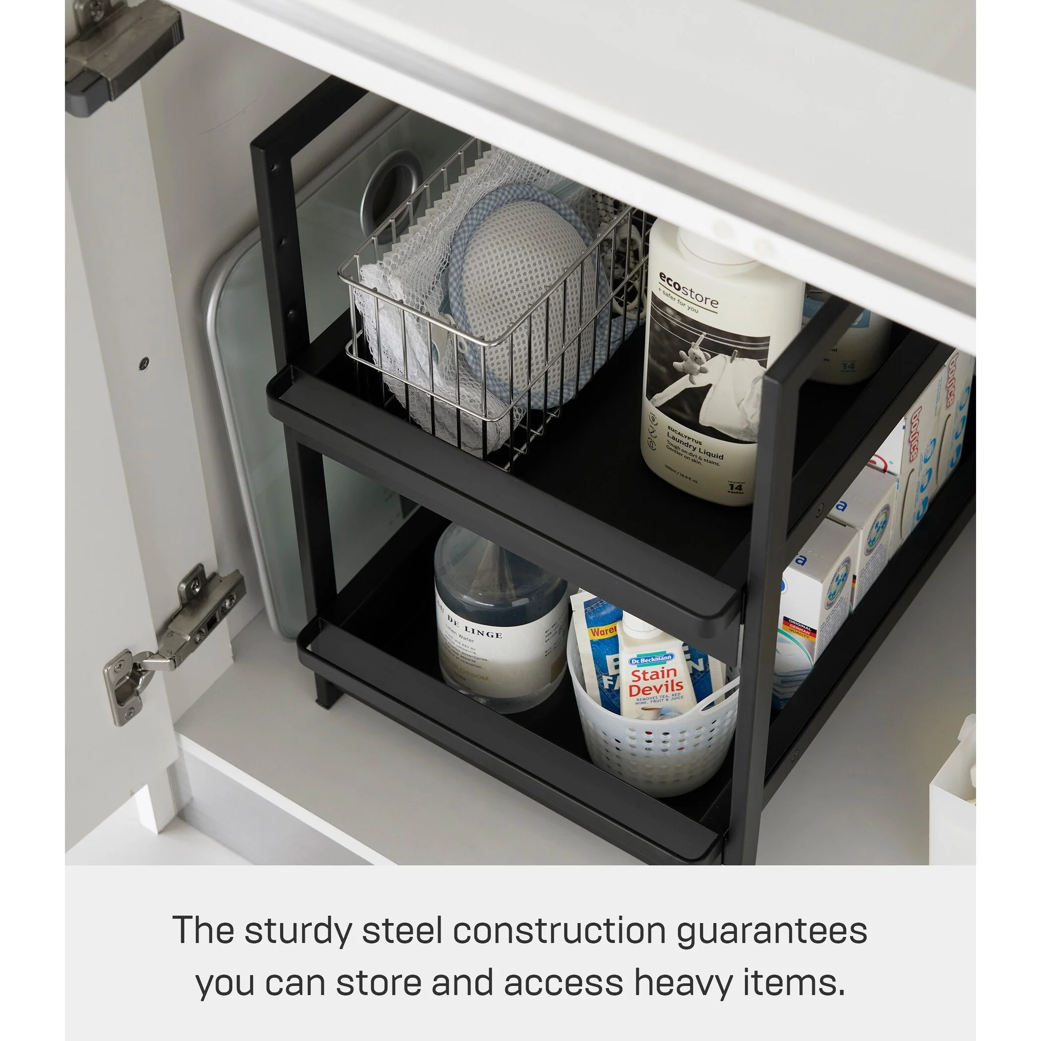 Yamazaki Home Under-Sink Rack with Pull-Out Shelf, Steel, Adjustable - L 26.97 x W 11.97 x H 17.83 inches
