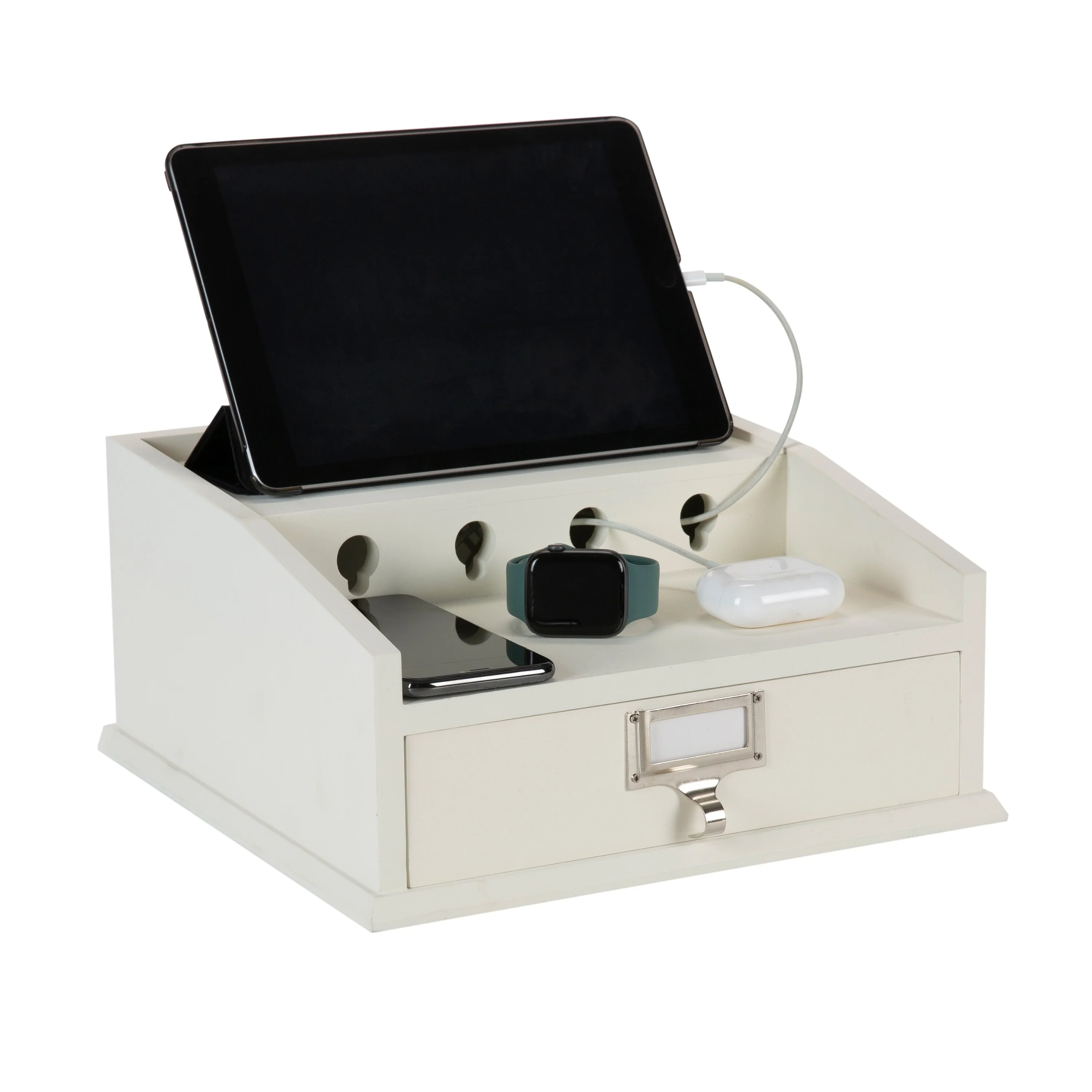 Organize It All Charging Station with Drawer in White - 12.00 x 12.00 x 6.00