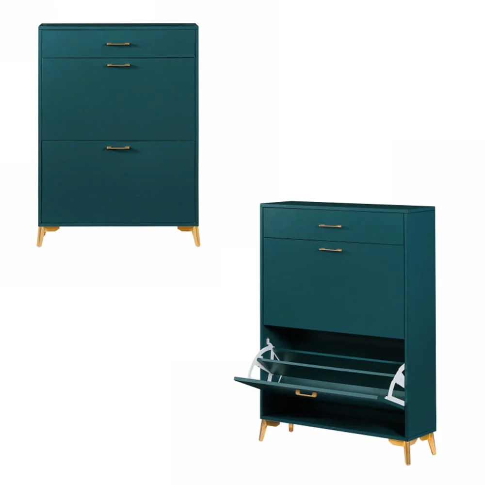 Mid-Century Two-Tone Shoe Cabinet with Drawer