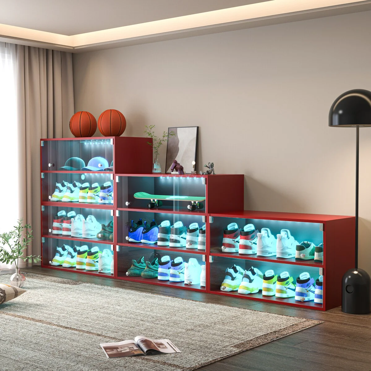 Glass Door Shoe Box Shoe Storage Cabinet For Sneakers With RGB Led Light