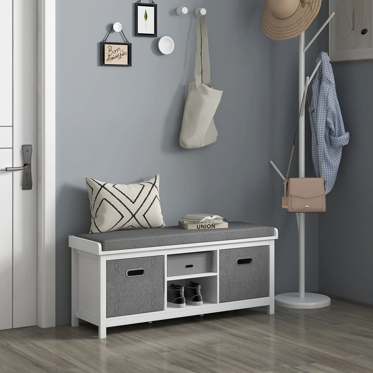 Shoe Bench with Cushion,Storage Bench for Entryway with Padded Seat,2 Drawers and Adjustable Shelf for Hallway