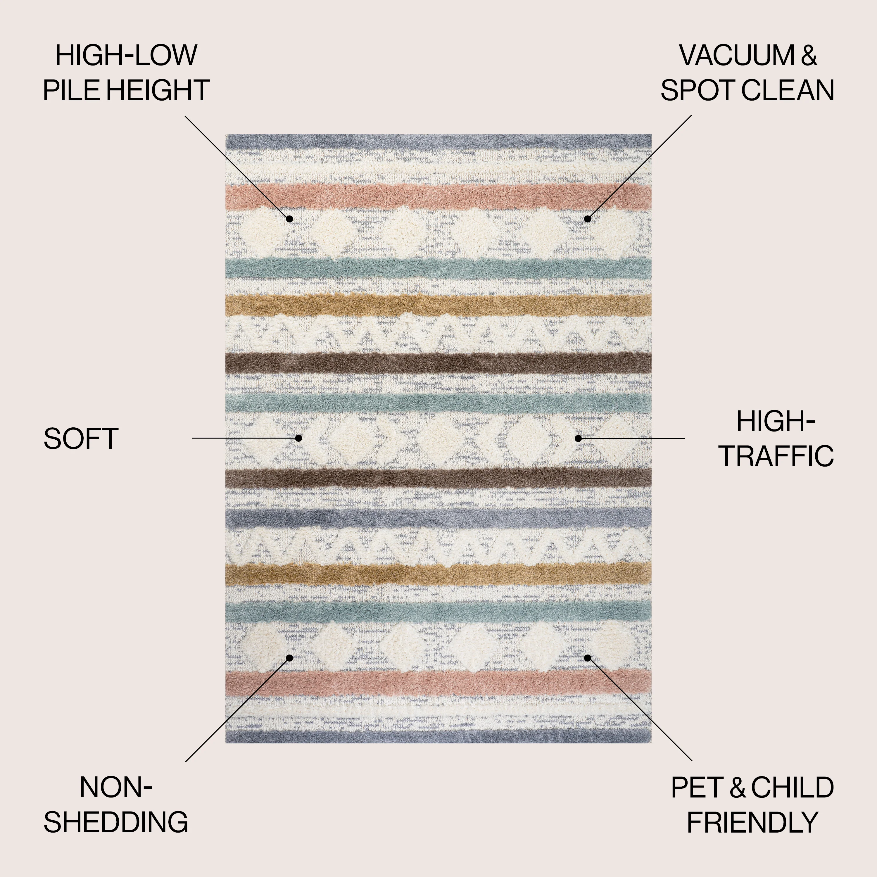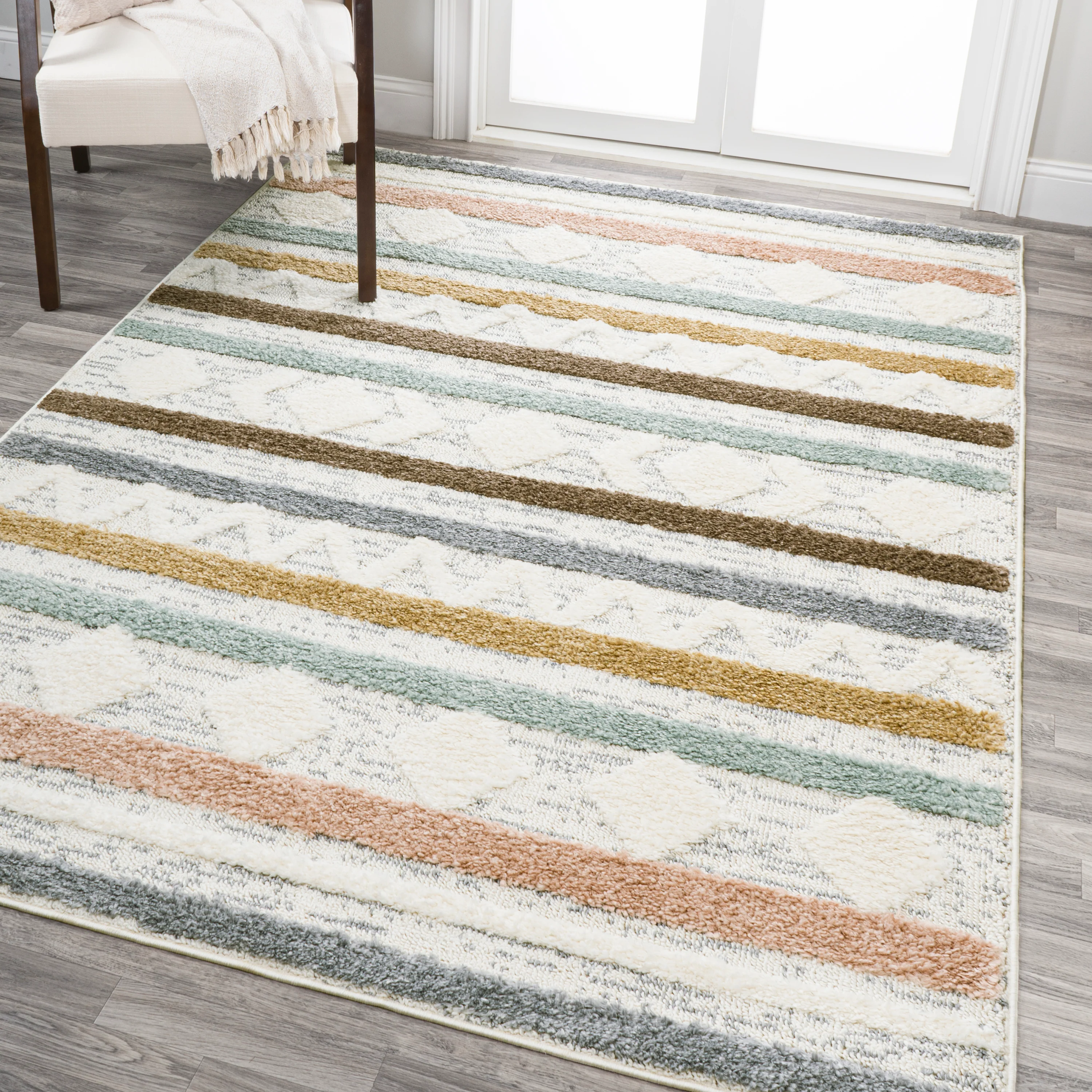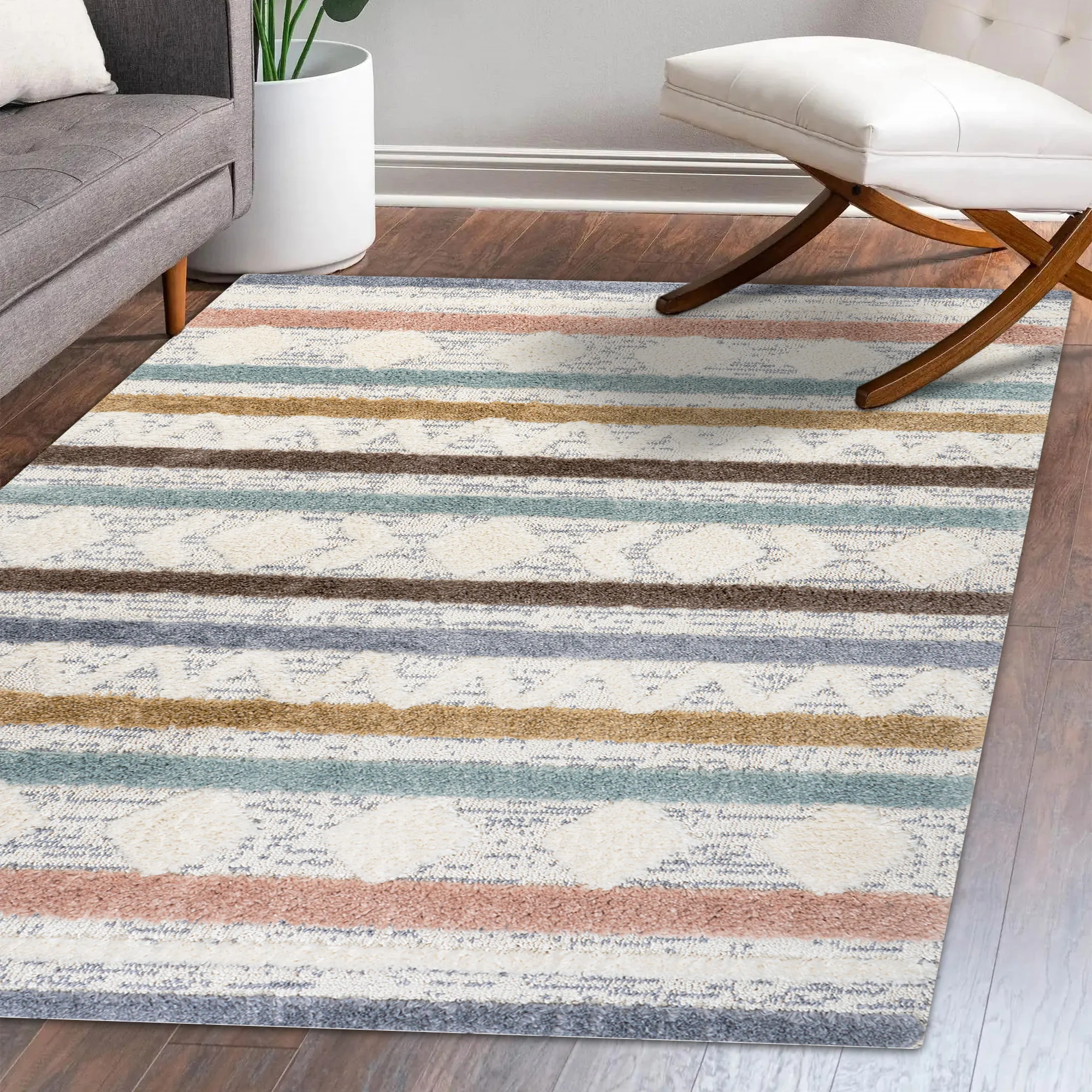 Faiza Moroccan Striped Geometric High-Low Area Rug