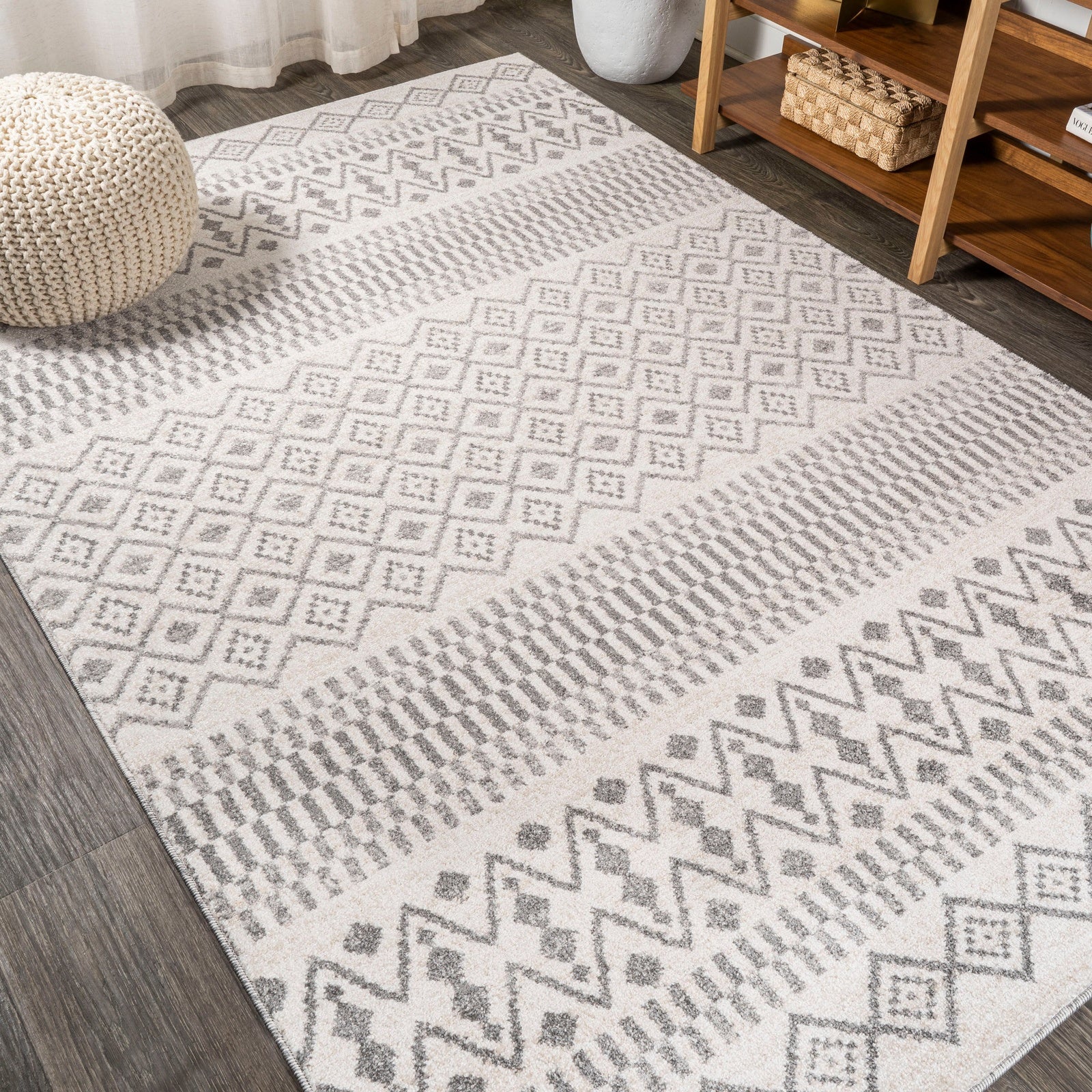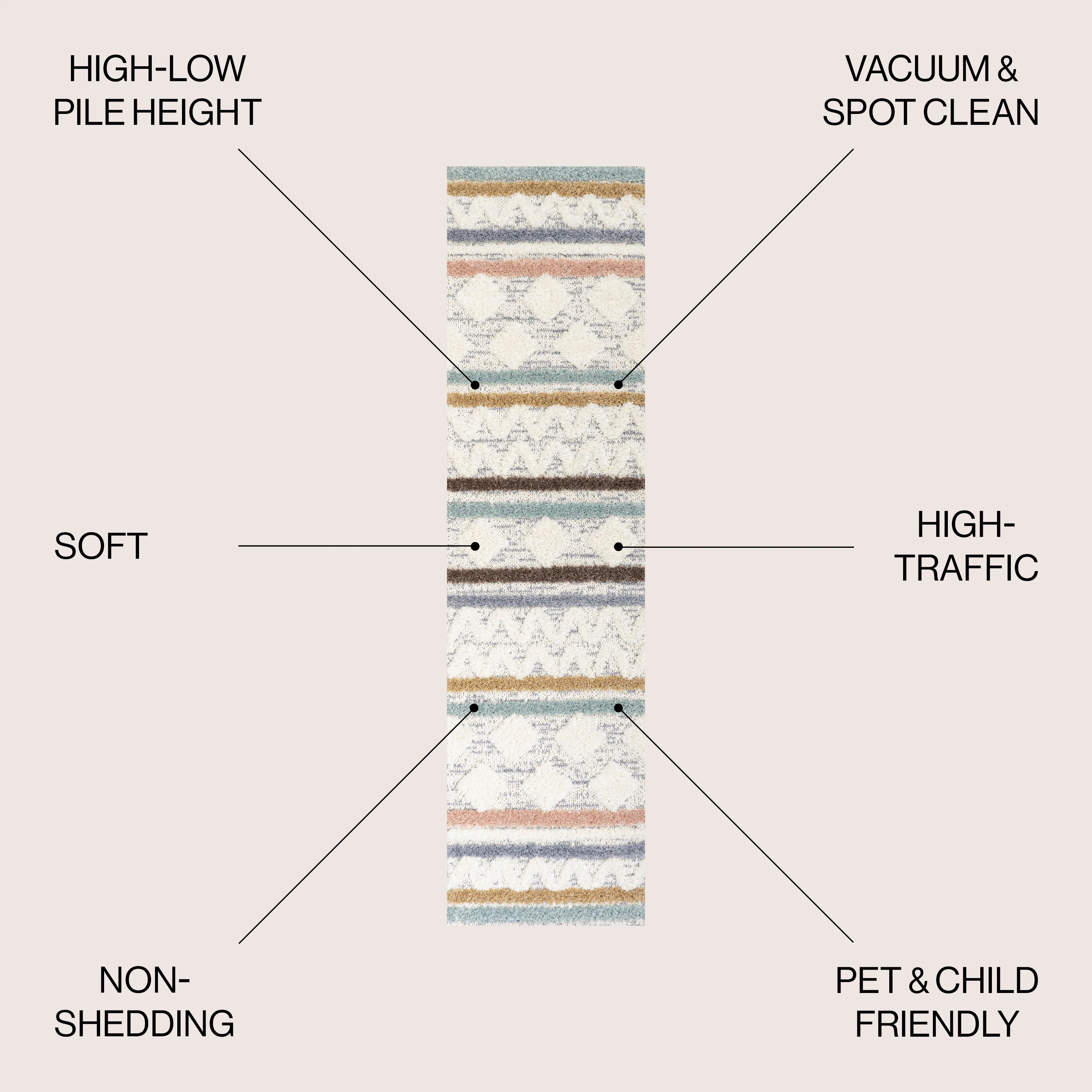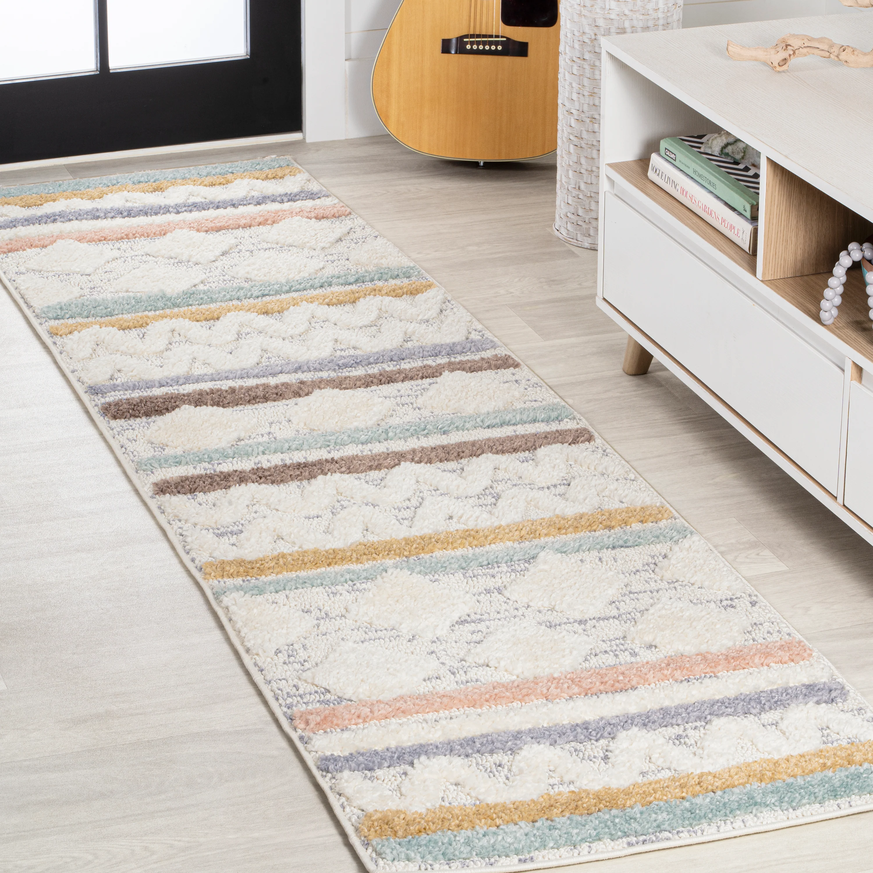 Faiza Moroccan Striped Geometric High-Low Area Rug