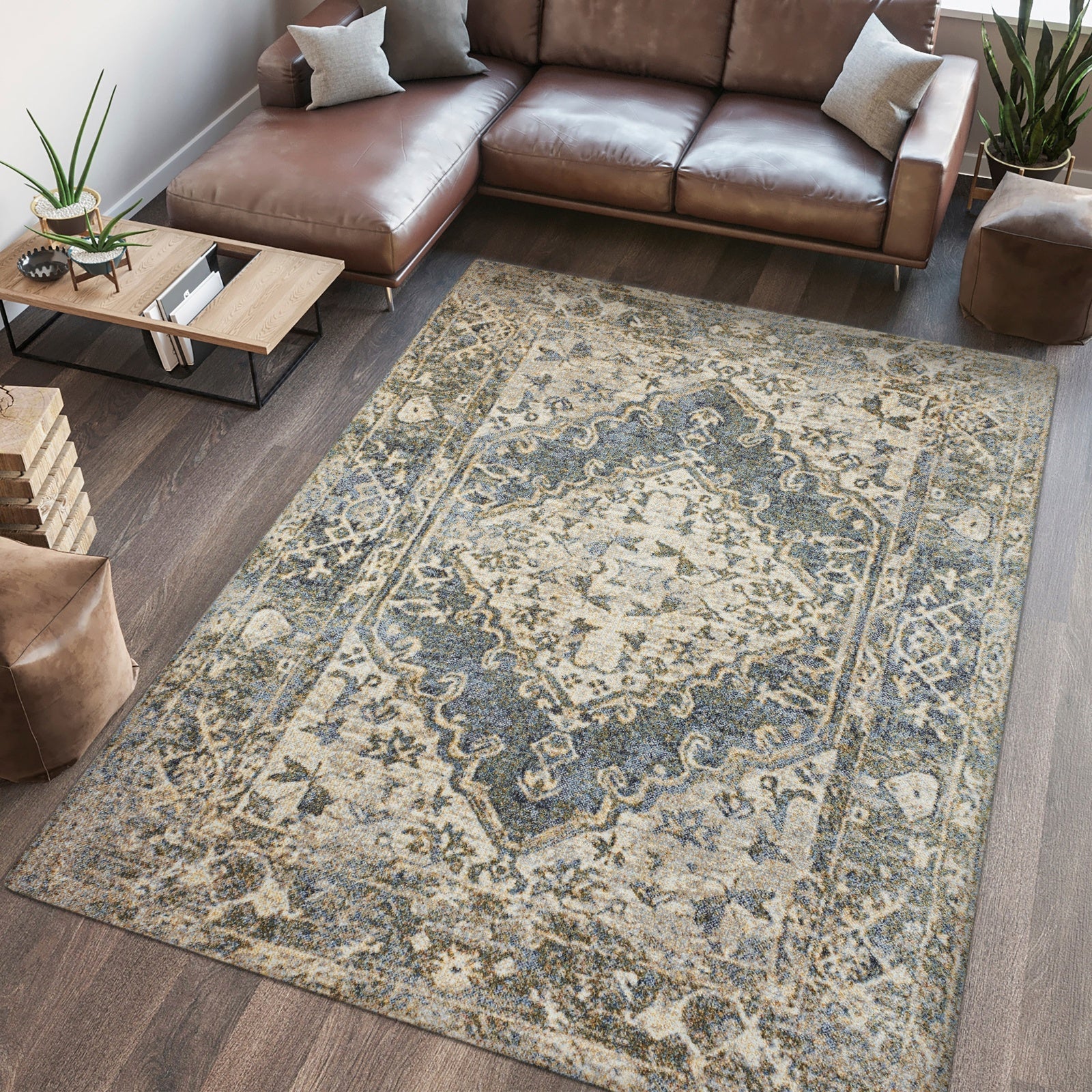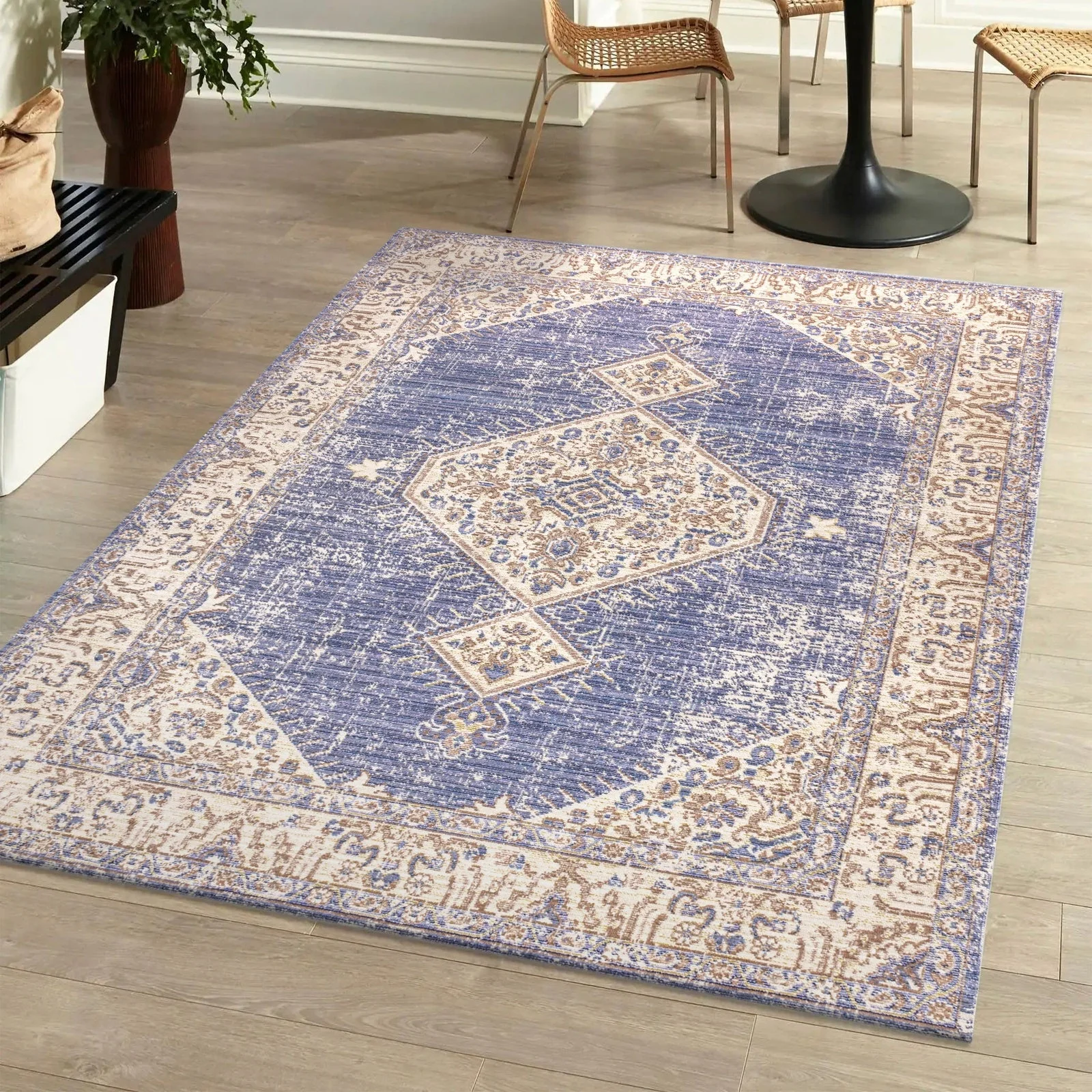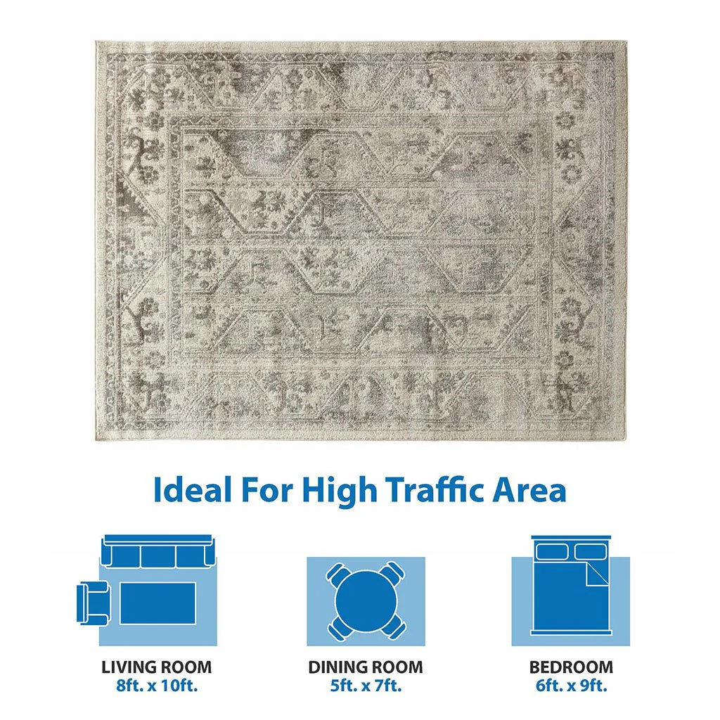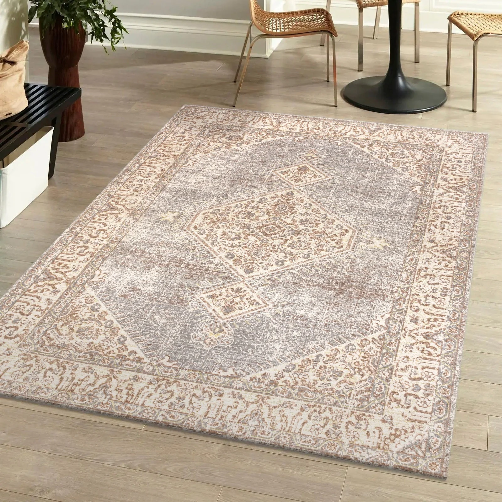 Alanya Ornate Medallion Washable Area Rug