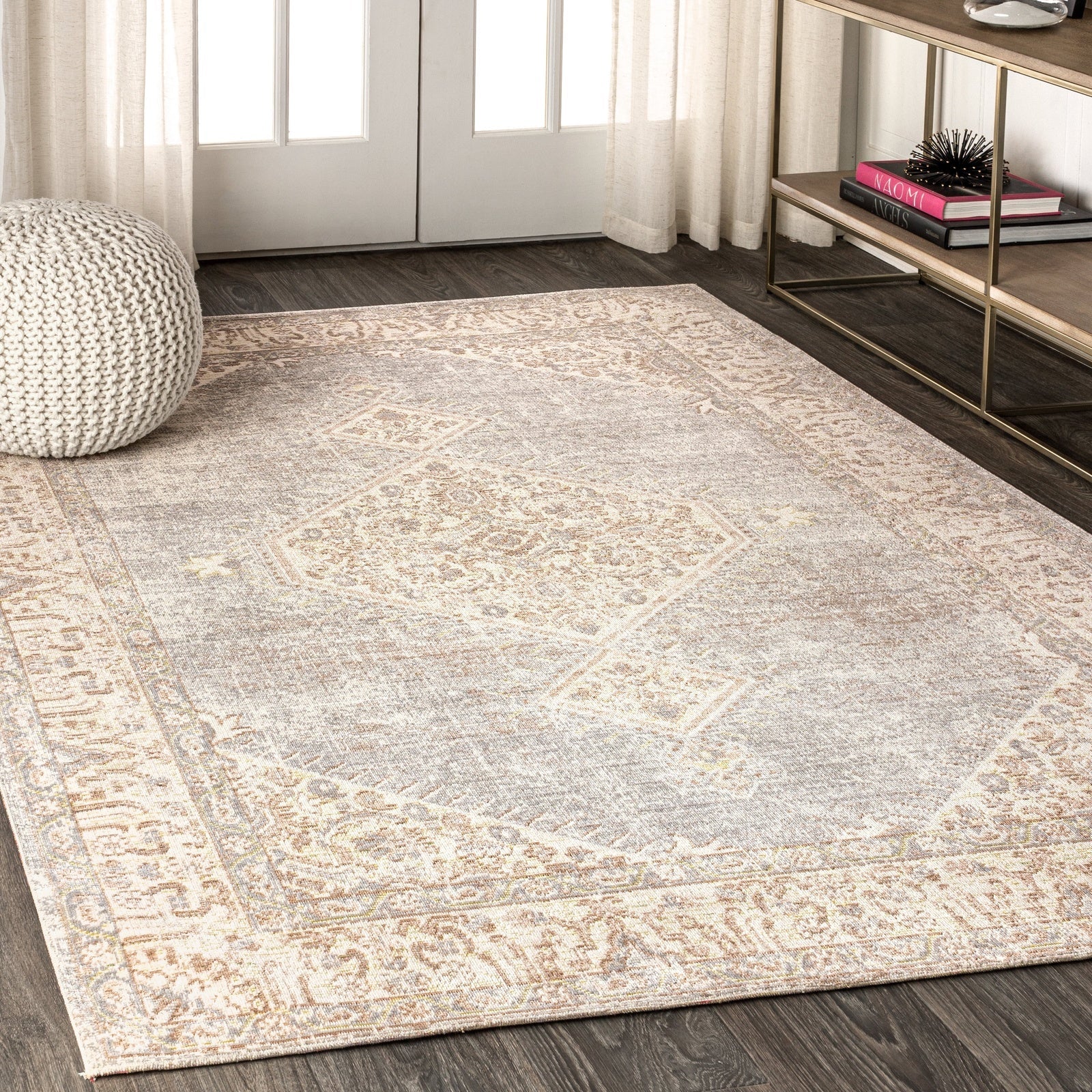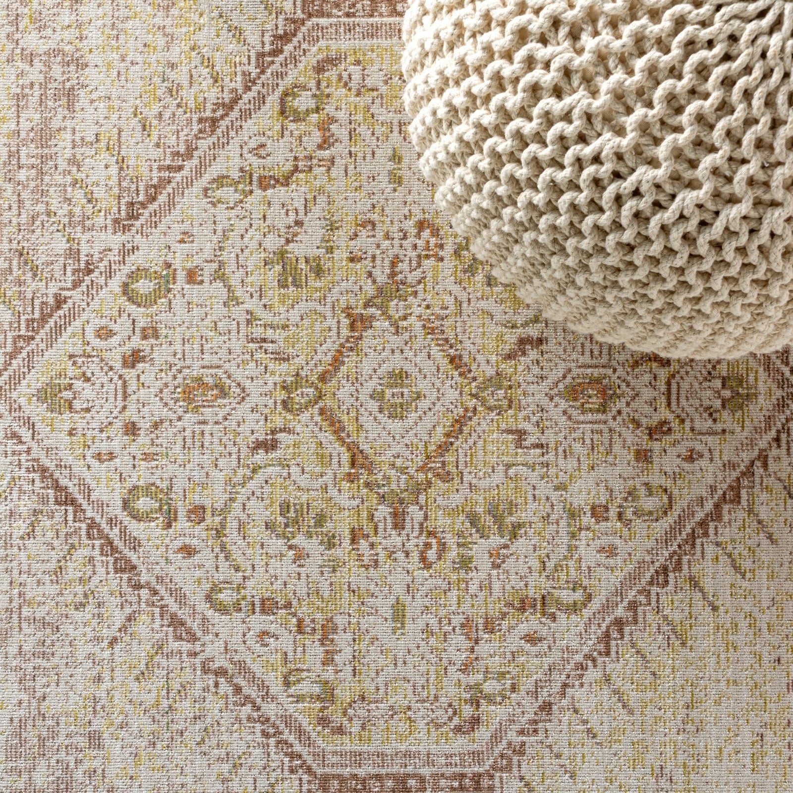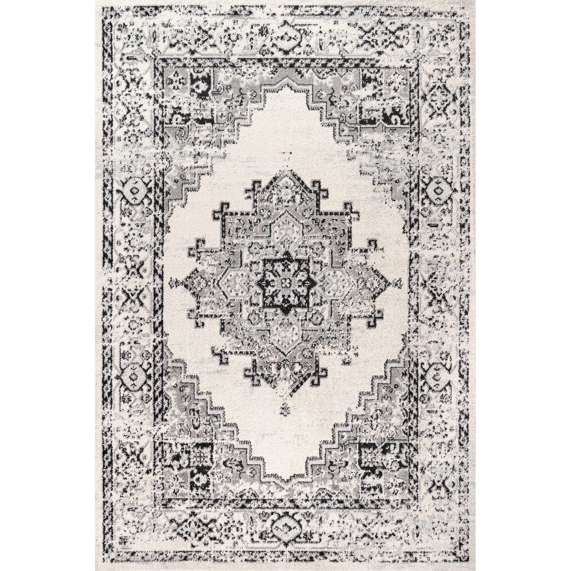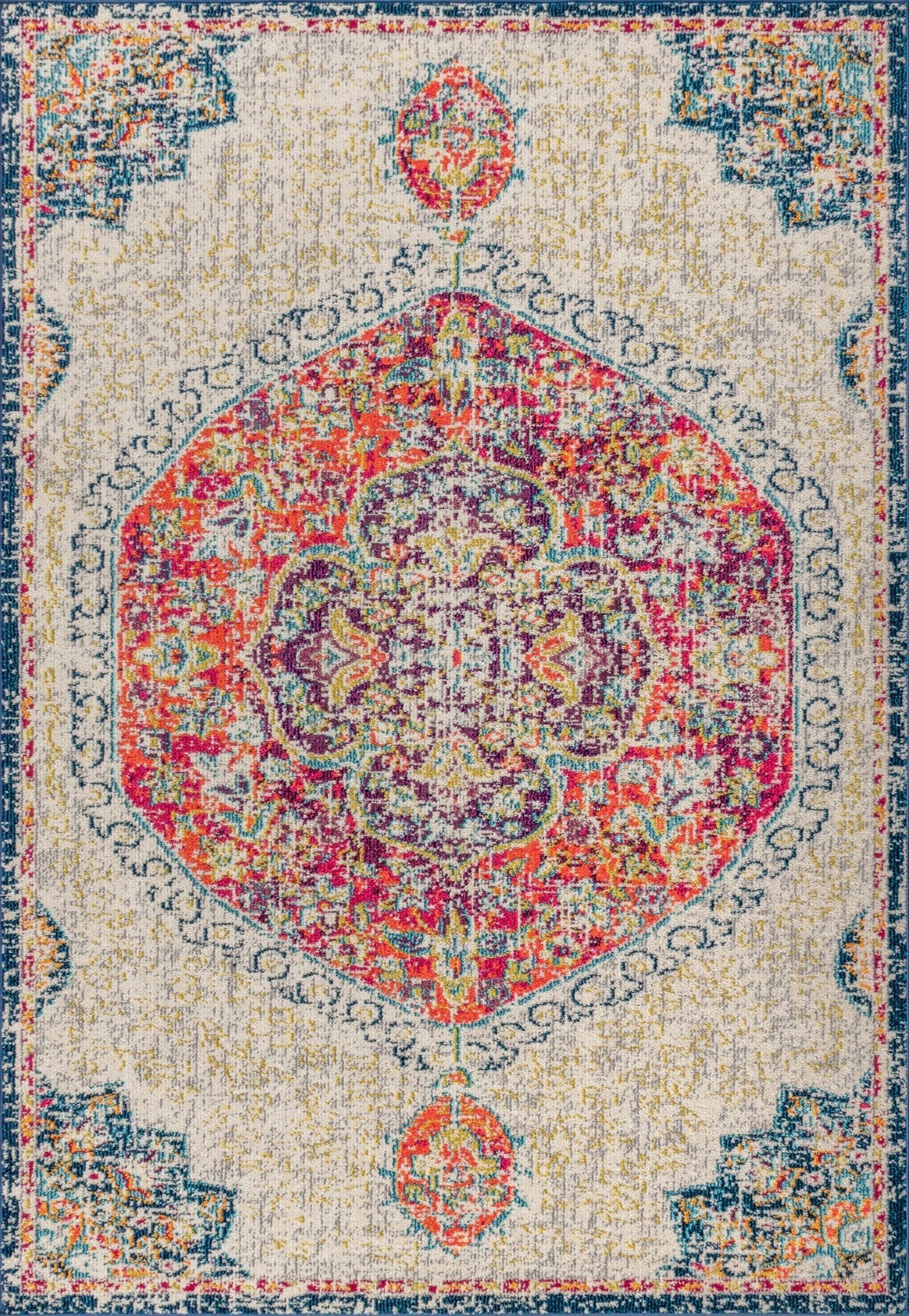Area Rug with Distressed Boho Medallion Design