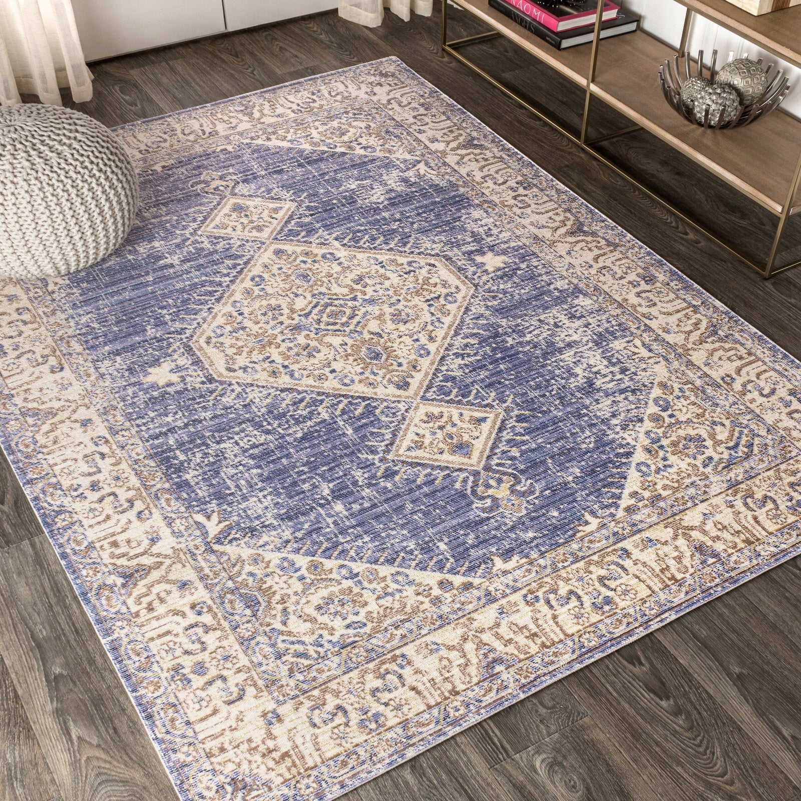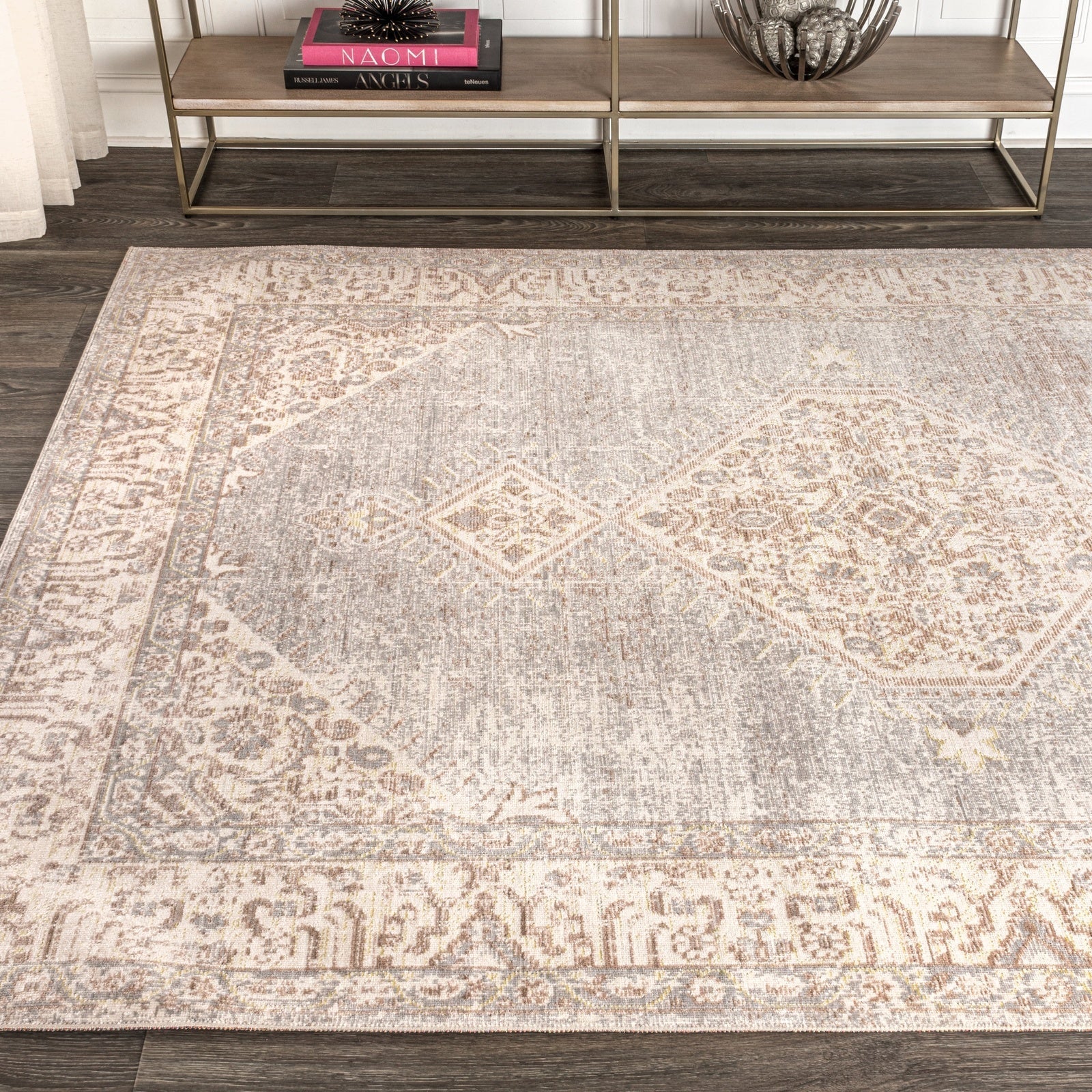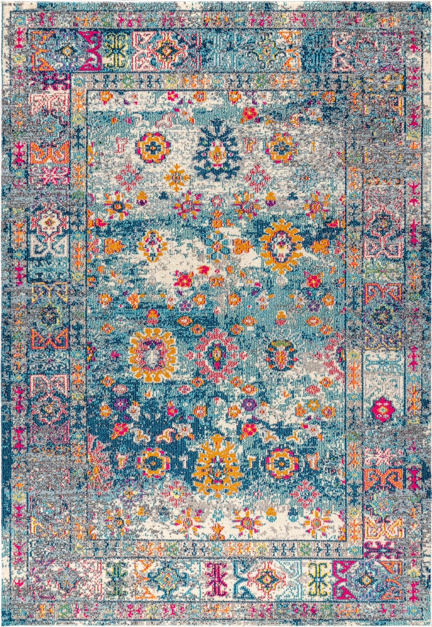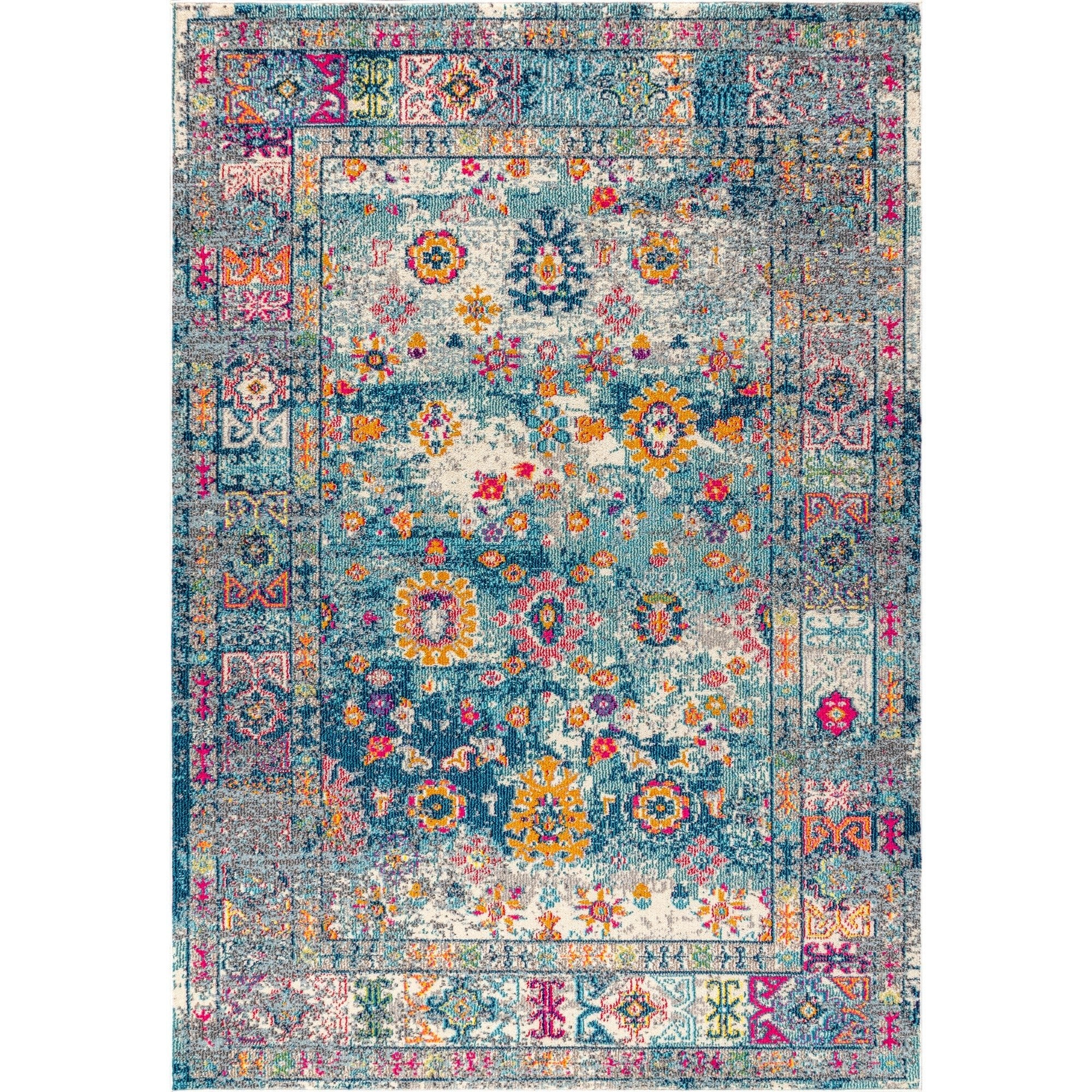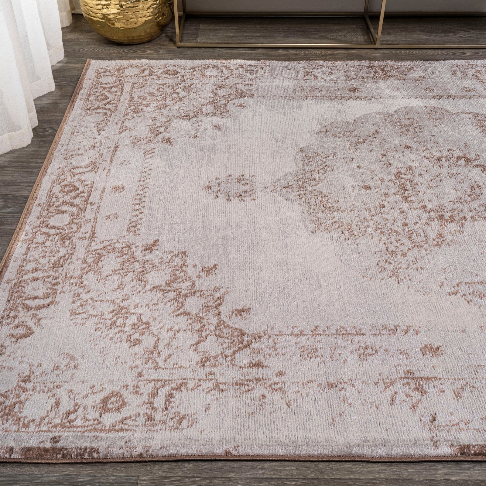 Area Rug with Distressed Boho Medallion Design