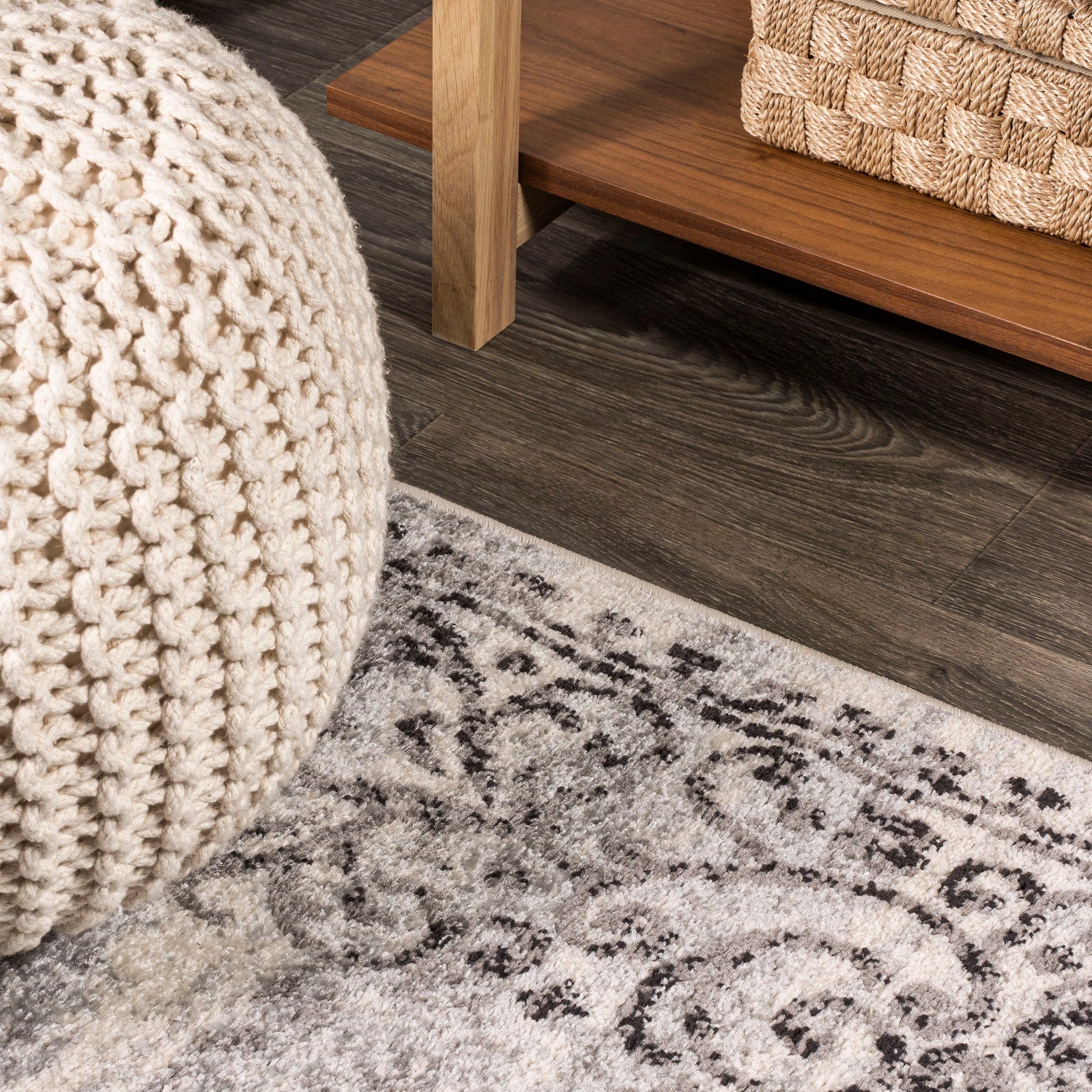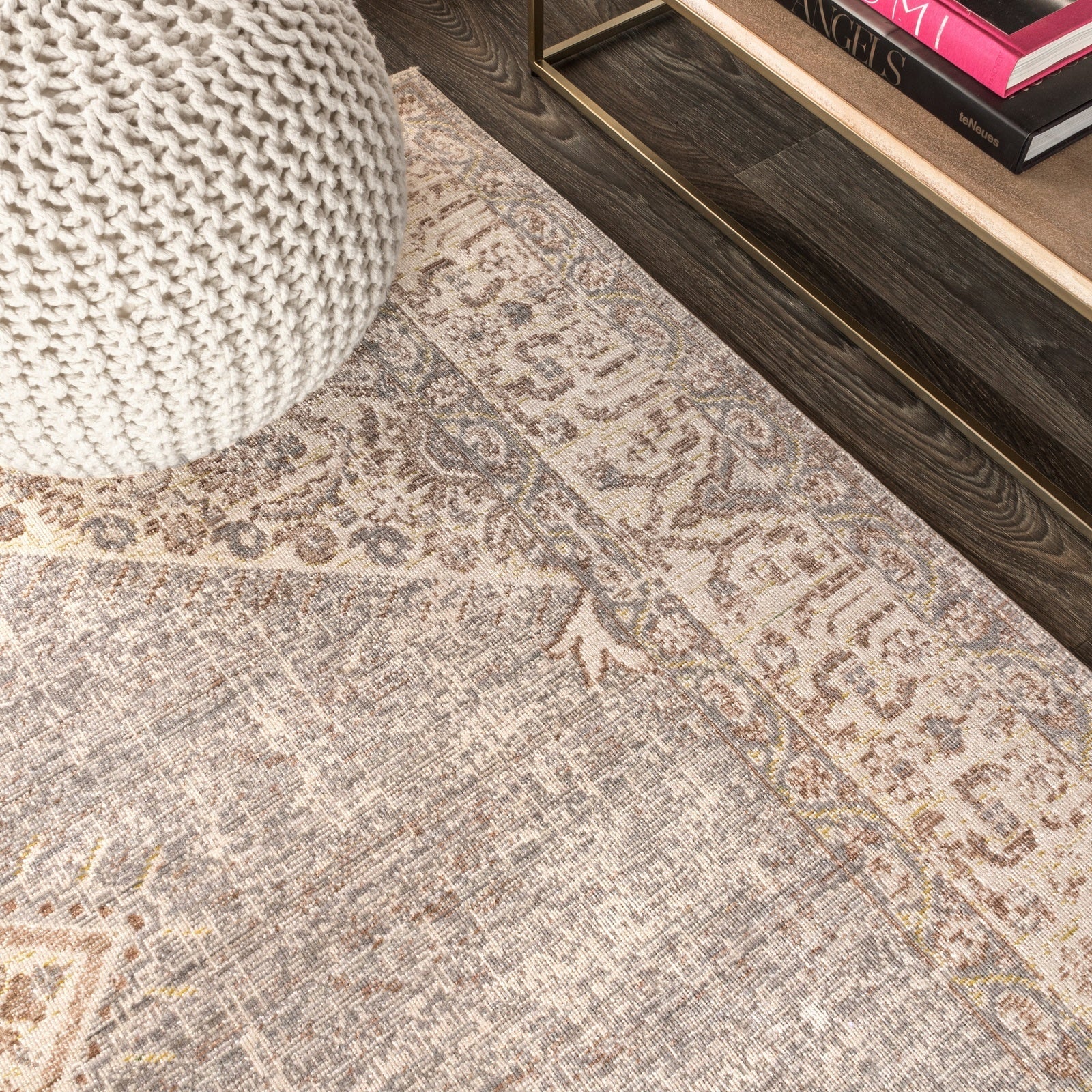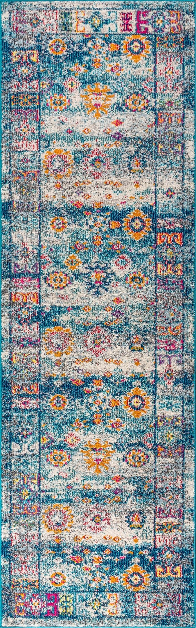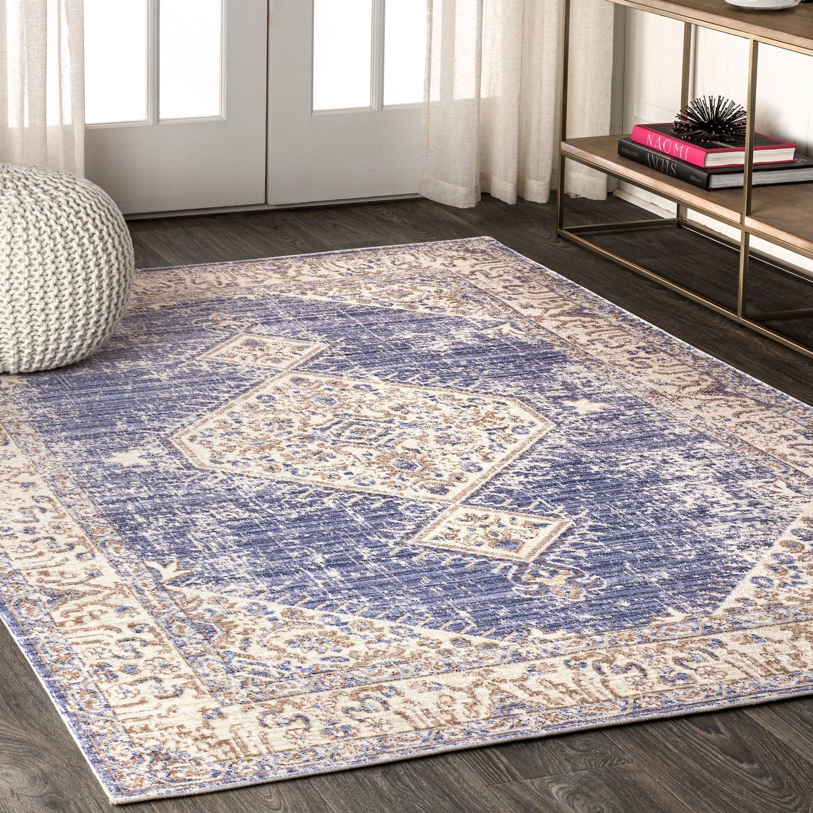 Area Rug with Distressed Boho Medallion Design