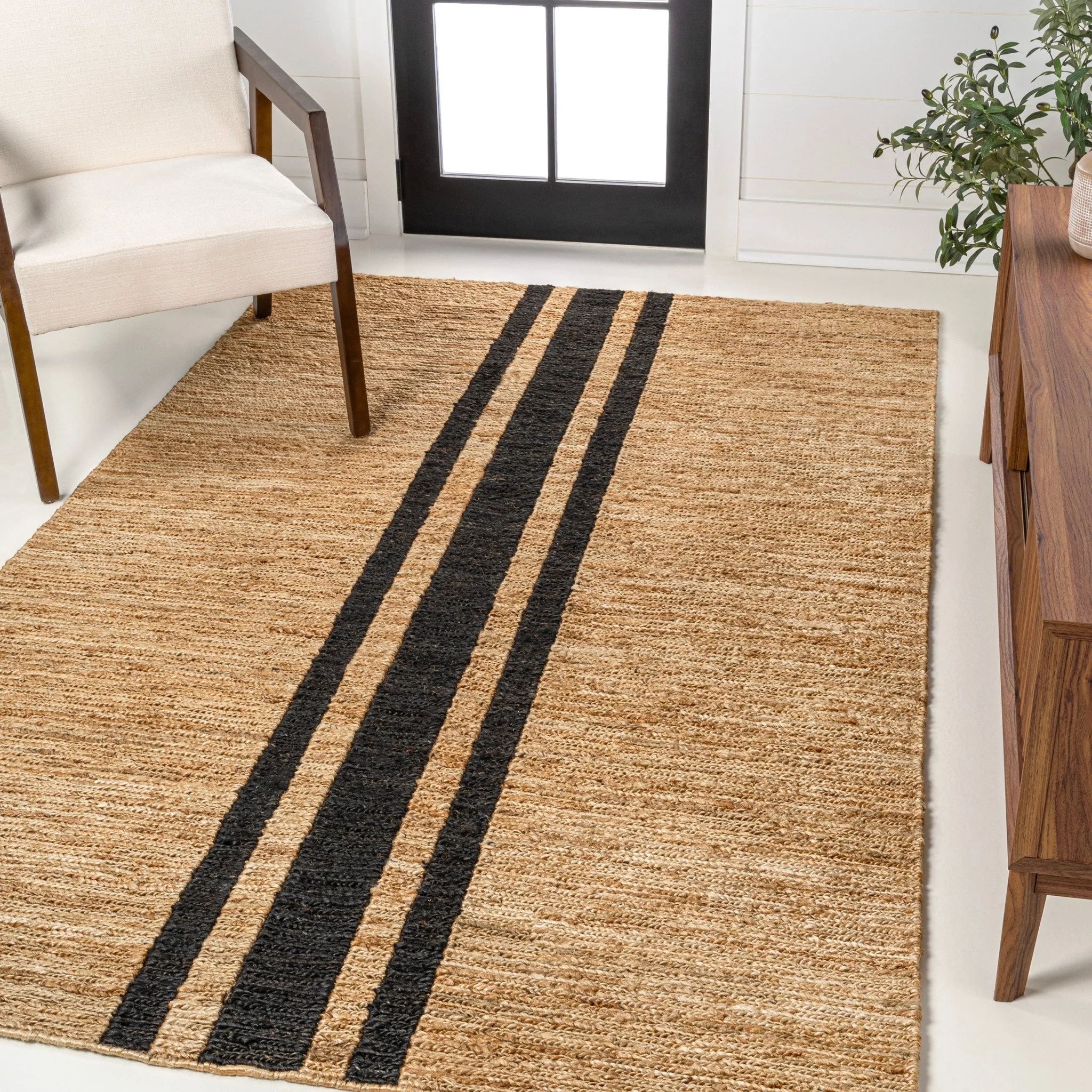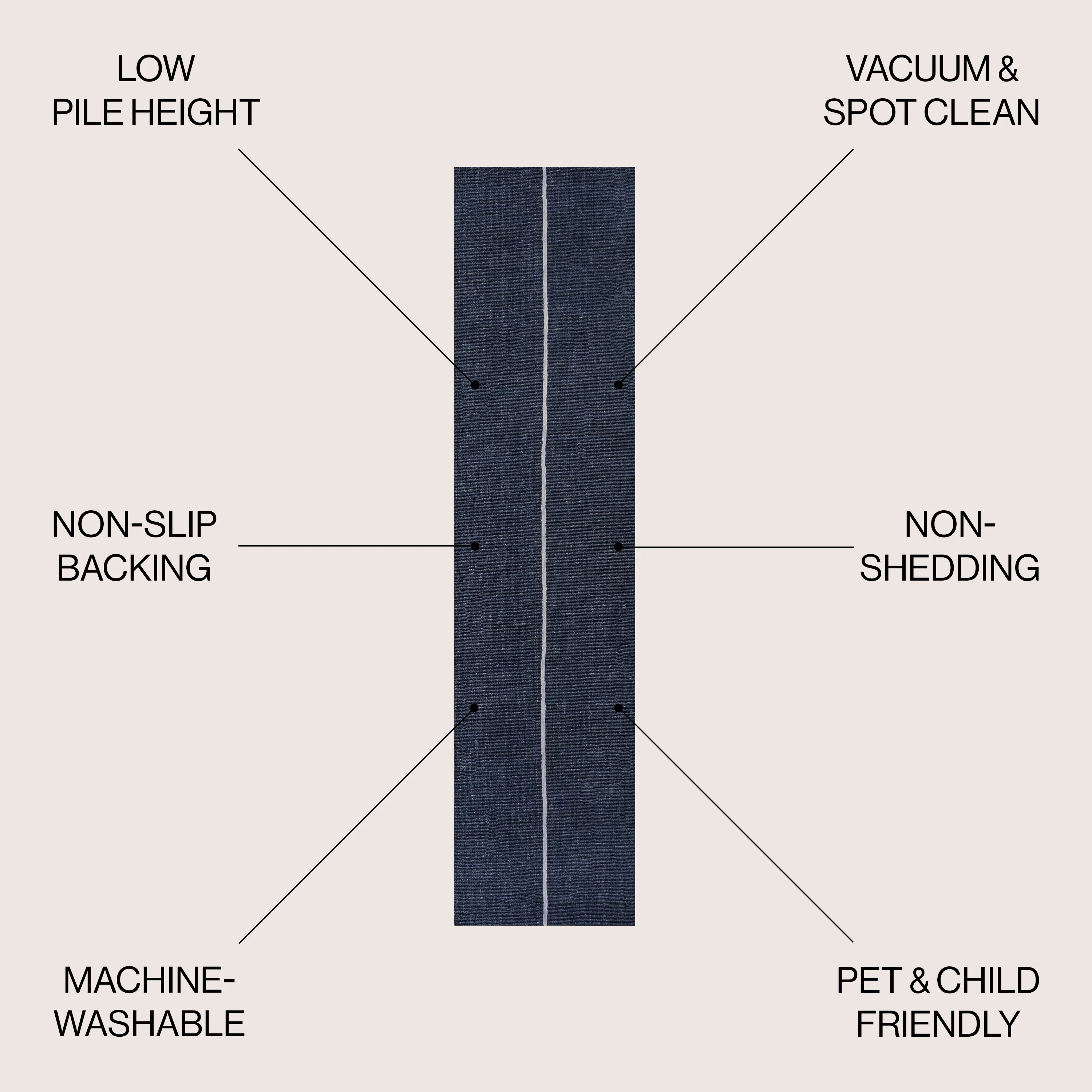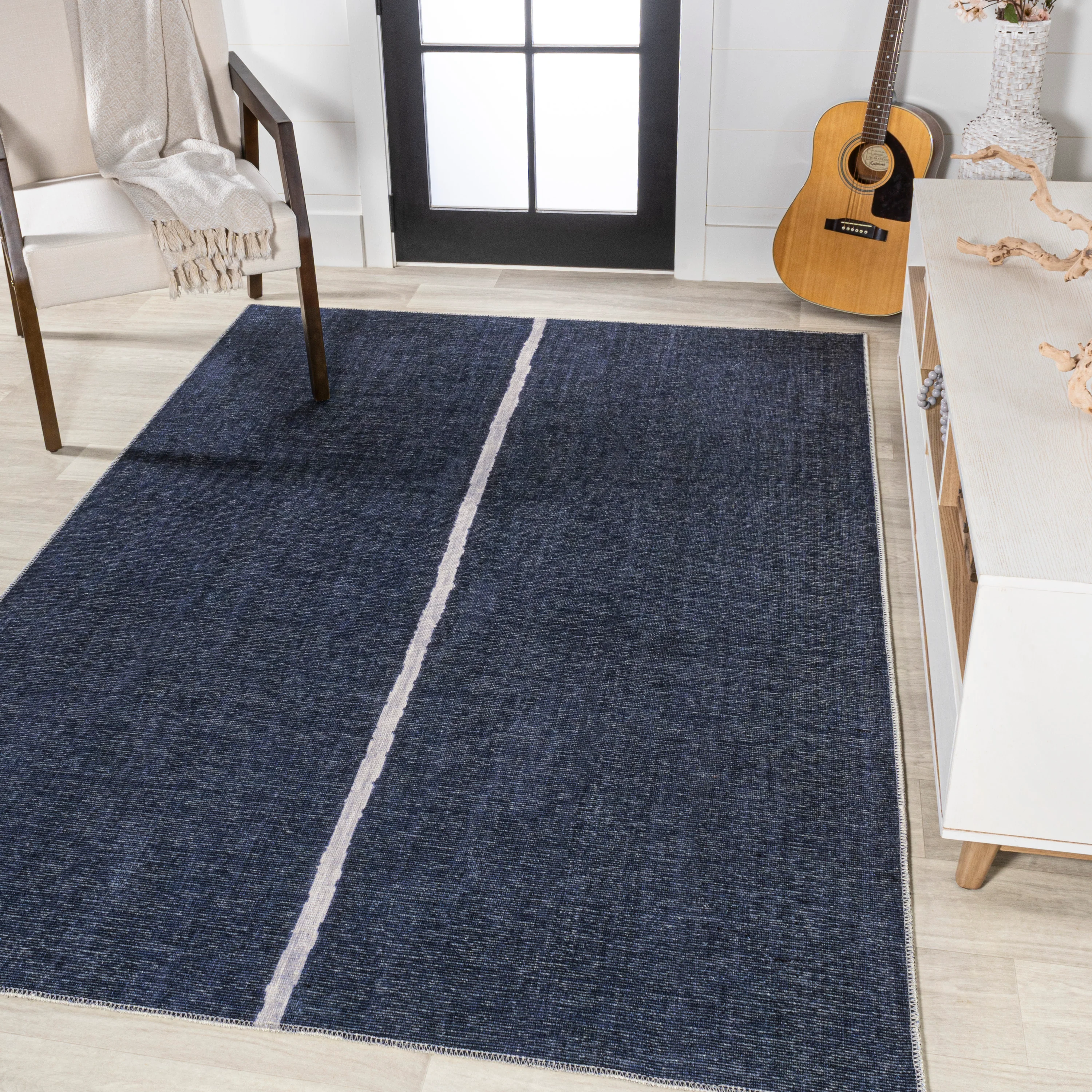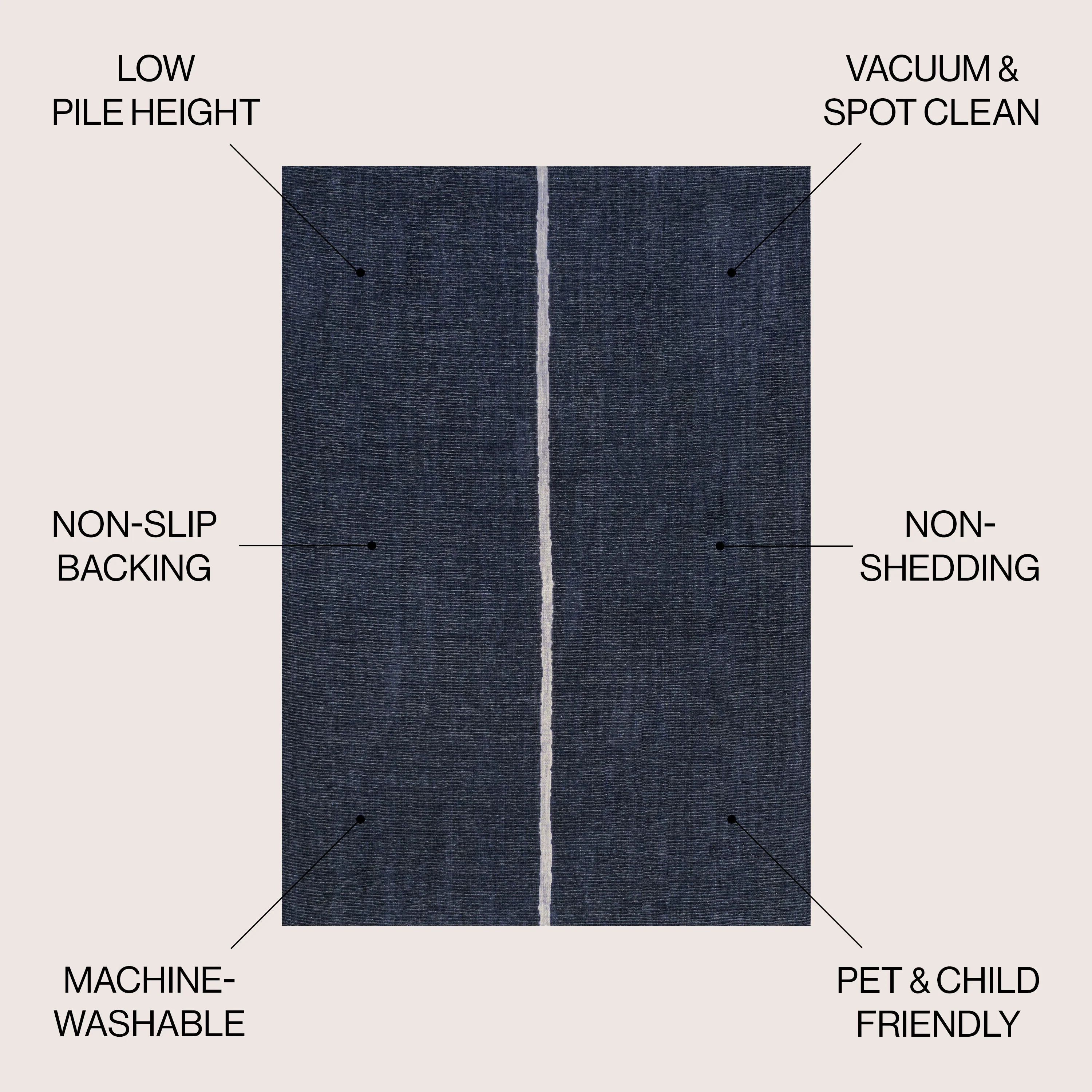 Linja Solid Centre Stripe Machine-Washable Area Rug