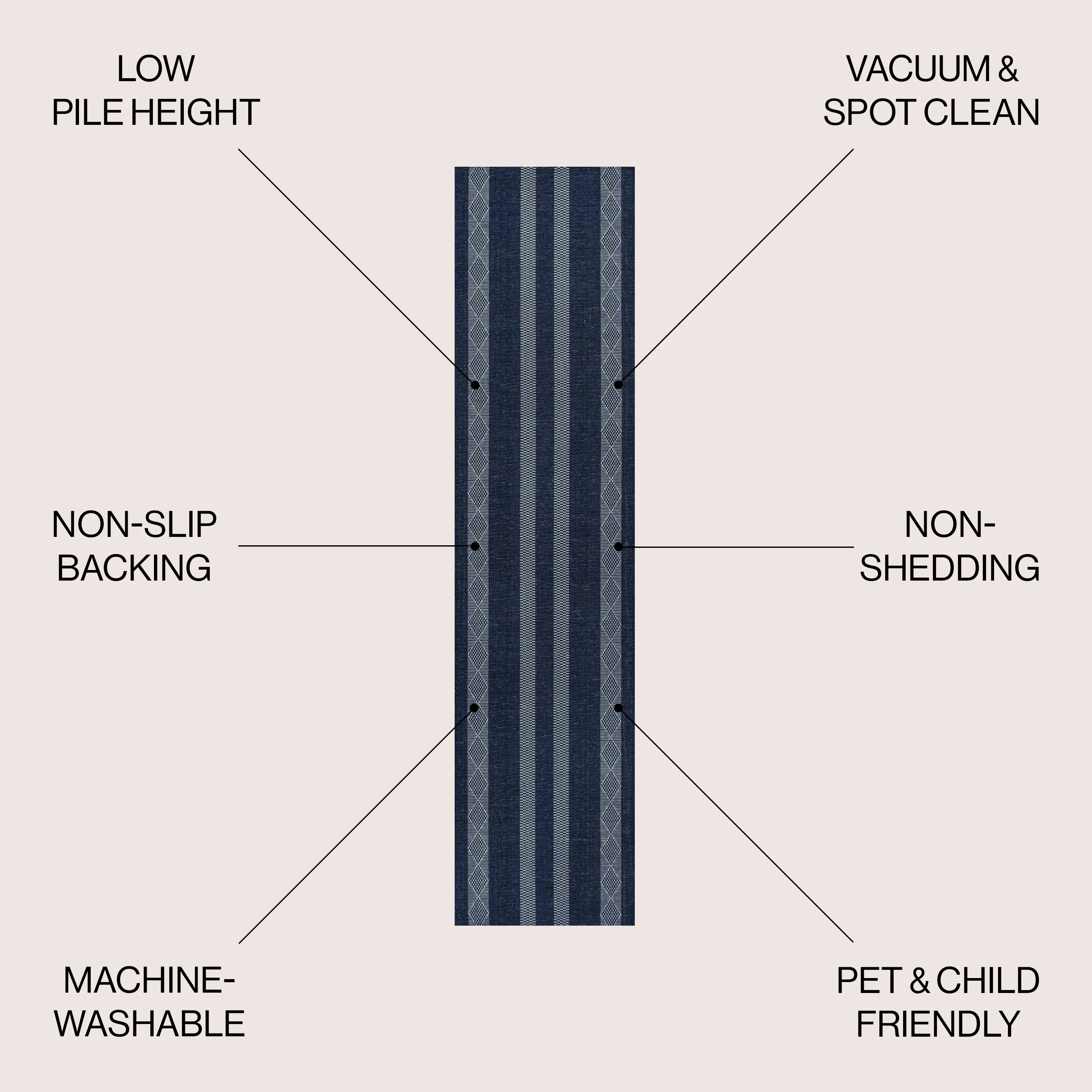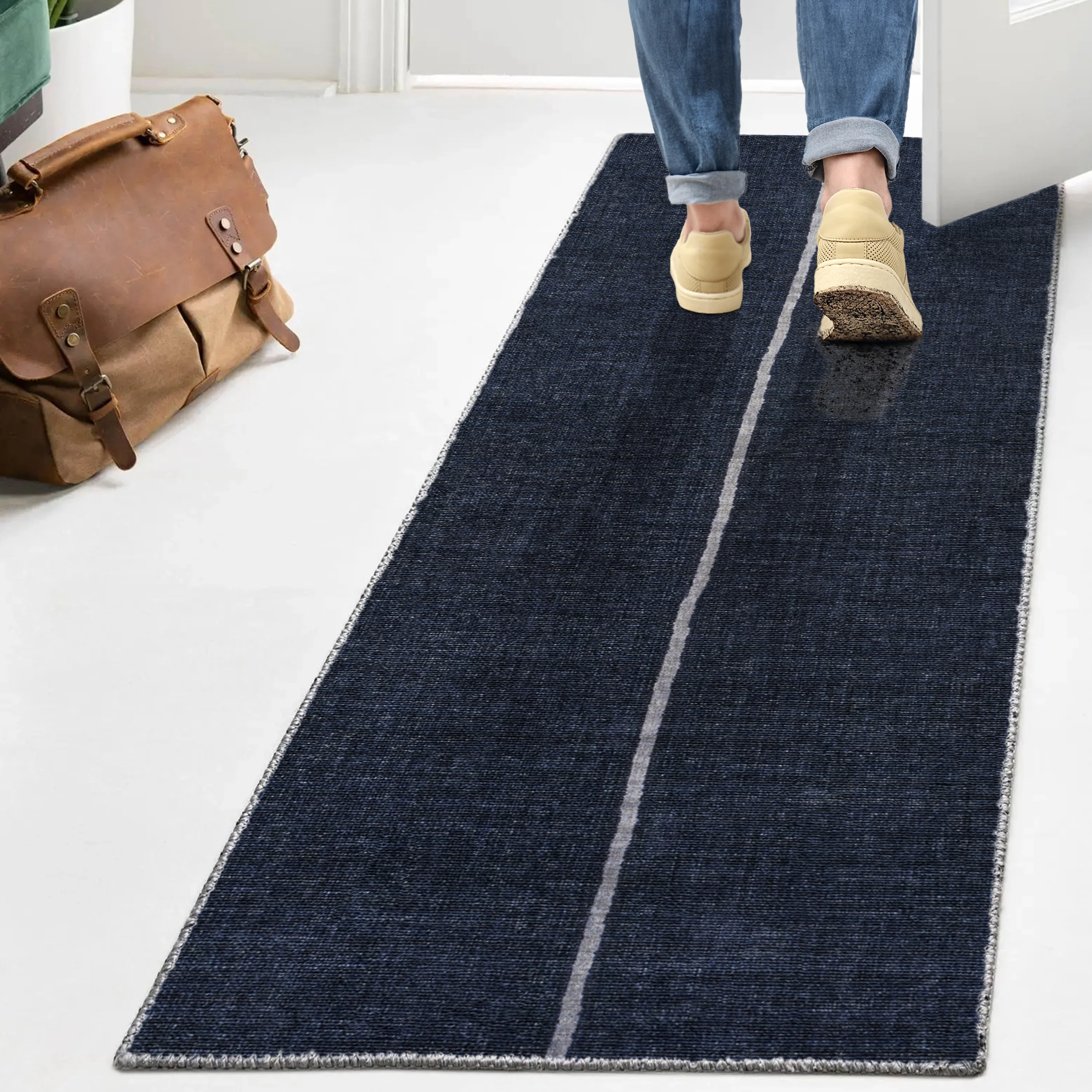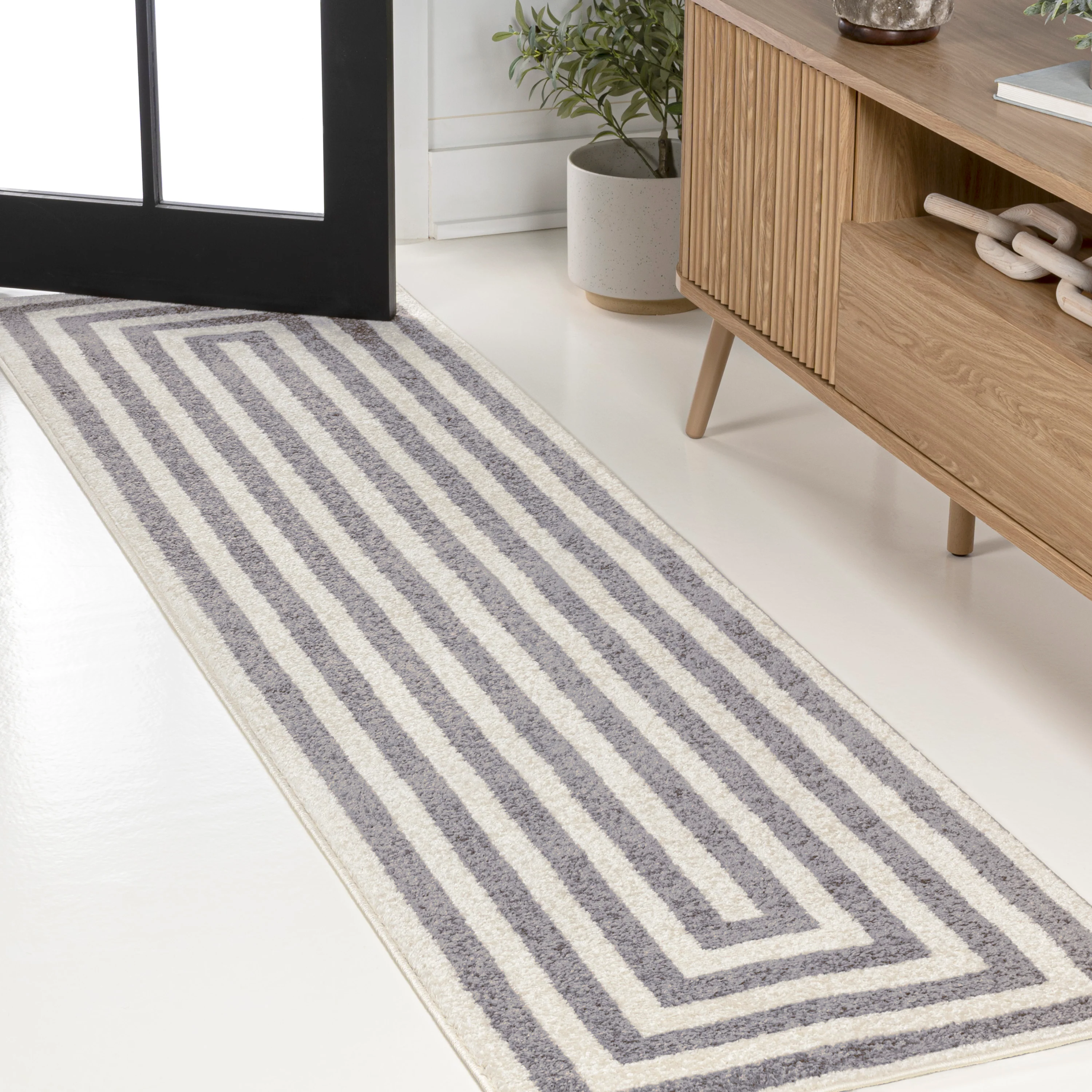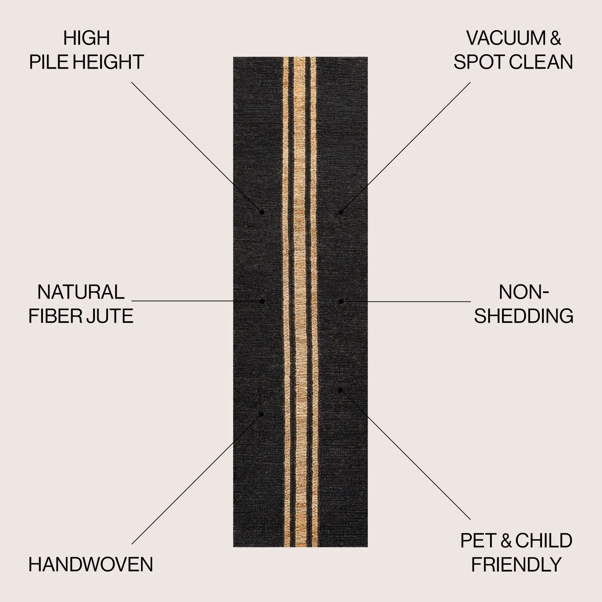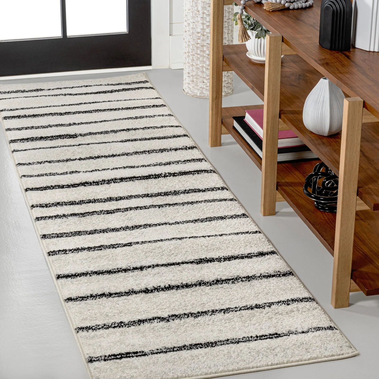 Linja Solid Centre Stripe Machine-Washable Area Rug