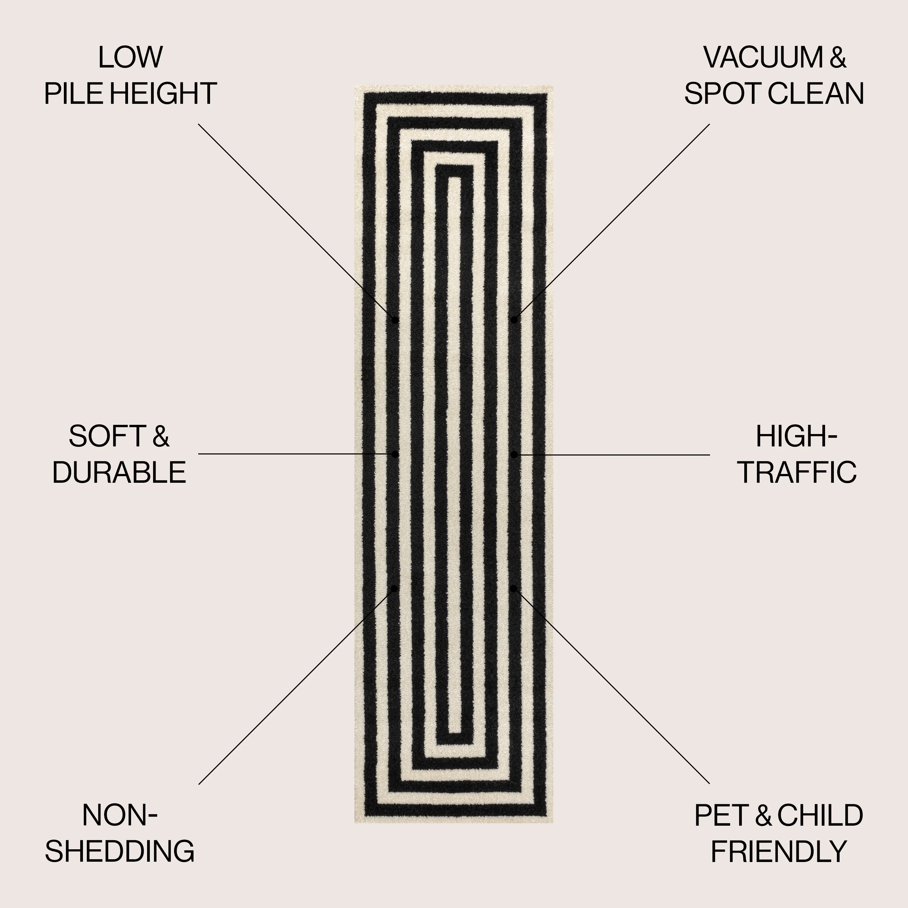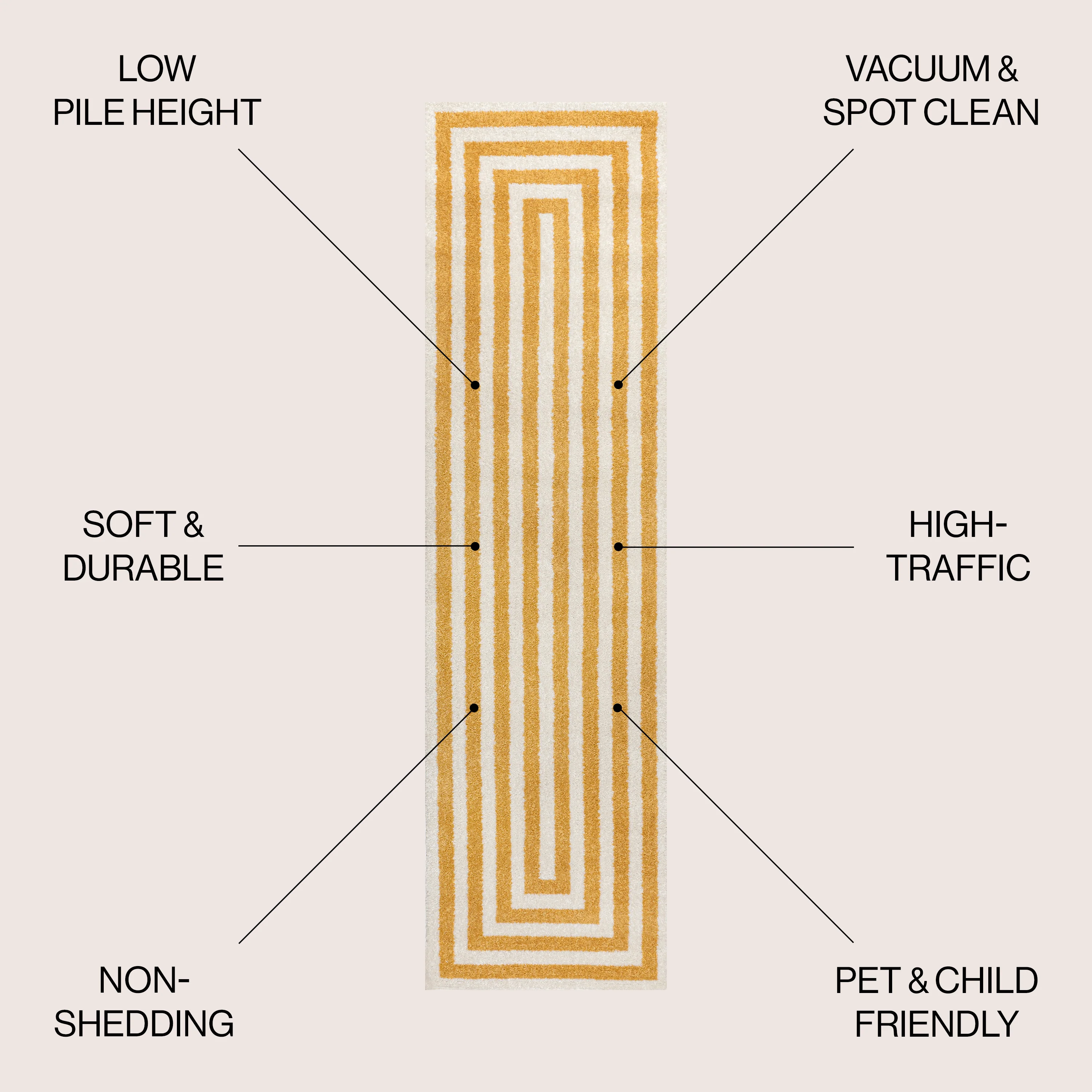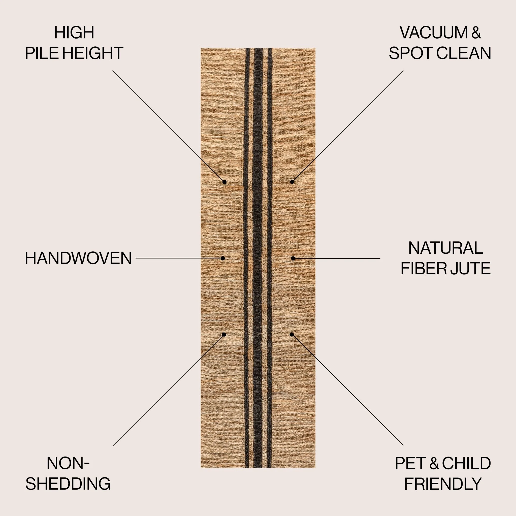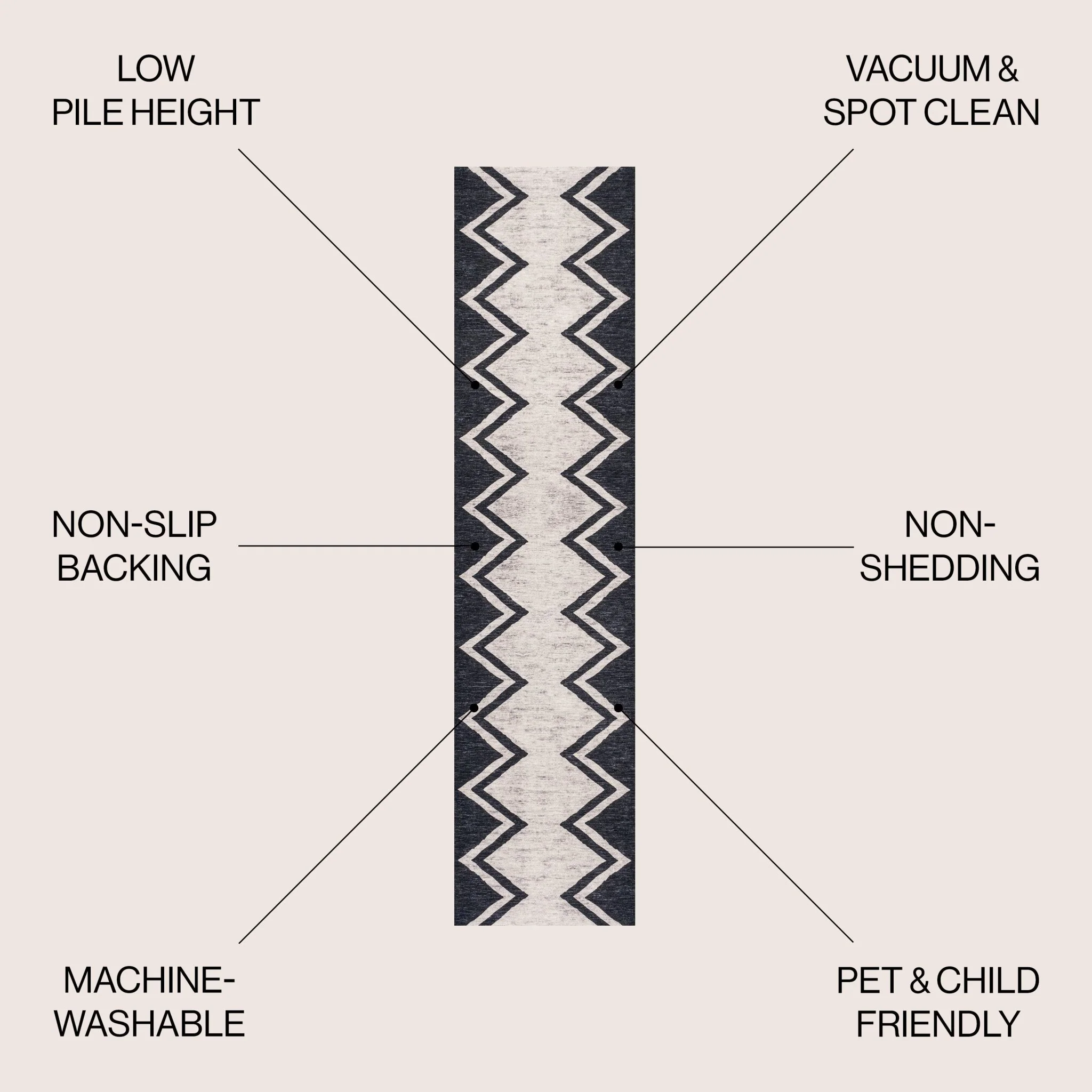 Linja Solid Centre Stripe Machine-Washable Area Rug